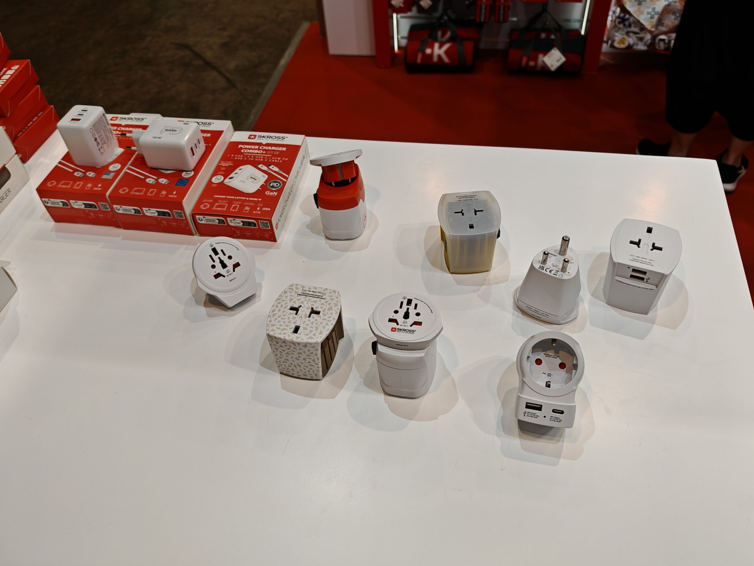 Je vous glisse une photo de leur stand pour que vous ayez un bon aperçu de l’offre que propose Skross. Le coeur de métier est celui des adaptateurs électriques pour les voyageurs européens qui vont partout dans le monde et évidemment inversement également.