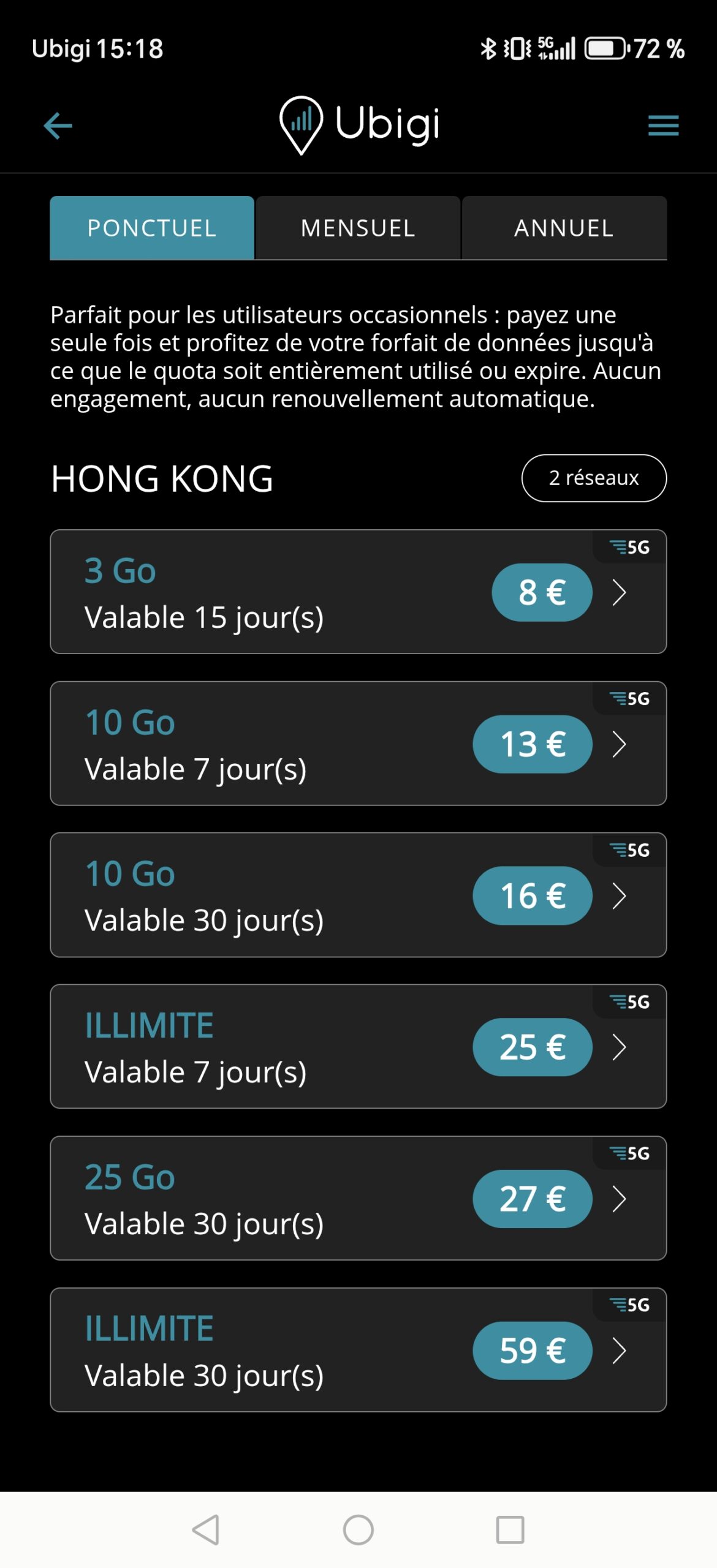Je pense qu’on est tous pareils et que la priorité quand on est à l’étranger est de conserver notre connexion avec l’extérieur. A ce titre, avoir accès à internet est primordial. C’est là qu’Ubigi, une marque française, intervient et m’a fait la sympathie de m’équiper durant les quelques jours de voyage que j’avais à Hong Kong et Londres. C’est un service d’e-sim qui s’active automatiquement à l’arrivée dans la zone concernée par l’offre achetée. Grâce aux infrastructures locales, le réseau auquel j’avais accès était vraiment qualitatif. Attention, assurez-vous que votre téléphone soit compatible avant votre départ à l’étranger.