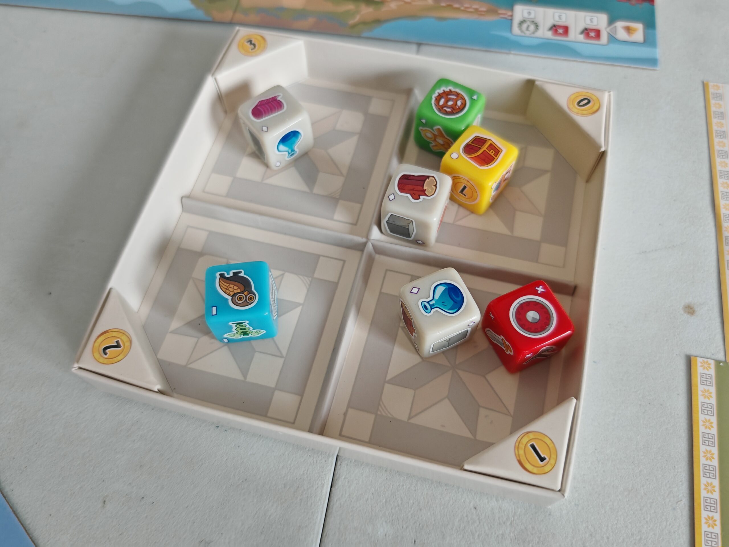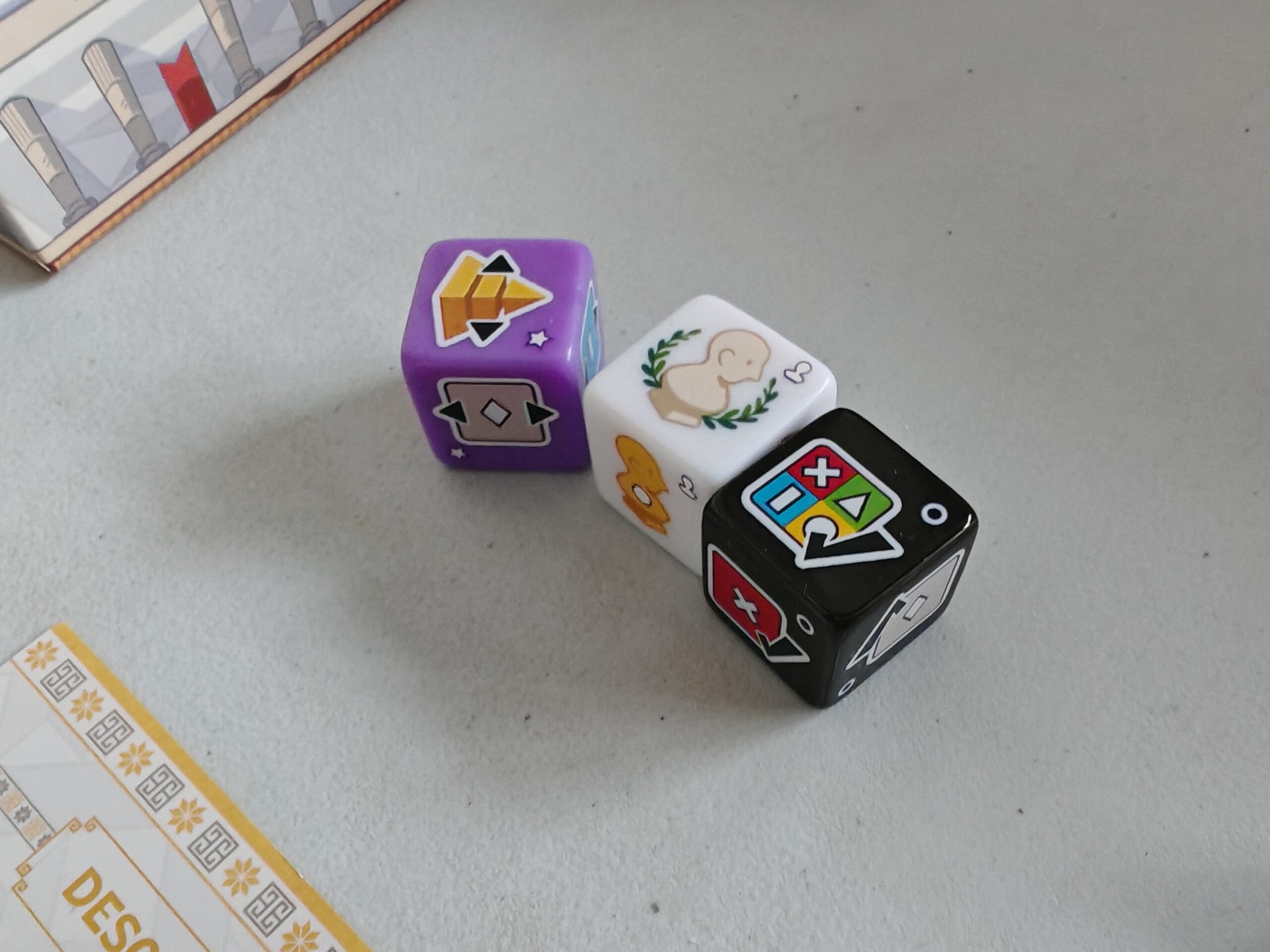 Les règles sont plutôt simples avec un choix parmi trois à chaque tour : acheter un dé pour cocher une des cases de votre plateau (en respectant les règles de construction), réaliser une étape de merveille ou gagner 3 pièces.