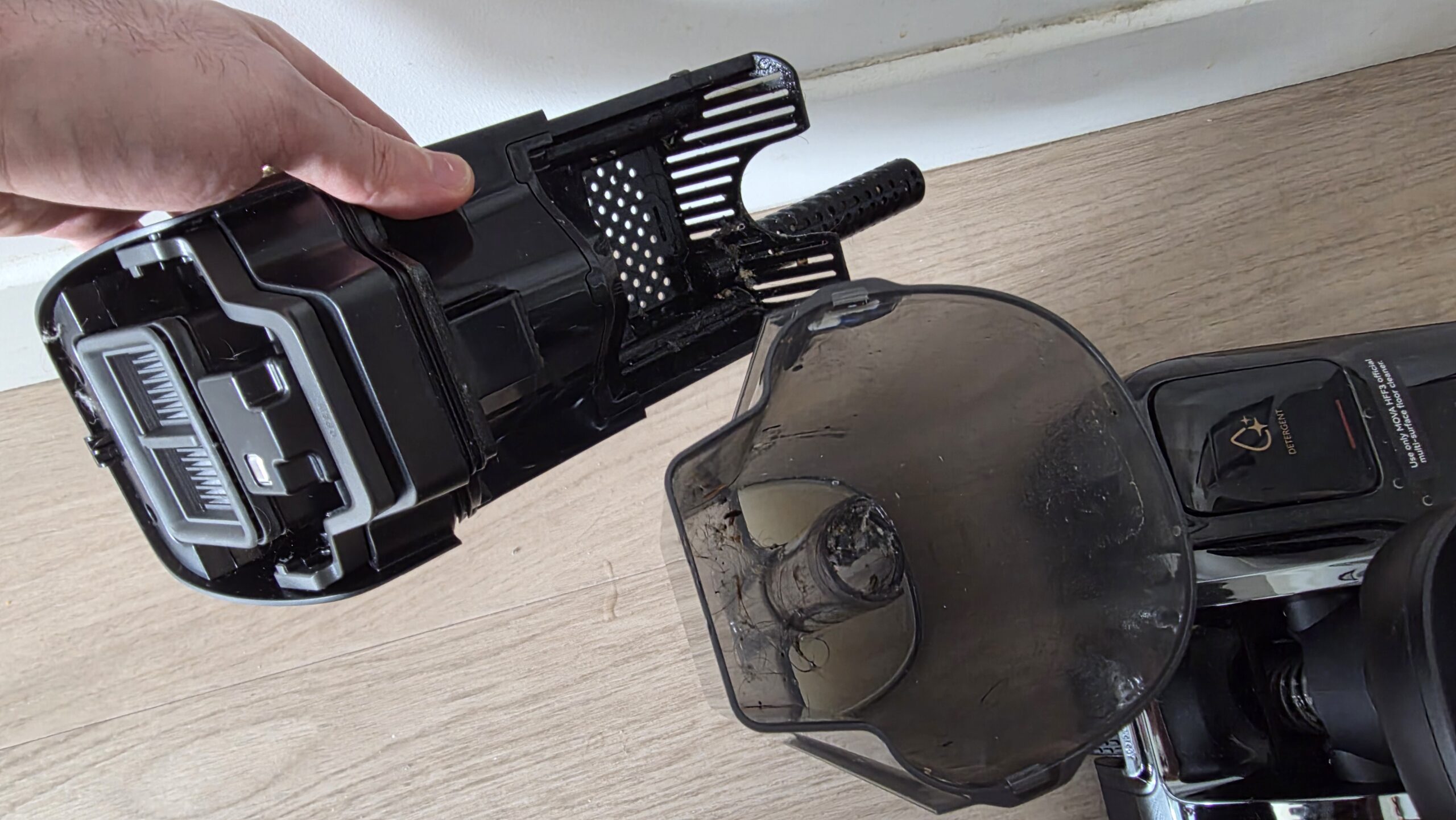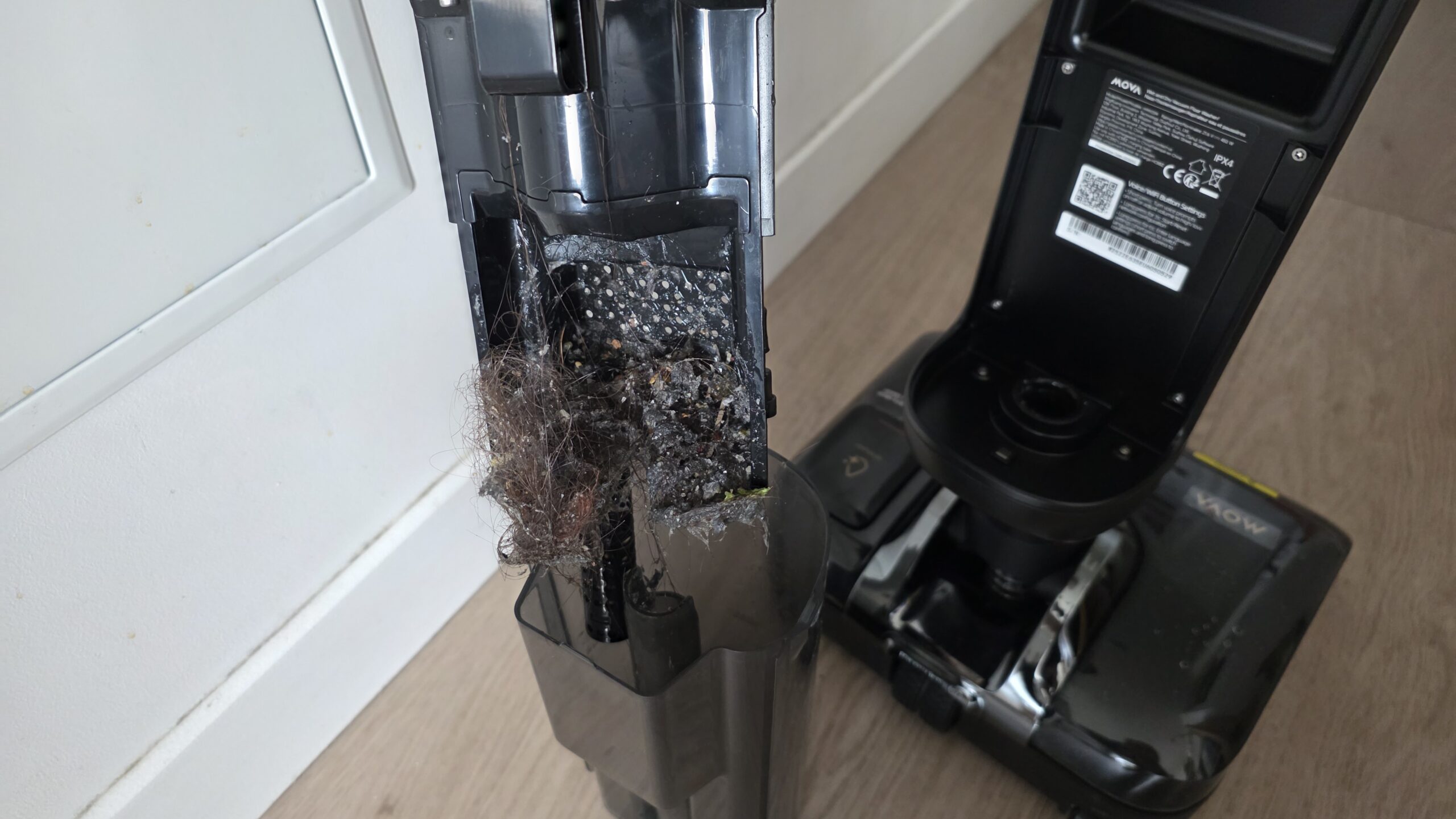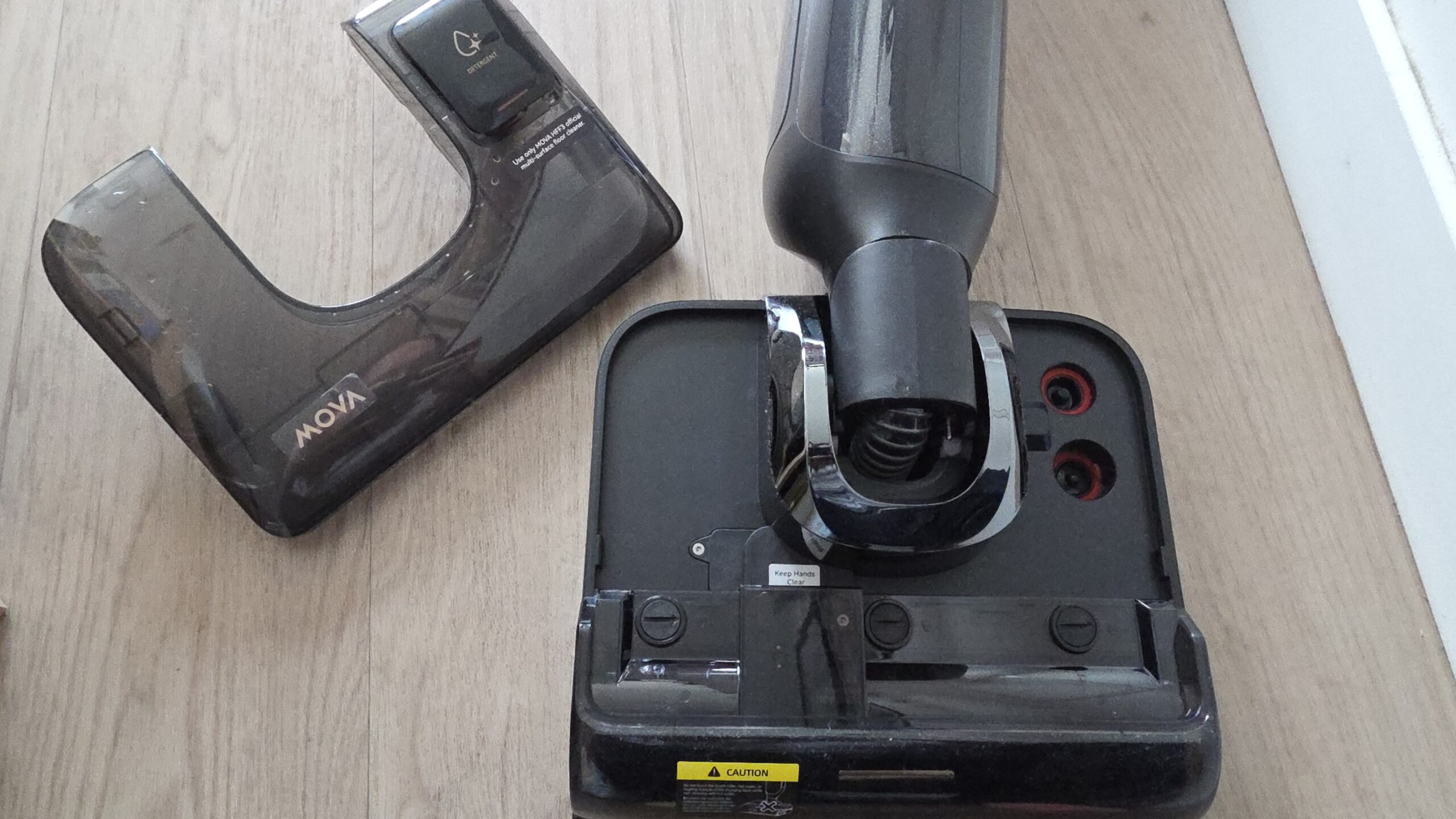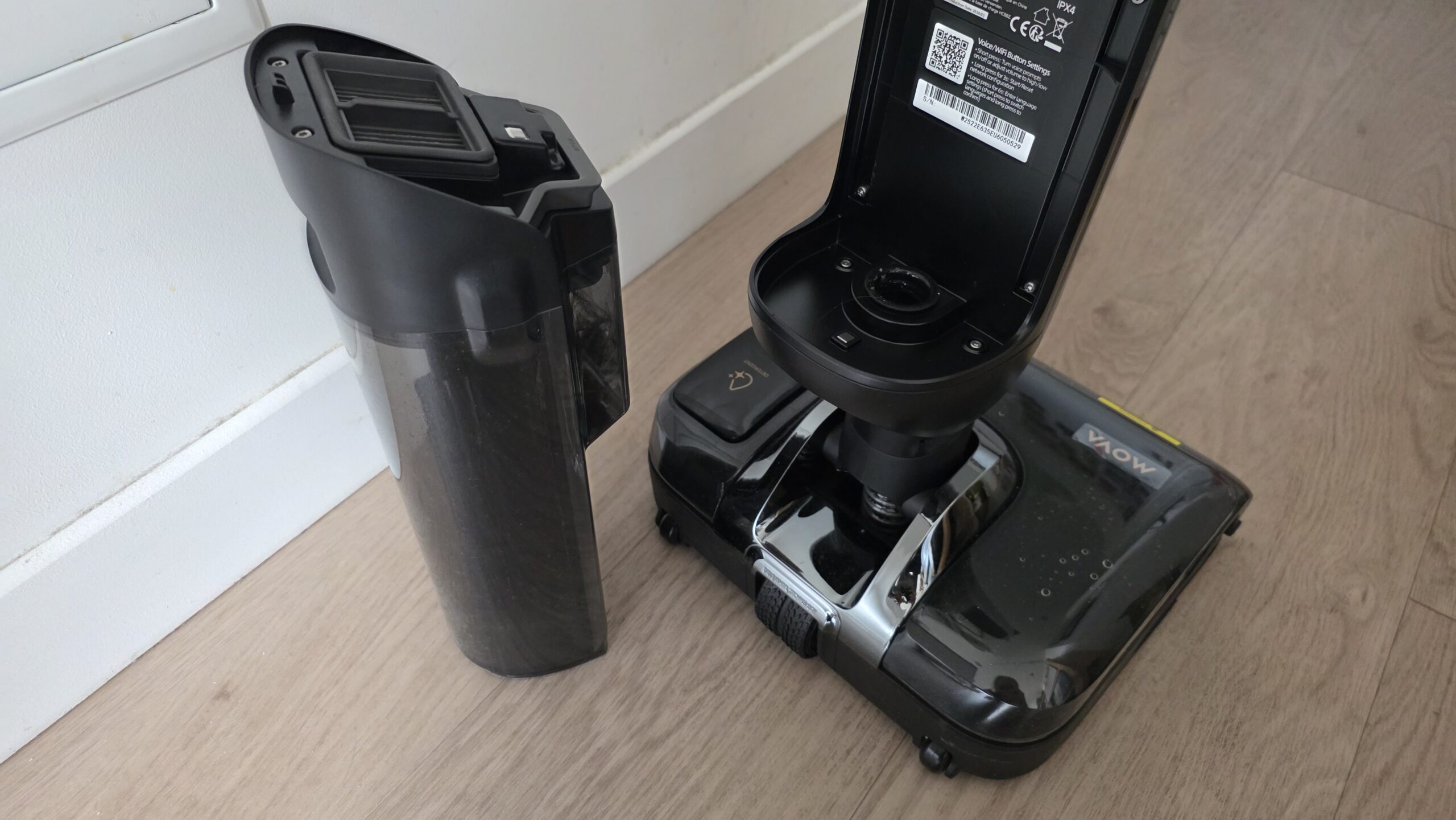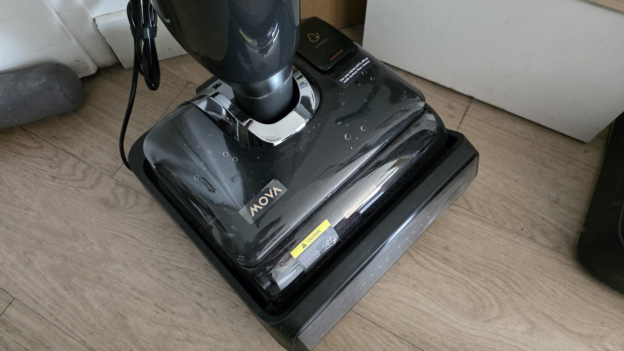 A l’inverse du MOVA X4 Pro, je regrette que la station de charge ne soit pas à ras du sol pour amener sans effort l’aspirateur à la station. Il est ainsi nécessaire de le soulever et celui-ci est plutôt lourd (5.8kg à vide), surtout quand il est rempli d’eau.