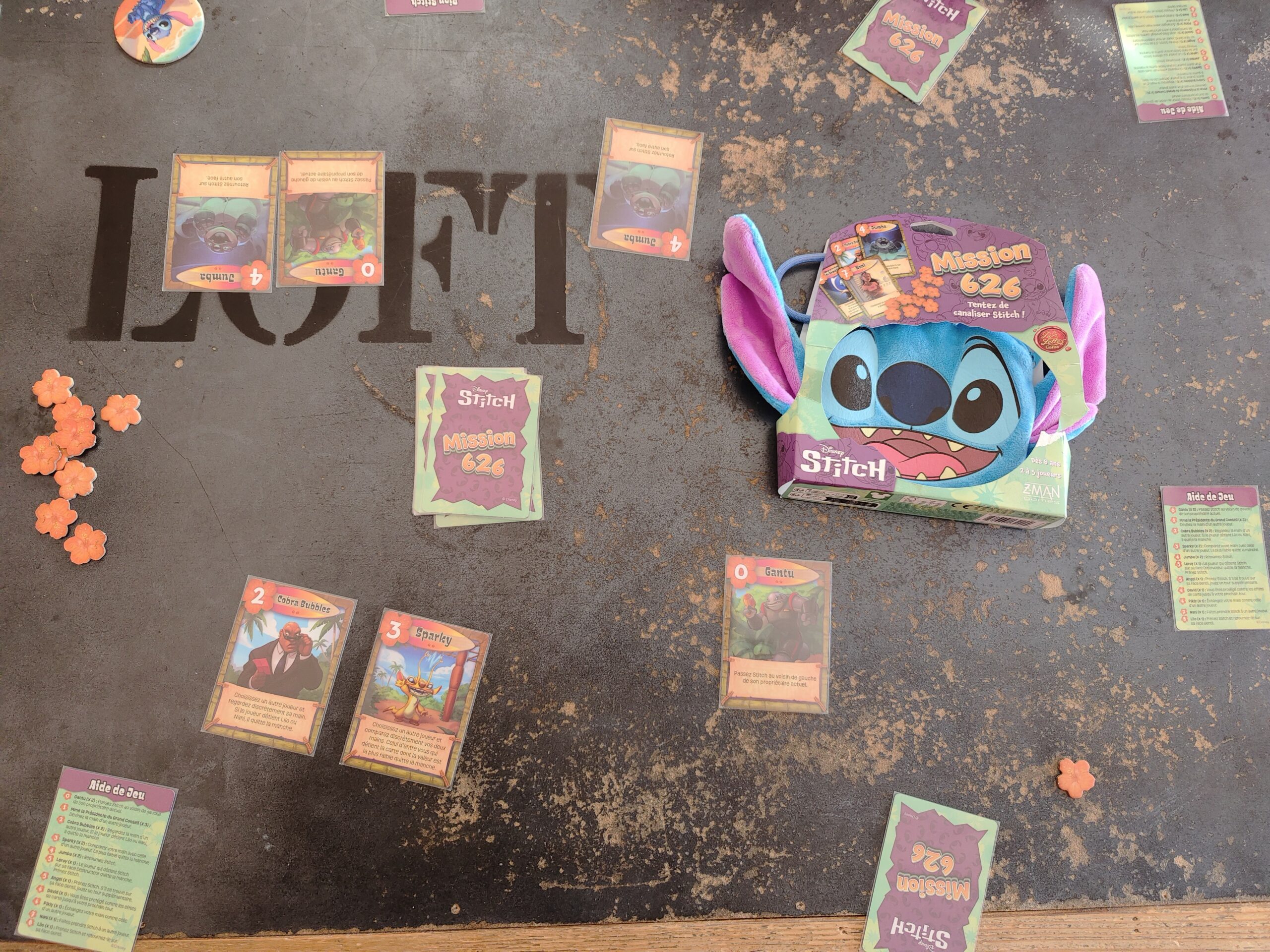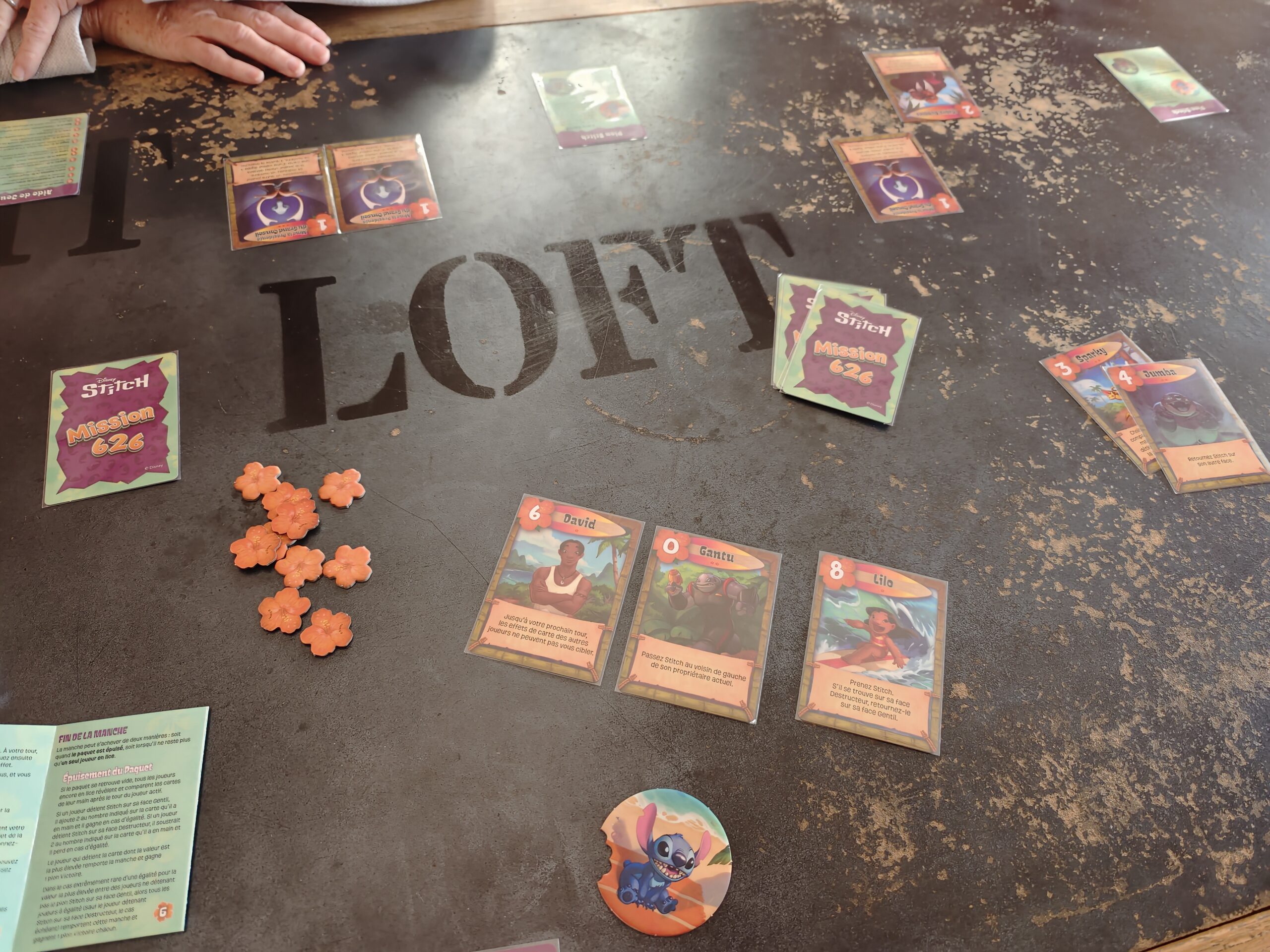 Vous tenterez également de faire circuler le pion Stitch sur sa face destructeur vers vos adversaires ou face gentil chez vous. Cela permettre de faire +2/-2 selon sa face à la fin de la manche à la valeur de votre dernière carte en main.