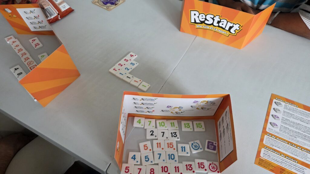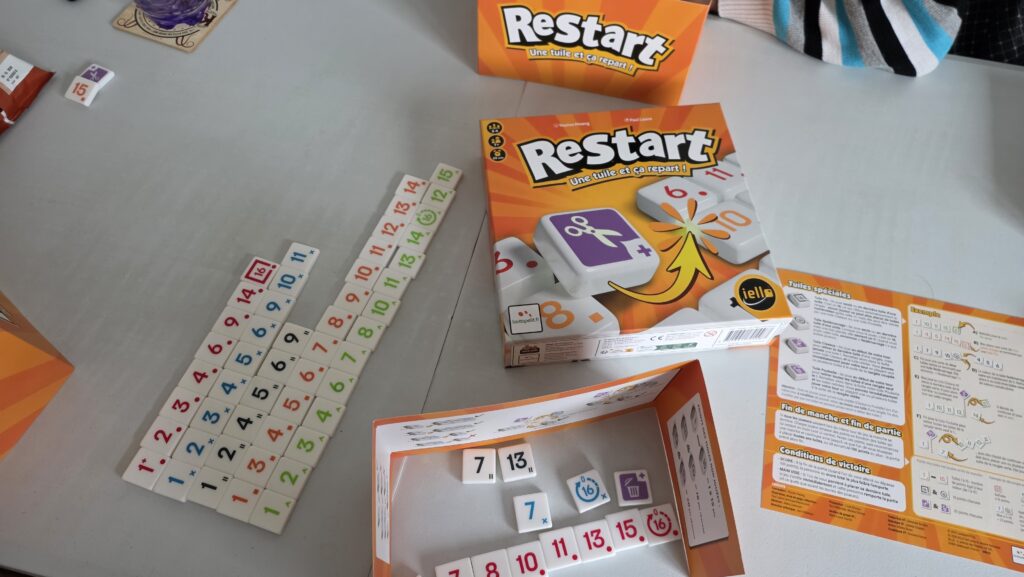 Petit jeu d’ambiance, Restart se joue rapidement et facilement. Attention cependant, il faudra quand même un petit temps de mise en place pour que chaque joueur récupère et range ses tuiles de départ.