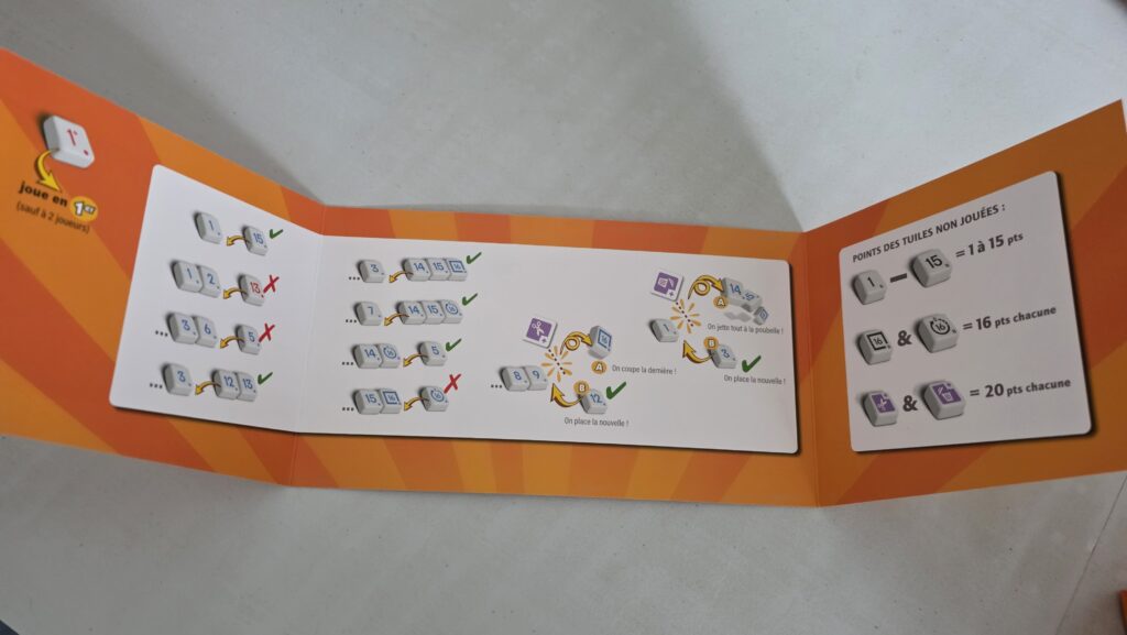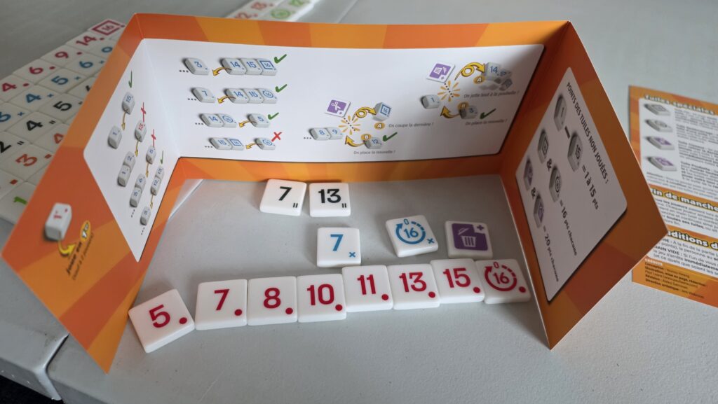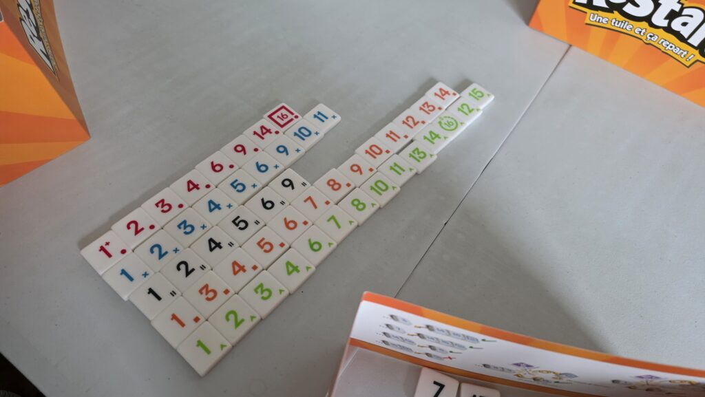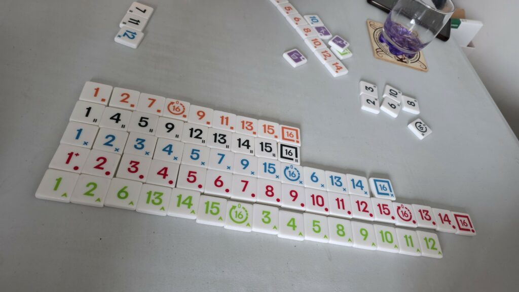Les joueurs vont tenter de vider leur stock de tuiles. Cela dépendra de pas mal de chance. En fonction des nombres piochés, cela sera plus ou moins simple et rapide. Si vous avez de nombreuses suites, vous pourrez les poser plus facilement. Si vous avez beaucoup de trous dans vos suites, alors ça sera plus long.