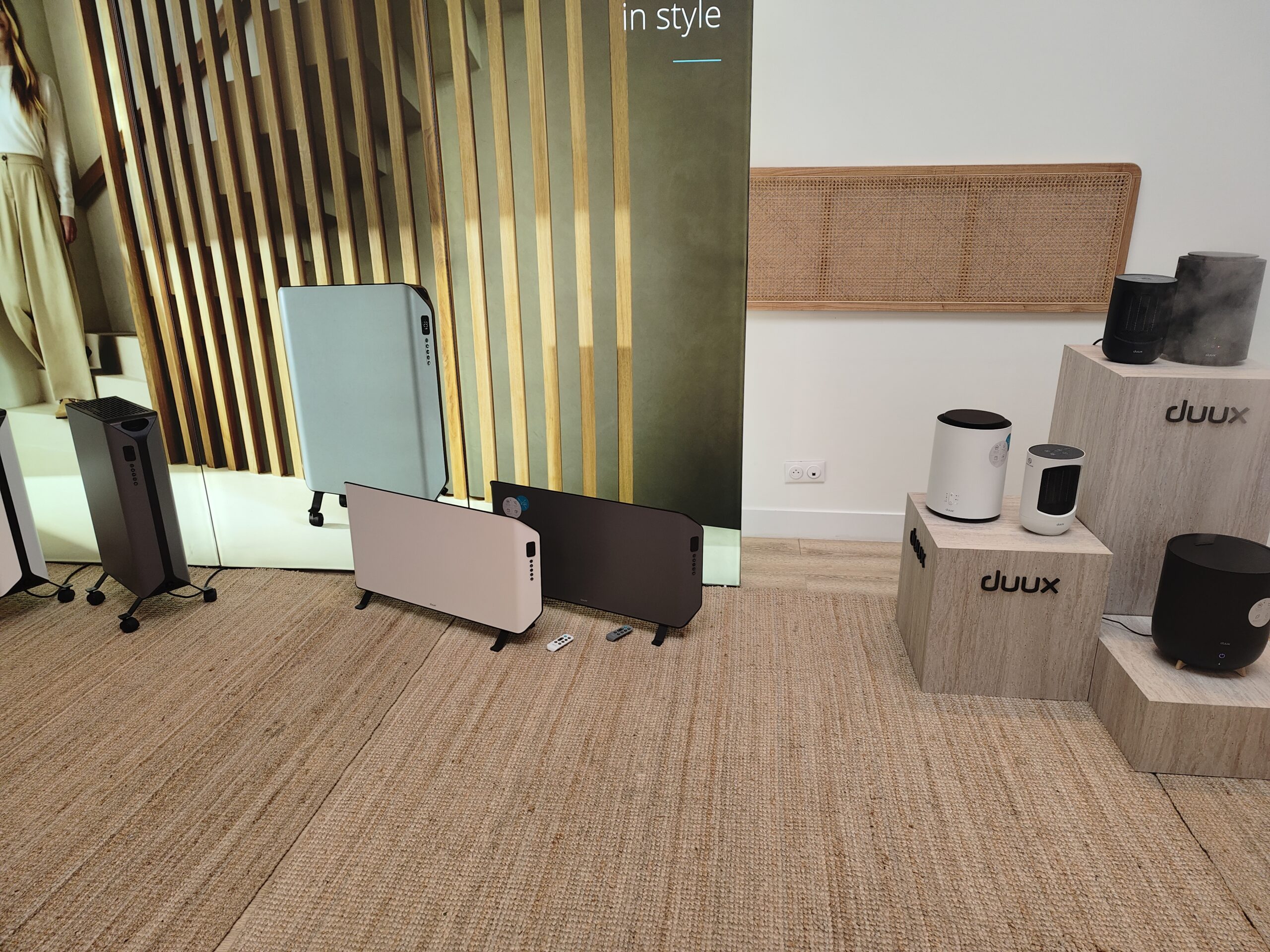 Il y a quelques mois Duux m’a convié dans son showroom à la découverte de ses produits textiles chauffants. Alors que nous sommes désormais en pleine période de froid voire grand froid certains jours, il est temps de mettre à l’essai certains de ces produits. Ce n’est pas la première fois que je parle de Duux. J’ai testé de nombreux de leurs produits par le passé que ce soit adapté à l’été avec des ventilateurs ou l’hiver avec des chauffages comme visibles dans l’image ci-dessous. Mais cette fois-ci, on est sur une gamme inédite pour la marque néerlandaise.