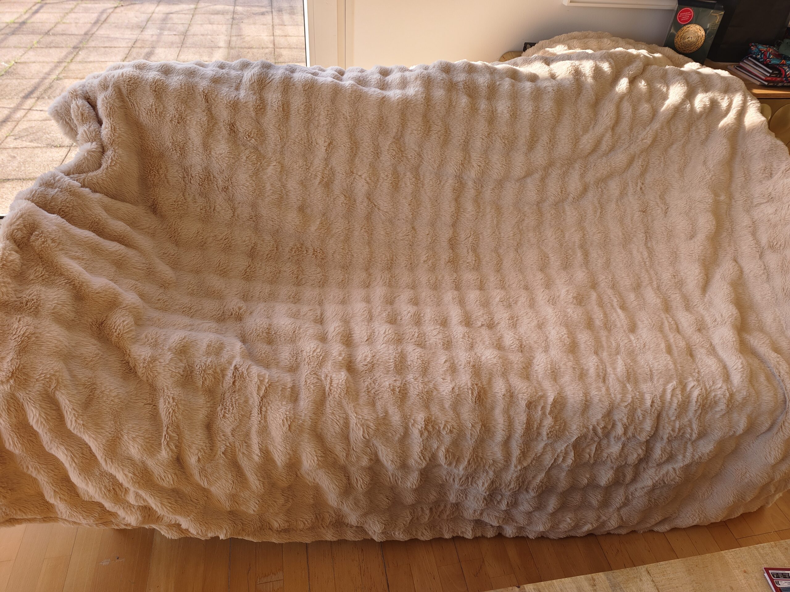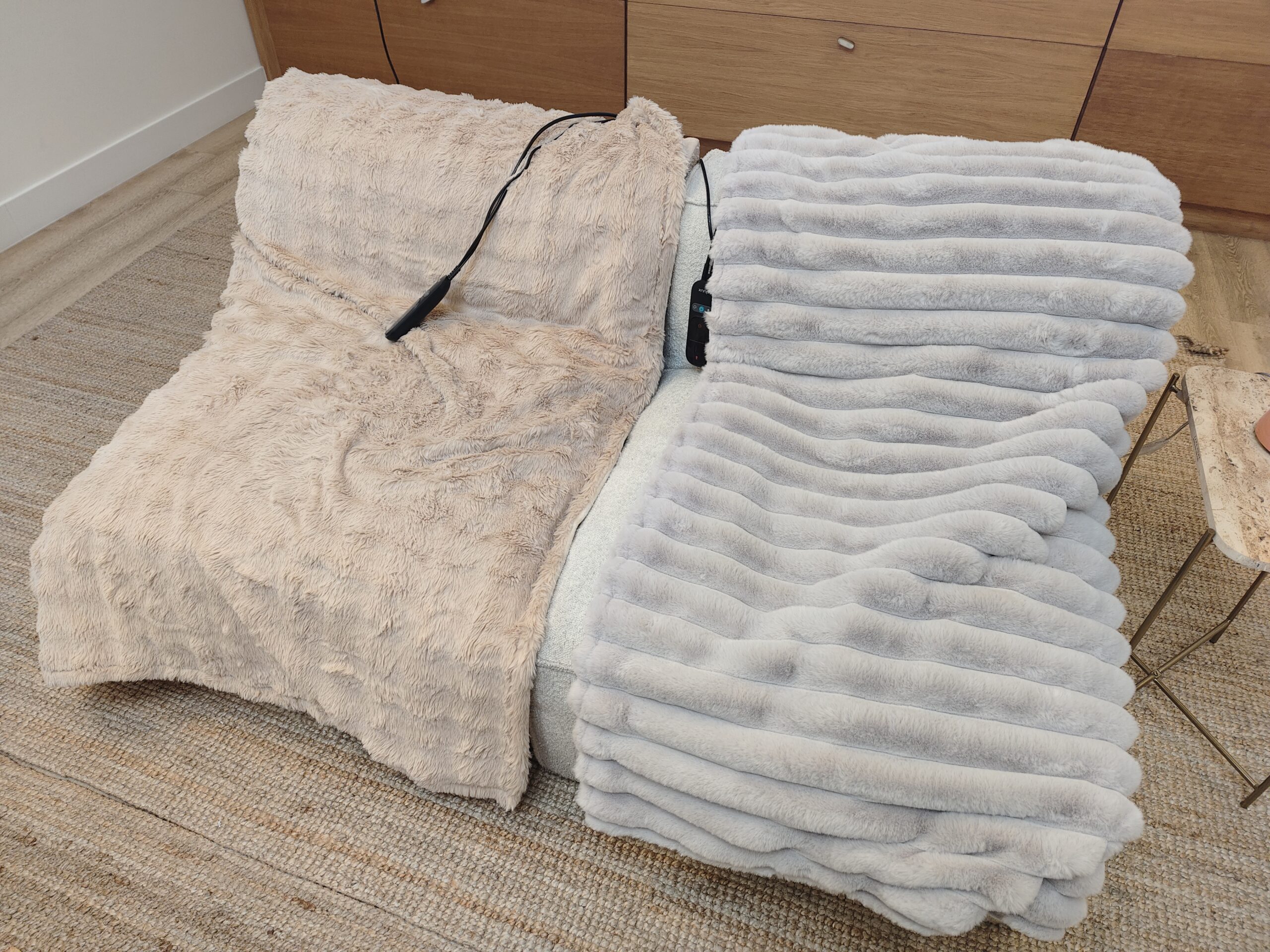 Le modèle testé est absolument gigantesque puisqu’il fait 2 x 2 m. Il présente une particularité majeure par rapport aux trois autres produits testés : il est directement relié à votre prise électrique. Vous allez le voir, ça a son importance. Oui la couverture est aussi douce qu’elle en a l’air et la chauffe fonctionne très bien. C’est très agréable de se glisser dessous en journée ou la nuit.