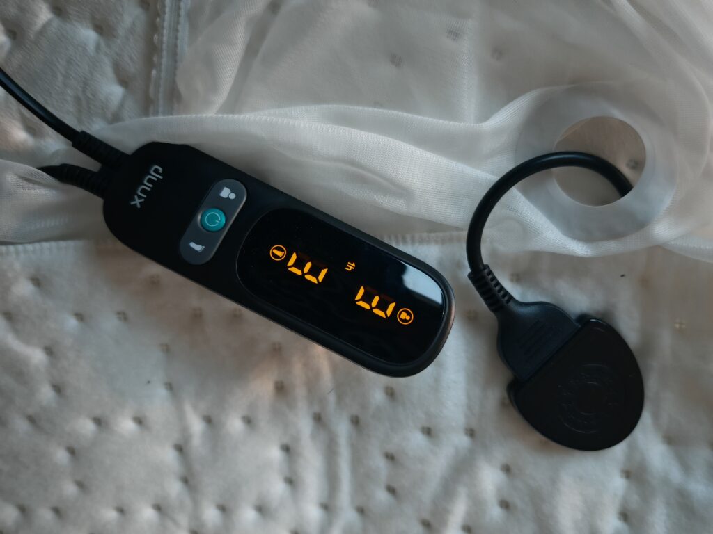 Peu après la rédaction de cet article, la marque m’a aussi fait parvenir la sous-couverture chauffante Duux Snooze en 140x200cm. Plusieurs formats existent pour des lits simples ou doubles. Dans le cas des lits doubles, on retrouve deux télécommandes à gauche et à droite pour que chaque personne qui dort dans le lit puisse ajuster la température sous son corps à sa convenance.