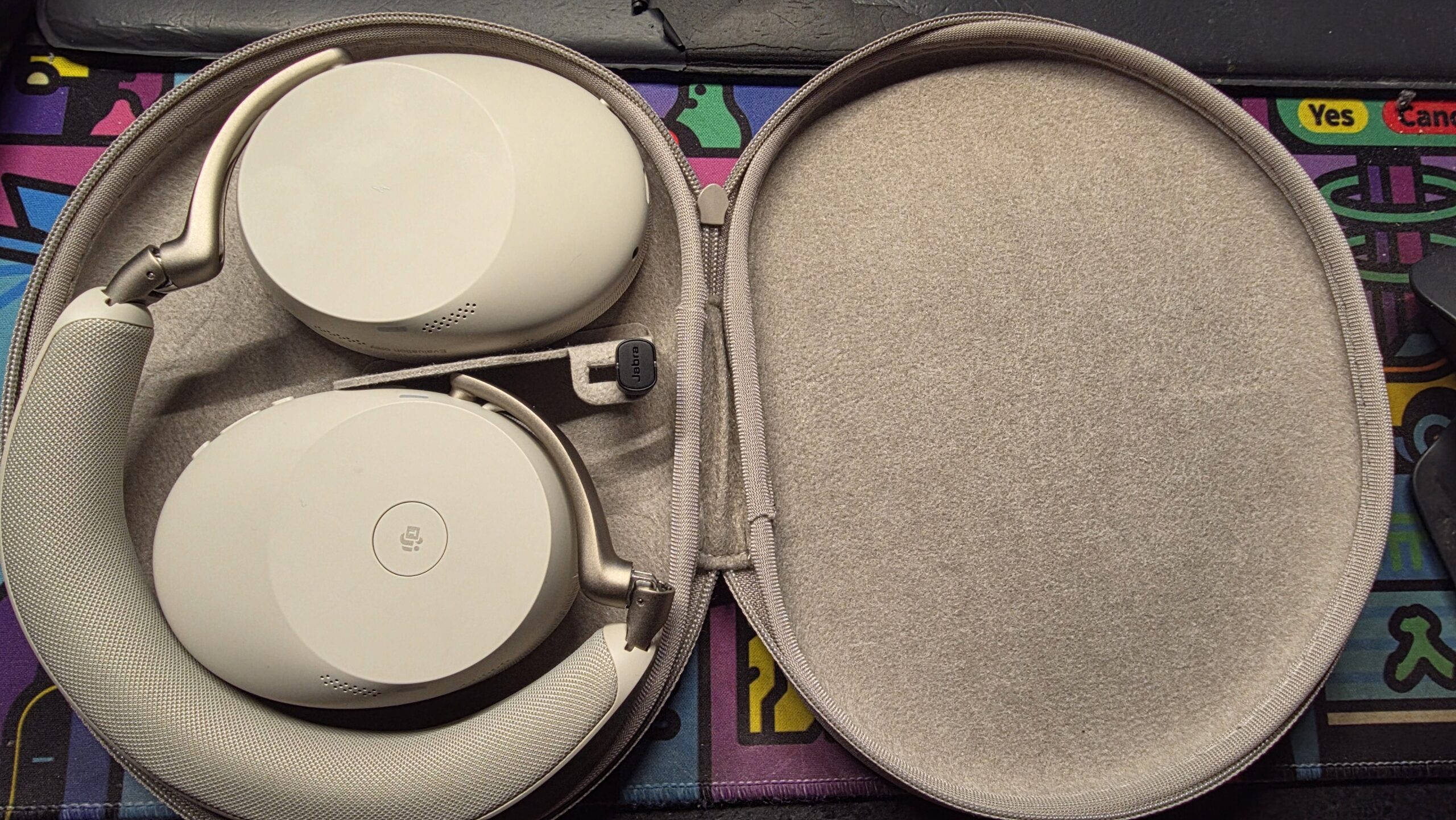 Le casque Jabra Evolve3 85 est proposé au tarif de 569€ d’après le communiqué de presse. Divers tarifs plus ou moins élevés à ce nombre sont cependant trouvables d’après mes recherches. Bien que la technologie d’appel en environnement bruyant soit très performante, que le produit soit très beau, confortable et facilement transportable, le tarif passe difficilement de mon côté. Si l’appareil jouissait d’une meilleure ANC et réduction de bruit passive, cela pourrait éventuellement se justifier.