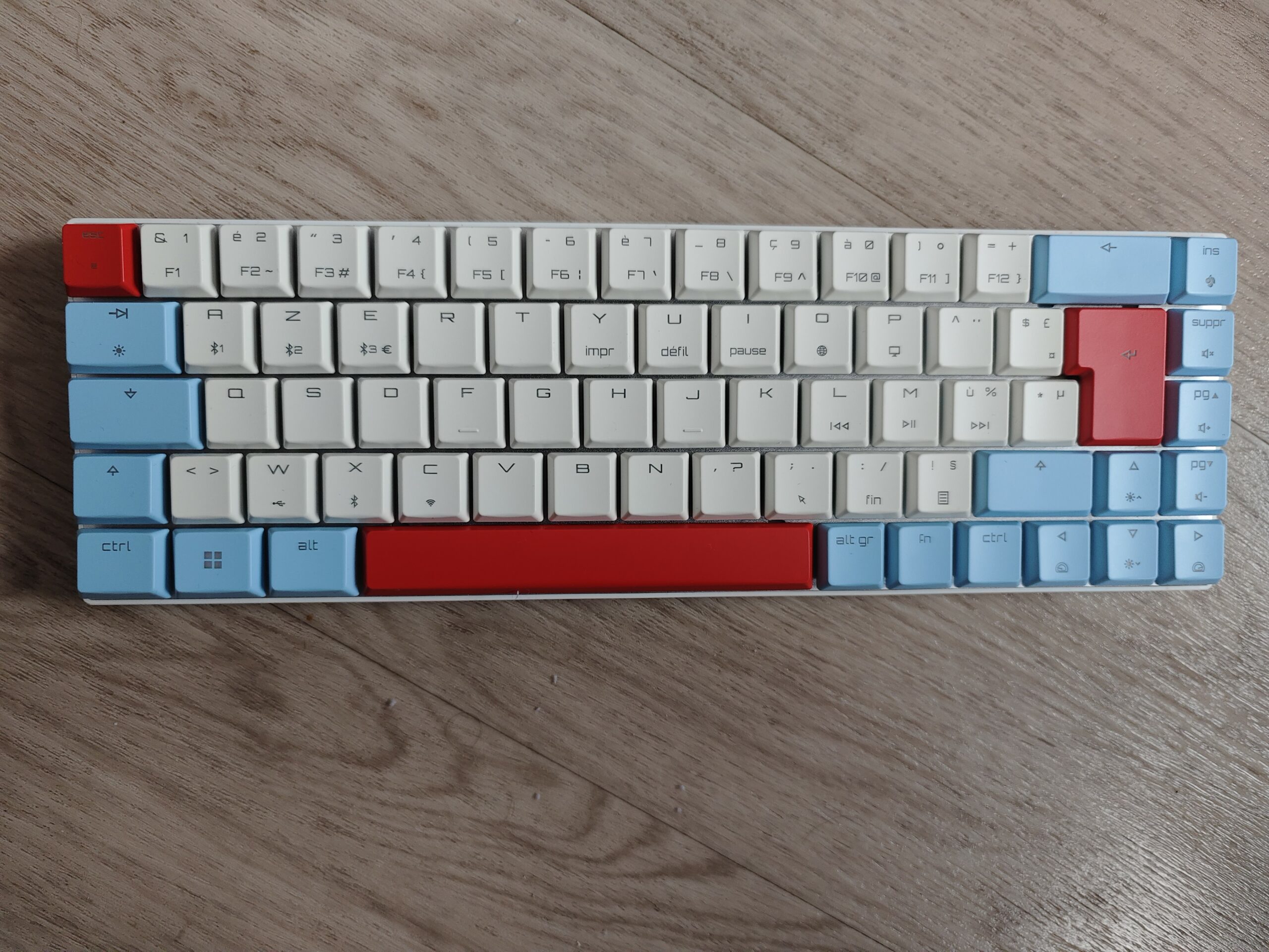 On retrouve ici un clavier d’une taille très réduite comme son nom l’indique. Il profite de touches mécaniques low profile pour réduire la distance des clics et satisfaire les gamers. Ces derniers profitent aussi du mode spécial faible latence à 1ms. Cependant son côté compact fait que la frappe accidentelle de touches adjacentes à celle initialement désirée peut être assez fréquente. Il faut un temps d’adaptation si on est habitué à des claviers avec des touches bien séparées entre elles. L’appareil est pourtant équipé d’une technologie anti-ghosting visant justement à éviter ce genre de souci mais je dois avoir des doigts trop gros.