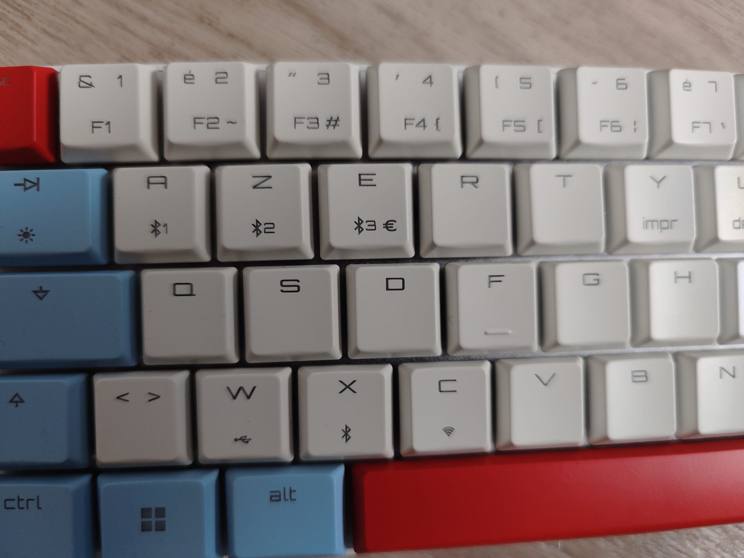 Gros point fort en terme de connectivité puisqu’il peut être utilisé sur 3 appareils en Bluetooth, 1 appareil avec le dongle USB et 1 appareil en filaire. Le switch se fait simplement directement sur les touches du clavier (et la touche FN).