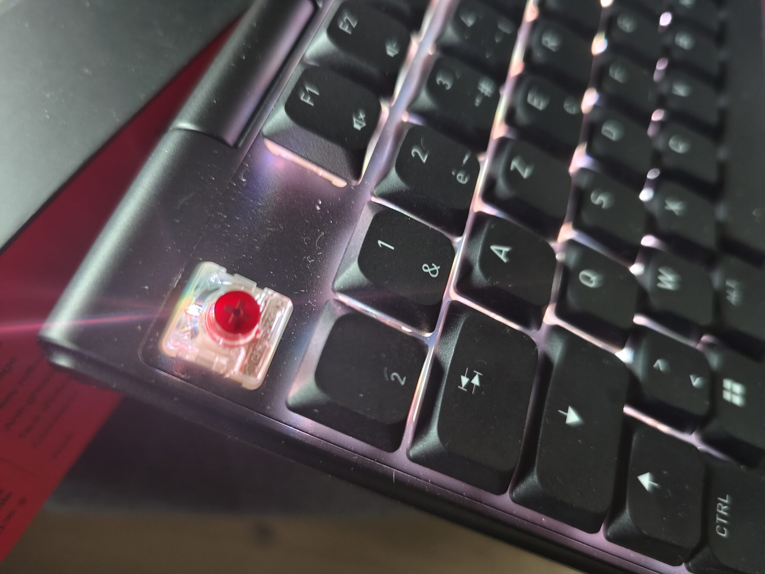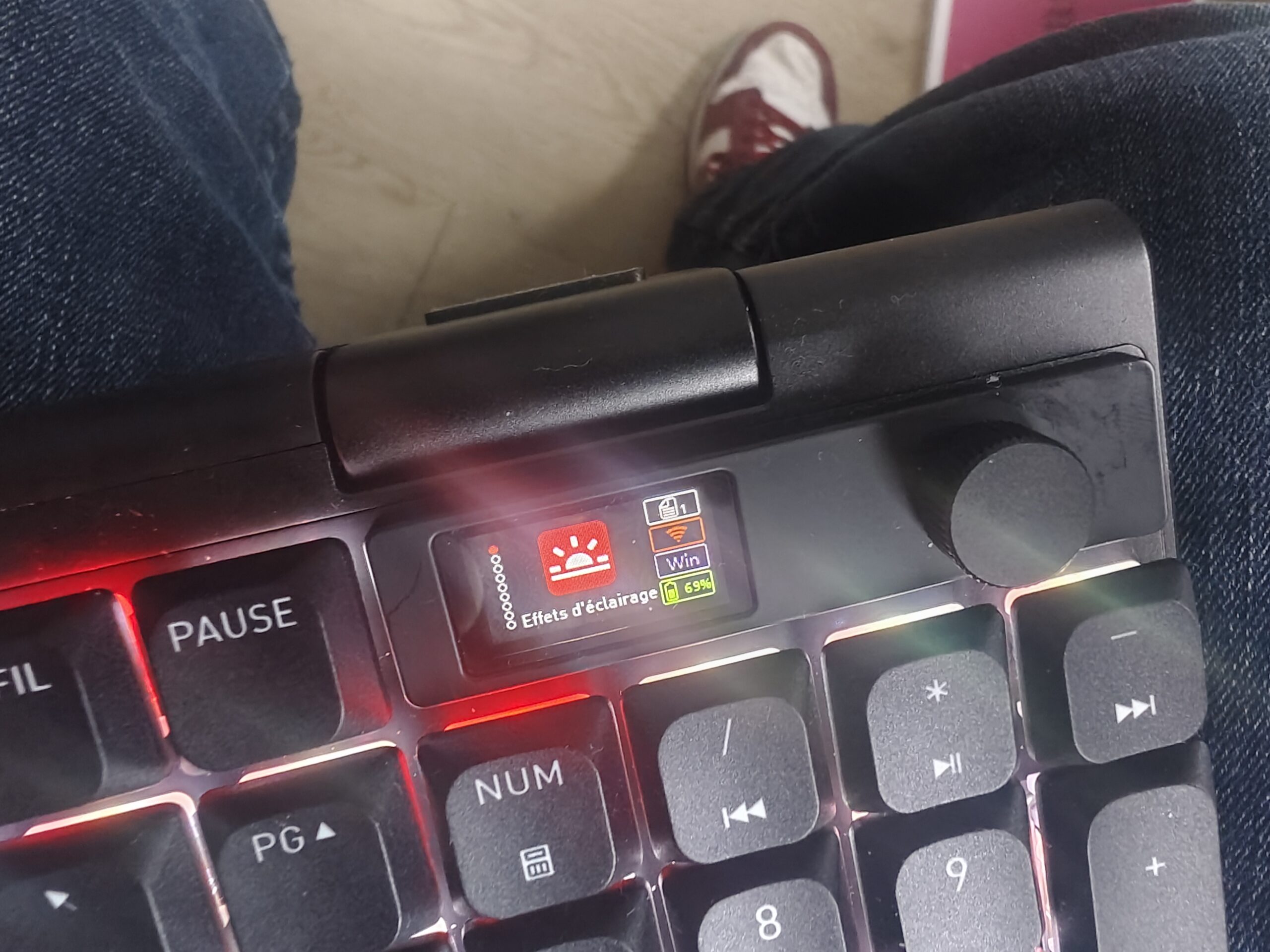 Si j’apprécie la diffusion de la lumière sous les touches avec de multiples patterns, je regrette l’absence de rétroéclairage pour les touches. En usage nocturne, c’est un outil bien utile et appréciable quand c’est disponible.