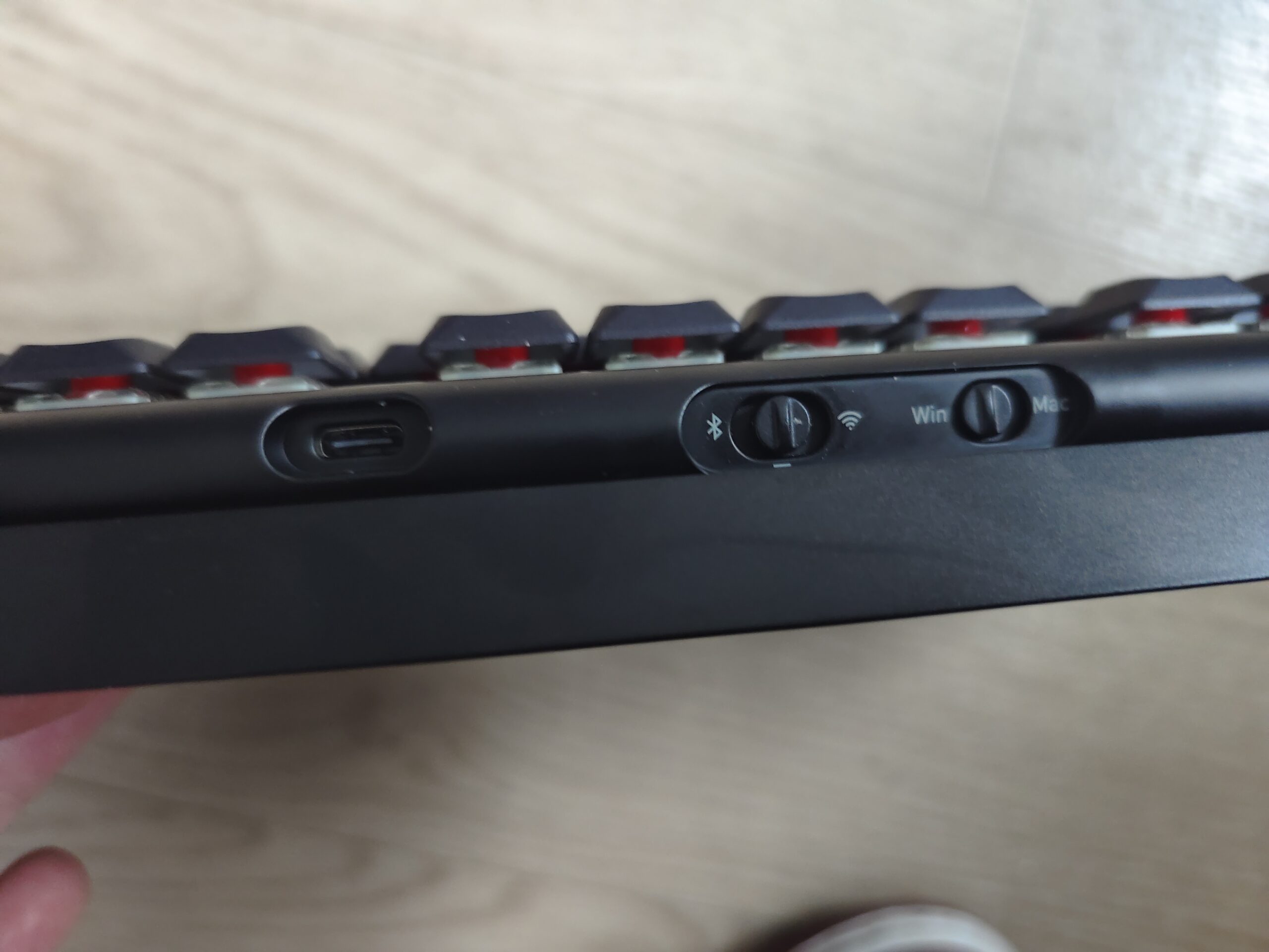 A l’inverse de tous les claviers sans fil que j’ai croisés à ce jour, on a ici un dongle énorme qu’il faut relier avec le câble USB à votre PC. C’est dommage je trouve. Il n’est donc pas possible non plus de le ranger dans le clavier.