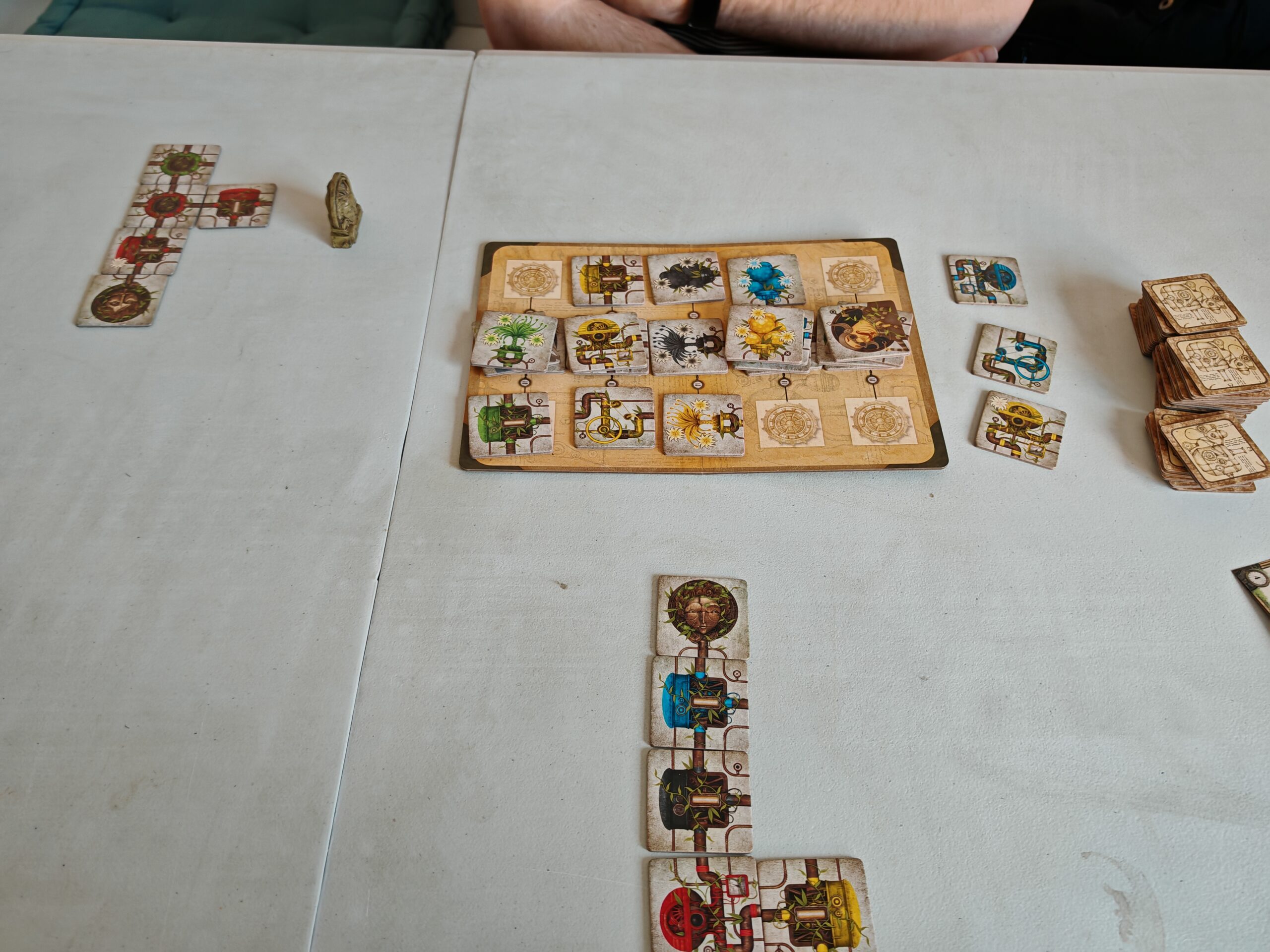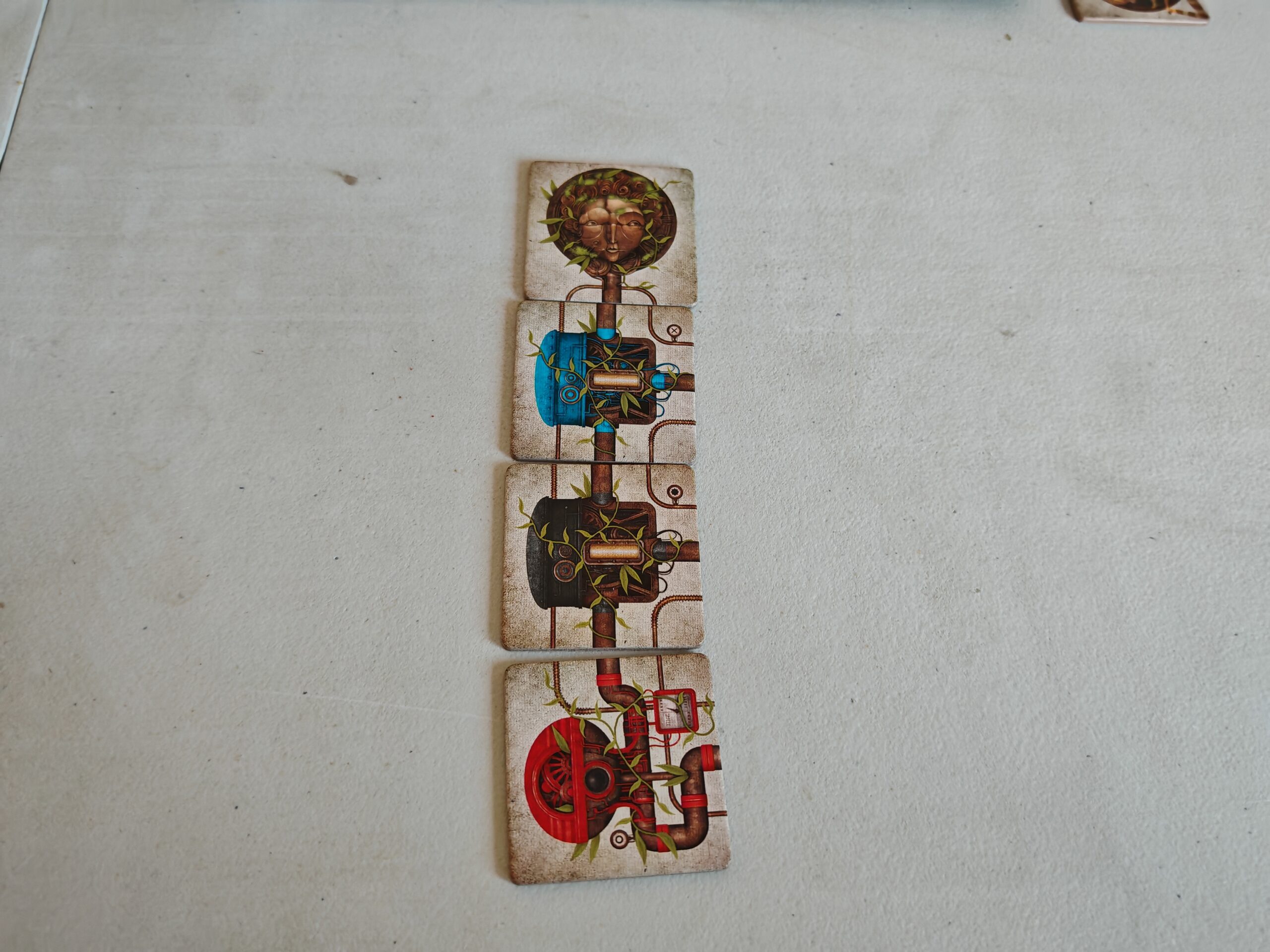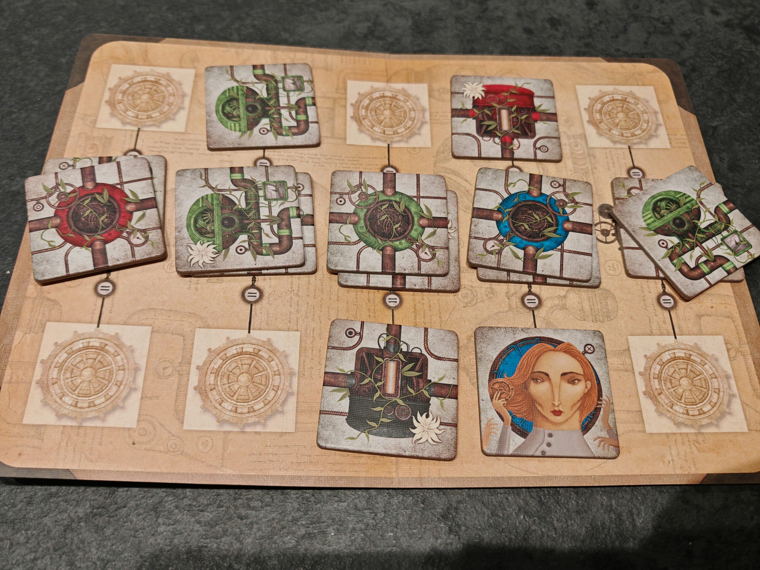 Des contraintes de poses se joignent à l’aventure pour espérer la victoire : votre réseau ne doit pas être fermé et les tuiles plantes/fruits ne rapportent de points que si elles sont reliées à un tuyau de même couleur. Evitez de créer de la diversité de couleurs dans votre réseau. En effet, dès que vous avez trois tuiles ou plus adjacentes de même couleur (sans nécessairement être directement connectées par le tuyau), chaque tuile de ce groupe fera 1 point. Bien qu’il y ait beaucoup de tuiles, vous allez au final en récupérer relativement peu.