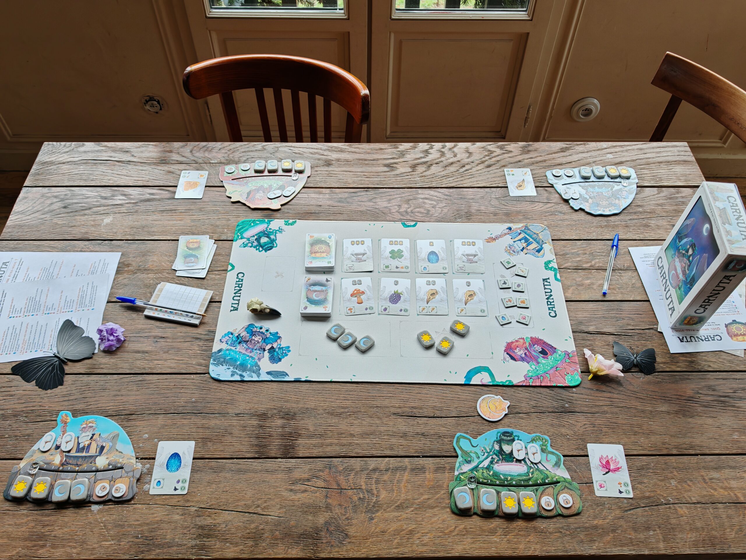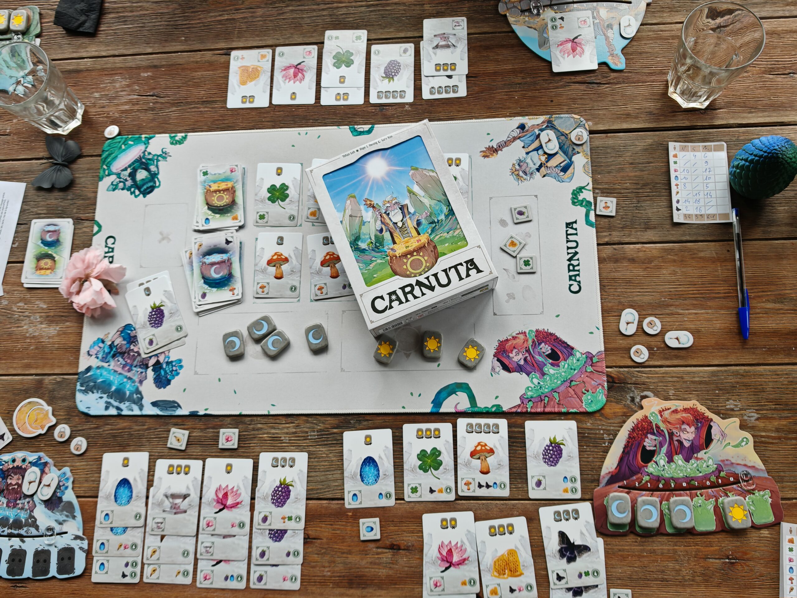 Carnuta remplit selon moi tous les critères pour en faire un jeu sélectionné à l’As d’Or l’an prochain. Le jeu convient aussi bien à la famille qu’aux joueurs plus aguerris et stratégistes. Les règles sont simples et les parties rapides (30 minutes tout au plus). Le matériel est top et les visuels très sympas.