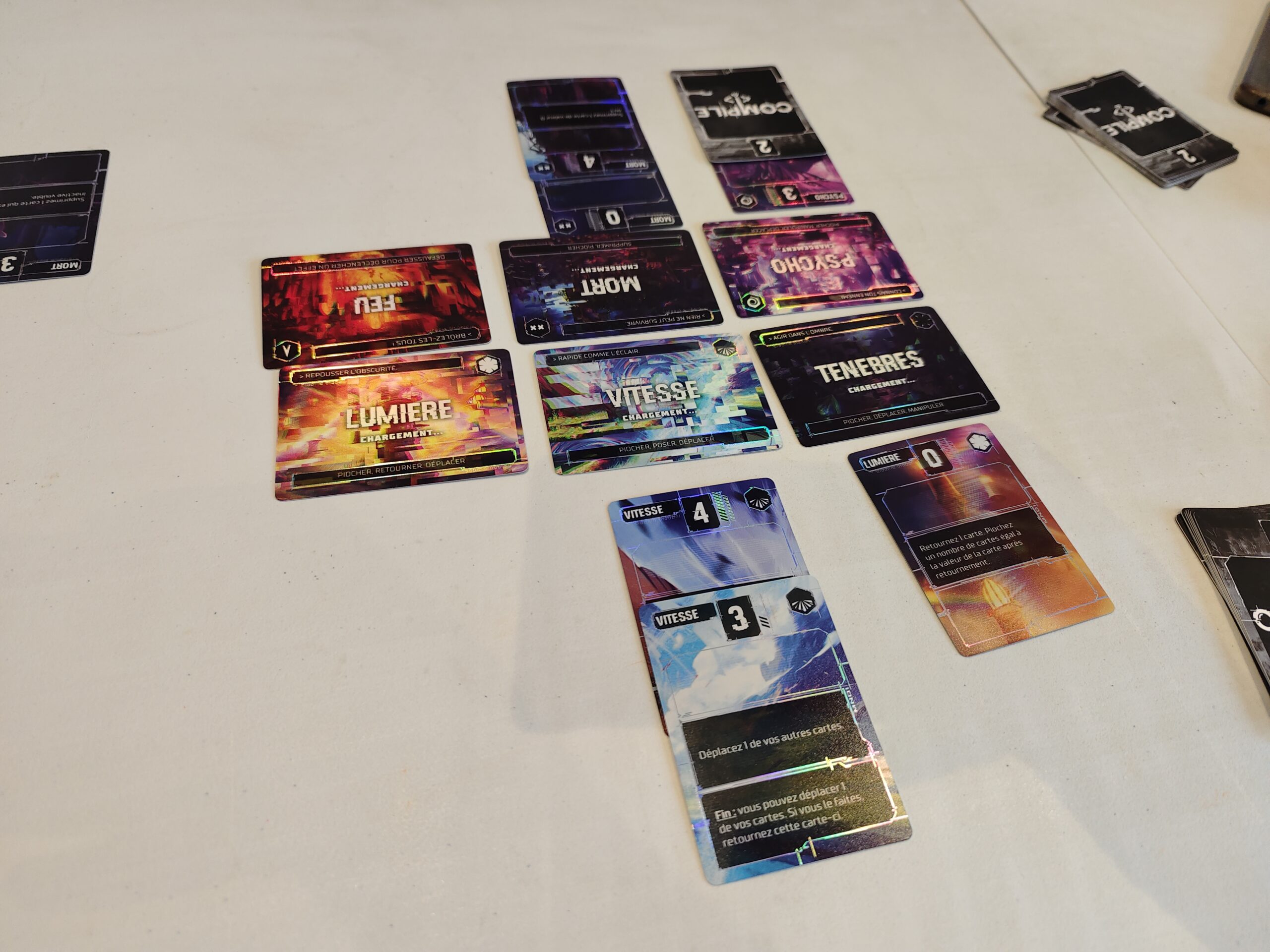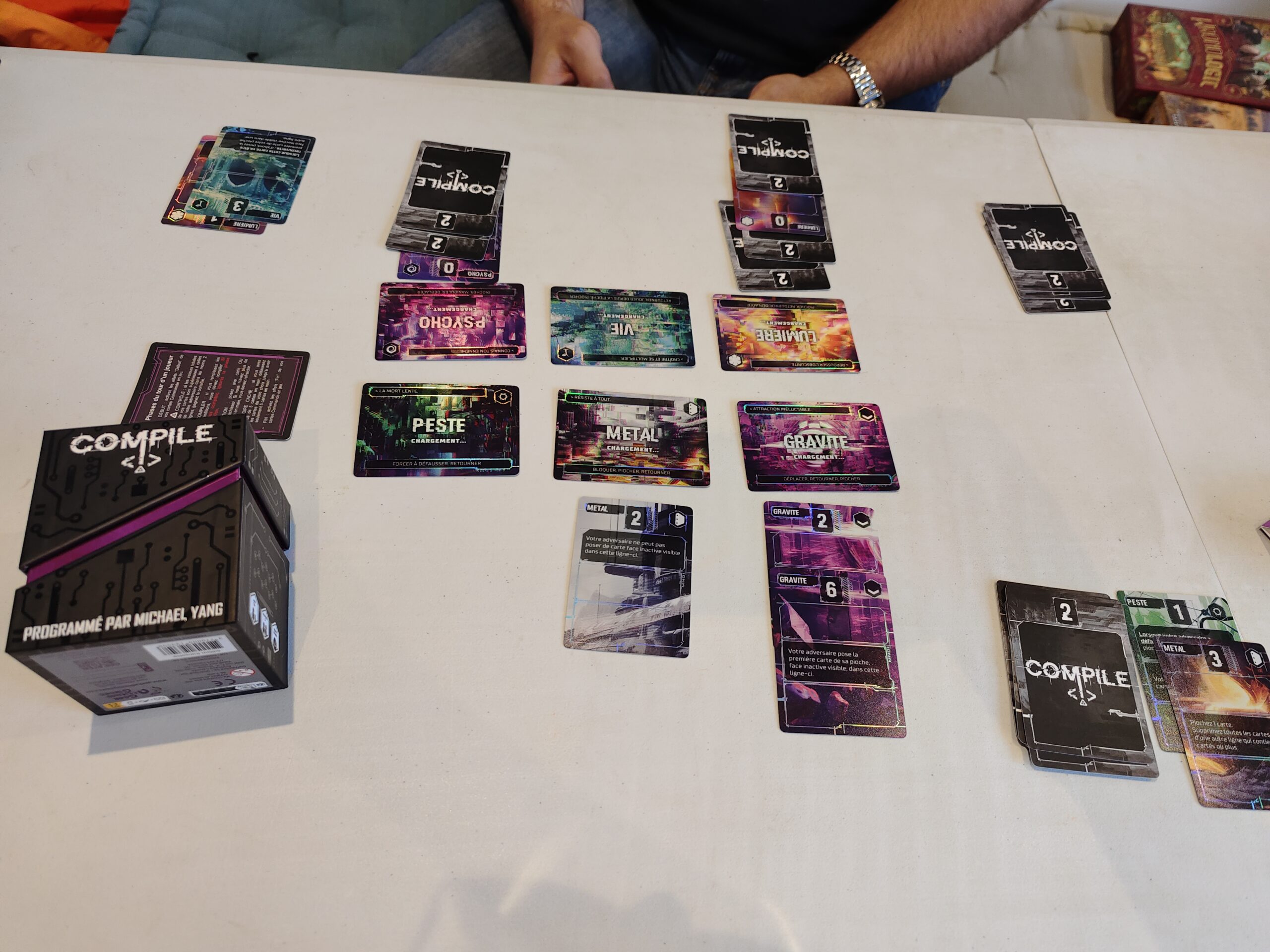 Compile est un jeu pour deux joueurs relativement accessible. Cependant, beaucoup de cartes mériteraient une réécriture, tout comme le livret de règles. Il est nécessaire d’avoir la FAQ ouverte à côté de vous durant vos parties. Les cartes sont d’une qualité exceptionnelle et ne nécessitent pas d’être sleevées. Le design m’a beaucoup plu.