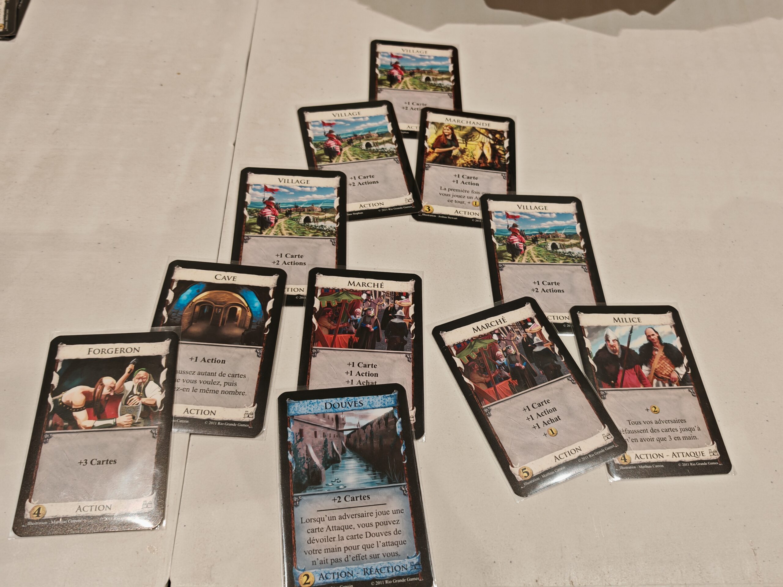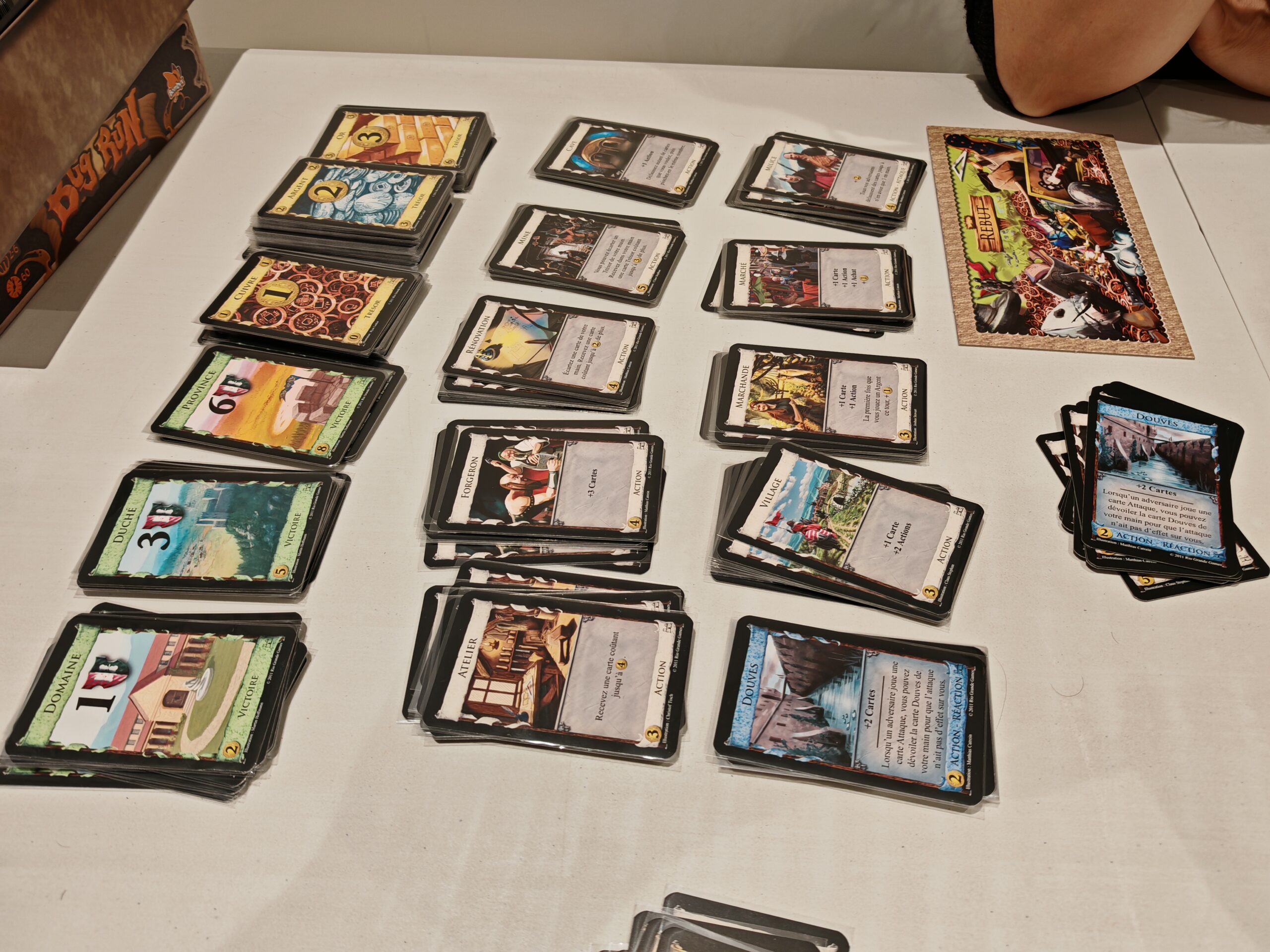 Dominion a posé les bases du genre deckbuilding il y a plusieurs années de cela. Le principe est simple. Piochez 5 cartes, jouez UNE carte action puis faites UN achat parmi les 17 piles de cartes. Vous vous en doutez, parmi ces cartes, plusieurs d’entre elles vont vous permettre de faire davantage d’achat, de piocher davantage, de faire davantage d’actions…