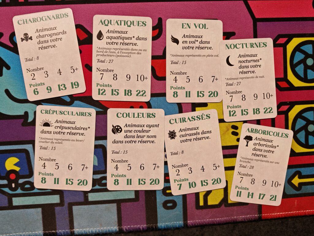 Enfin et surtout, les cartes sont toutes très jolies et rappellent forcément des jeux de collections animalières comme Wingspan et Forêt Mixte. Honnêtement c’est du chouette matériel.