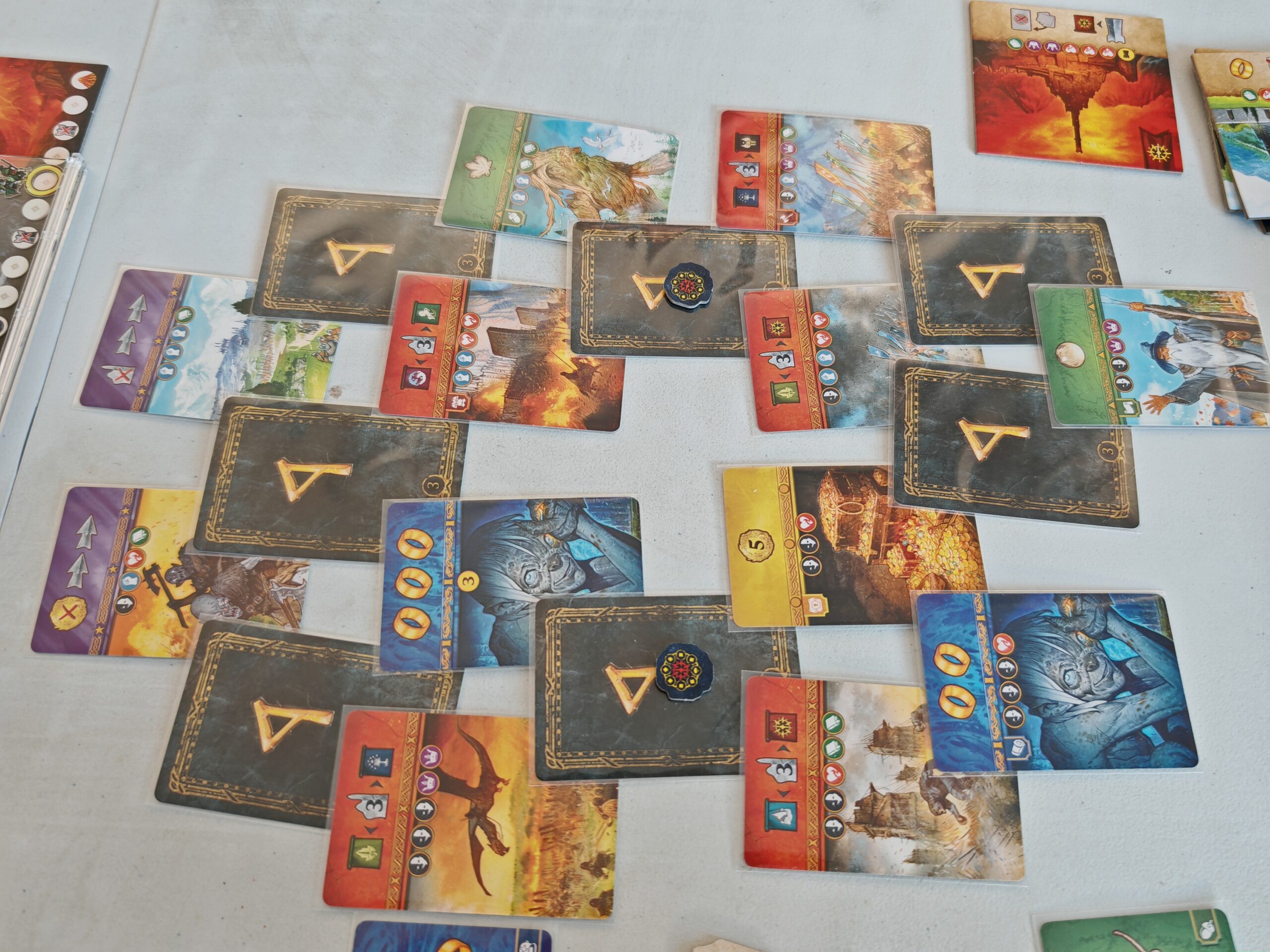 Les tuiles haut-lieu disposent de pouvoir assez puissants mais nécessitent un grand nombre d’icones. Celles-ci sont disponibles sur les cartes grises mais sont aussi remplaçables par des pièces d’or. Il est donc important de toujours avoir de l’argent. L’or peut être récupéré via les cartes jaunes ou simplement en défaussant la carte choisie pour gagner 1/2/3 pièces selon l’âge en cours.