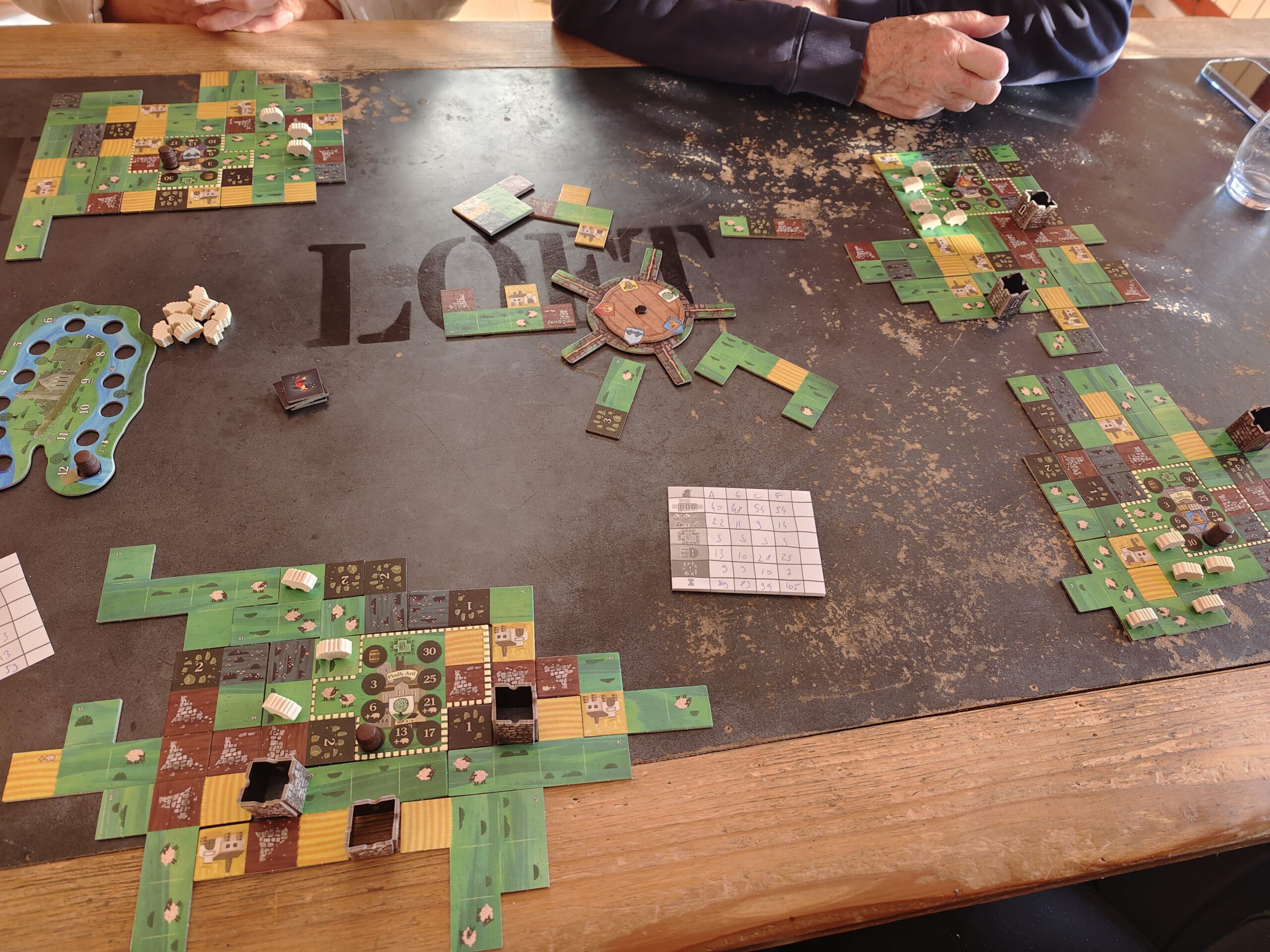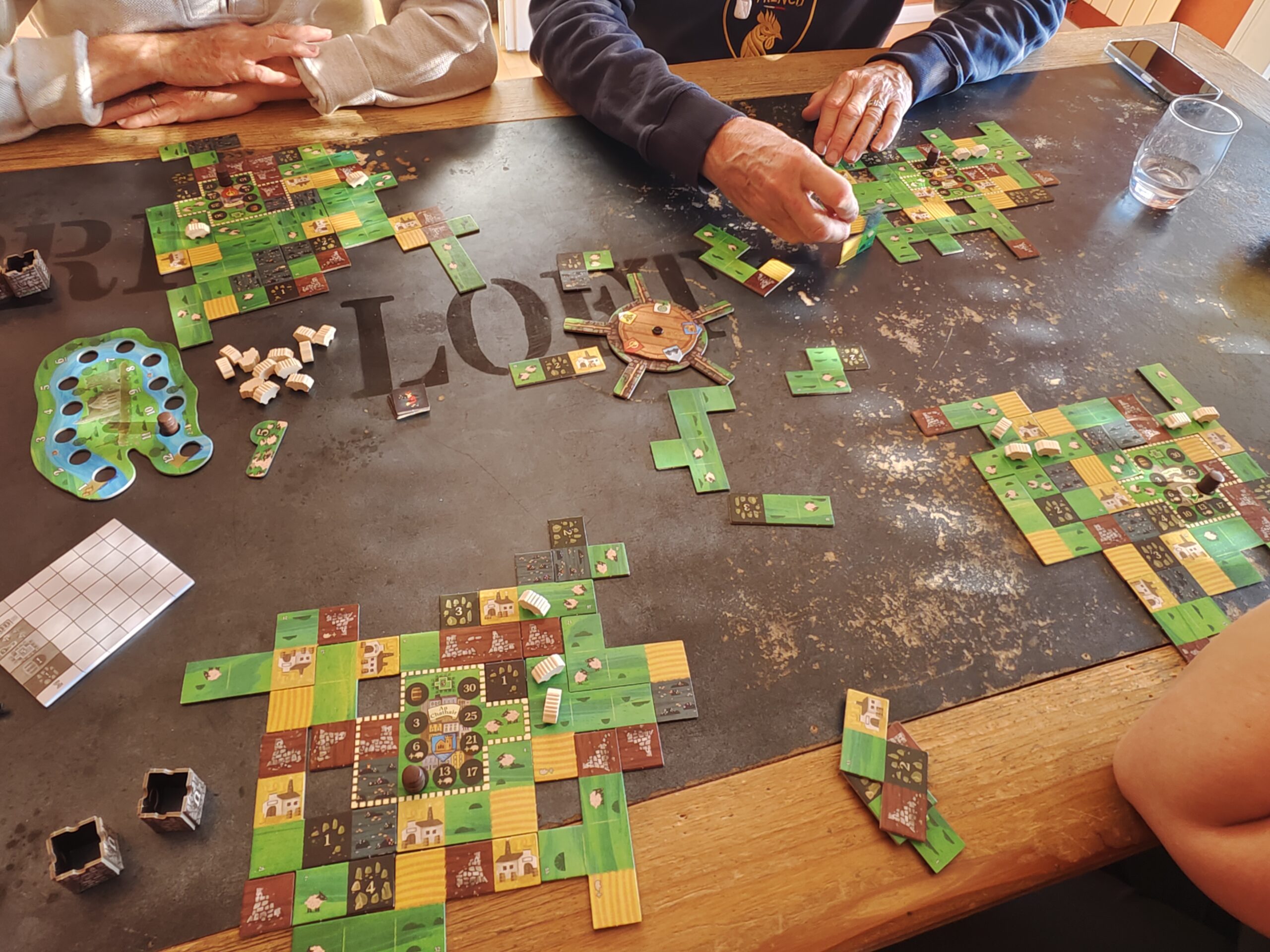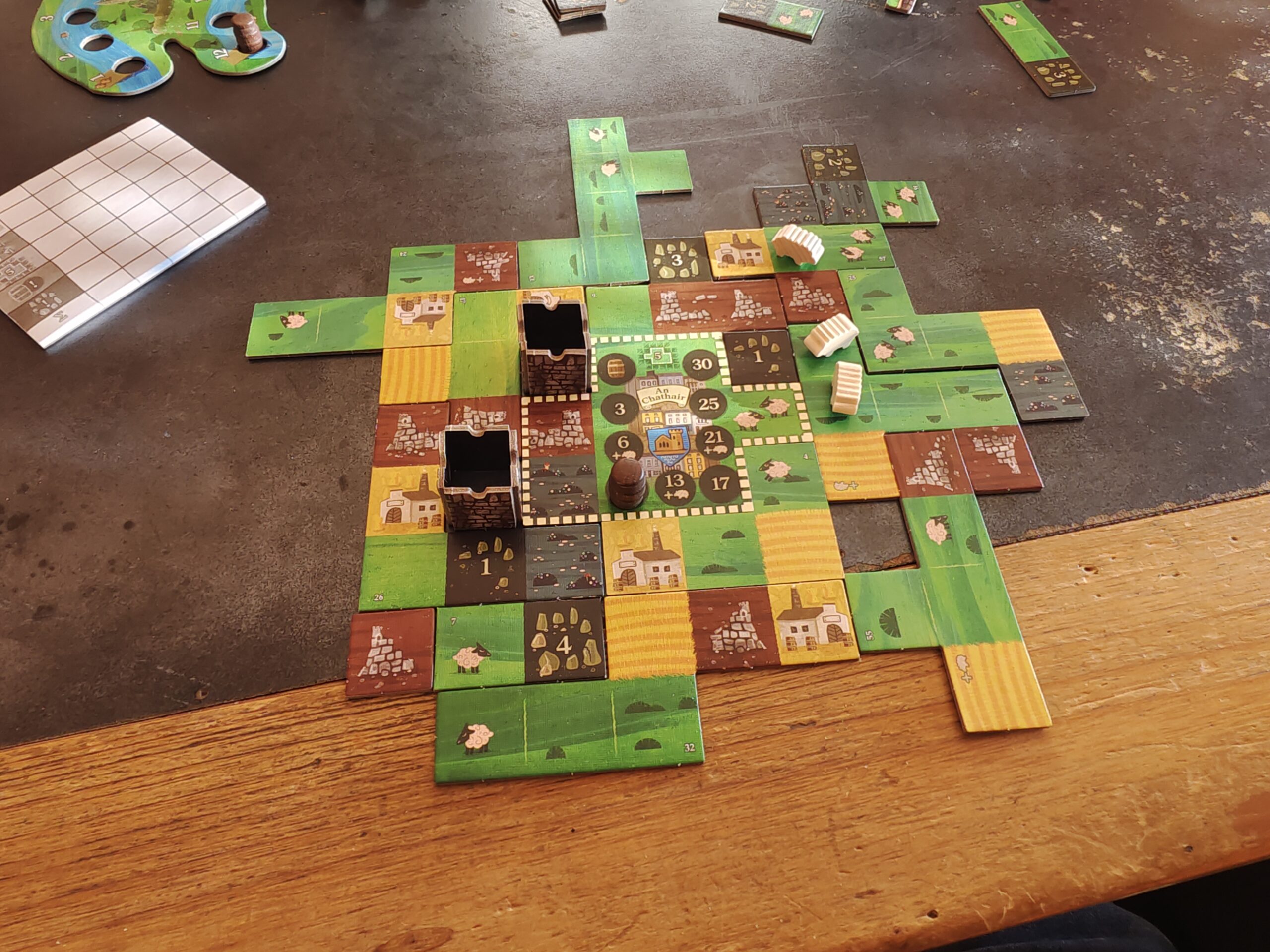 Il faudra donc trouver le juste équilibre entre avoir un joli rectangle complet, un grand groupe de moutons, plein de distilleries et champs à côté, un village pleinement entouré et des cercles de pierres. N’oubliez pas que pour les 5 points à gagner pour votre village entouré, cela prend aussi en compte la diagonale.
