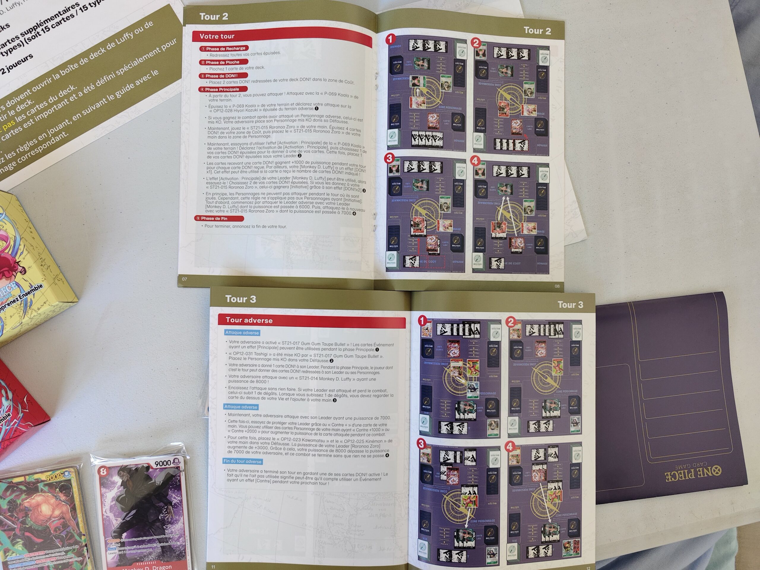 Il y a aussi 2 livrets pour les decks de Zoro et Luffy avec une explication détaillée de chaque action des premiers tours. Dans l’ensemble c’est du bon matériel.