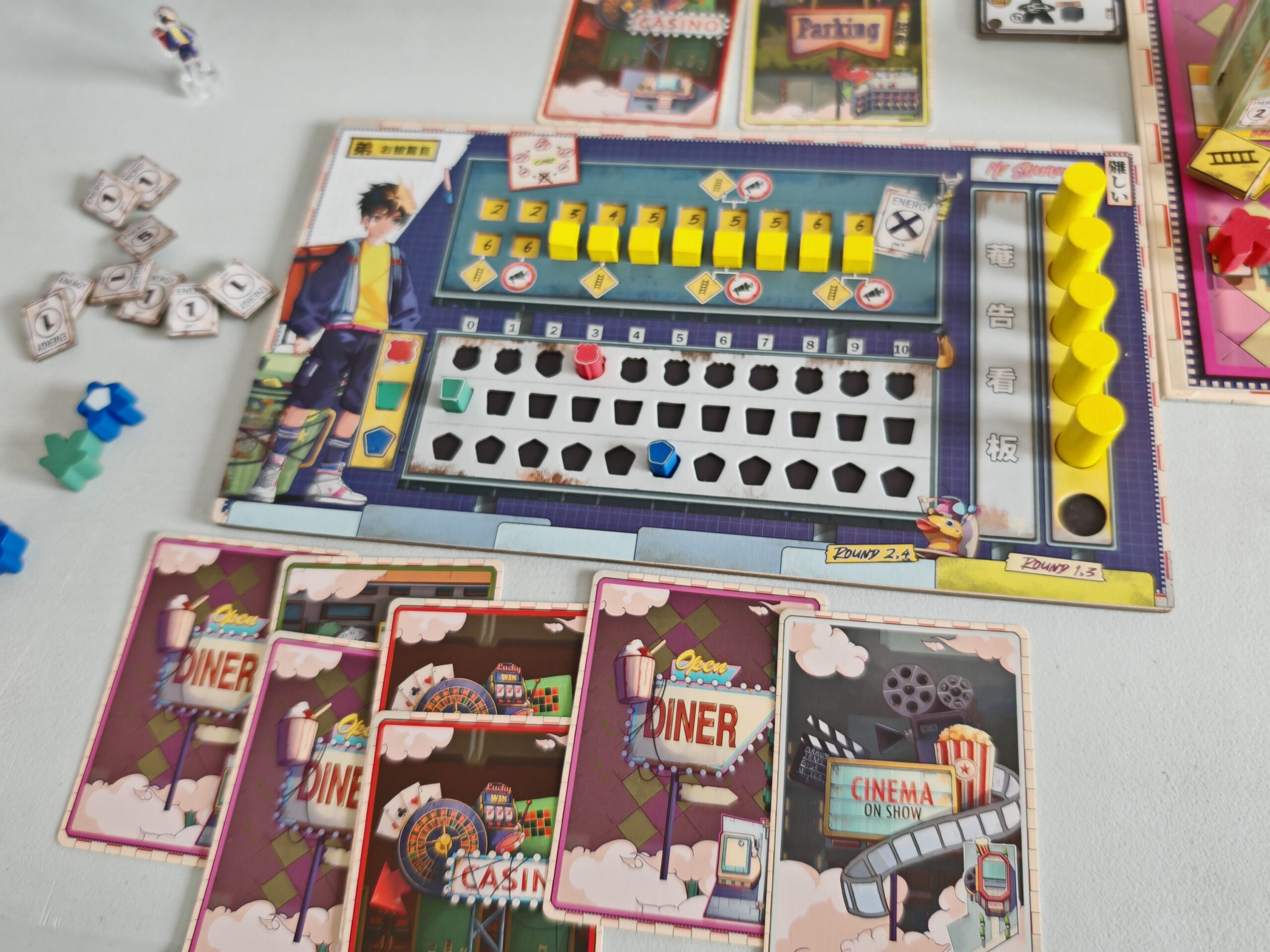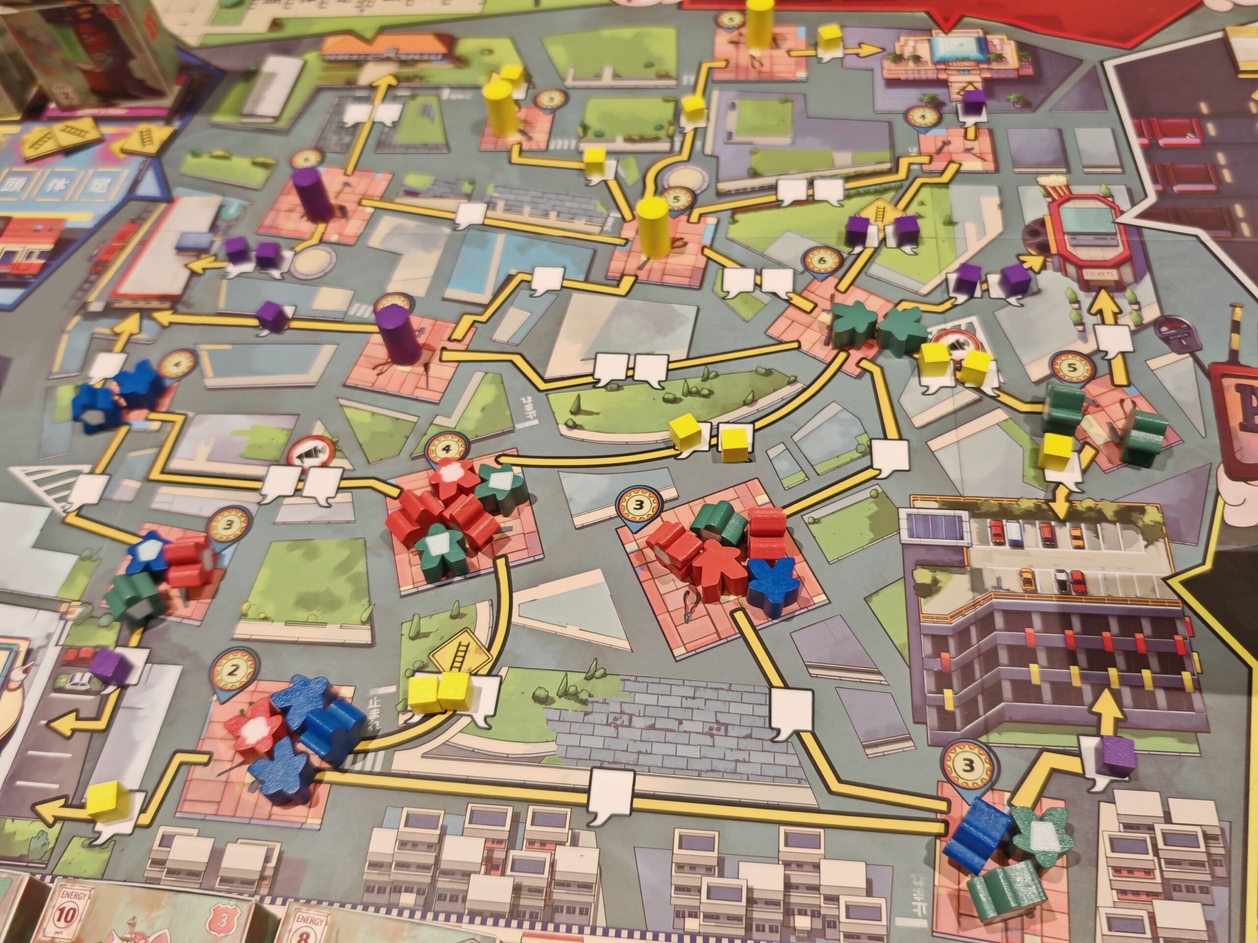On sera presque toujours en déficit de ressources (cartes, énergie, échelles). Pour les mégaphones, ils auront une double utilité : vous permettre de faire une seconde action avant la fin du tour (donc dépenser une nouvelle carte) mais aussi et surtout faire une expo sur plusieurs Kikai à la fois. En effet, la quantité d’actions à chaque manche est particulièrement réduite donc si vous pouvez faire deux expositions pour le prix d’une action, ne négligez pas ce gain de temps.
