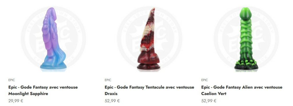 C’est sans doute la catégorie qui m’a le plus intrigué en naviguant sur le site. L’idée est simple : croiser l’univers de la fantasy avec celui du plaisir adulte. Résultat ? Des dildos fantasy aux formes de tentacules, de queues de dragon ou d’autres créatures sorties d’un bestiaire fantastique.