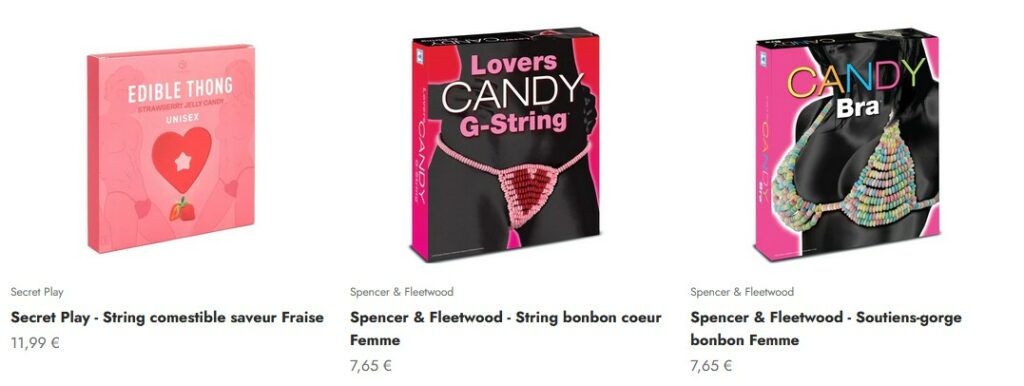 Pour celles et ceux qui ont un faible pour le sucré — et pour les jeux de séduction qui sortent un peu de l’ordinaire — la gamme de lingerie comestible de quedulove mérite un coup d’œil. Une quinzaine de références, entre strings, soutiens-gorge et autres pièces pour hommes et femmes, à déguster littéralement.