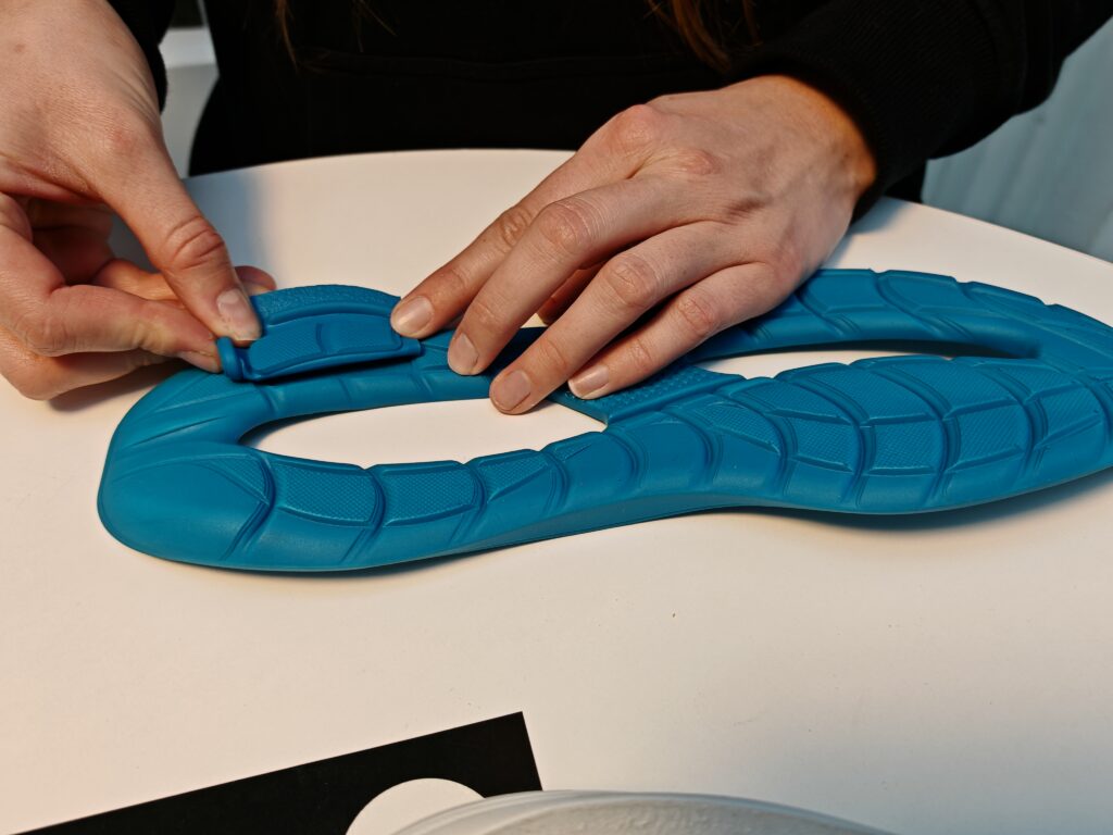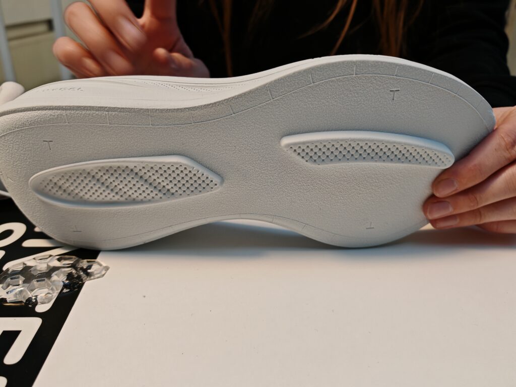 Le résume des points susmentionnés est visible dans l’éclaté de la chaussure ci-dessous.