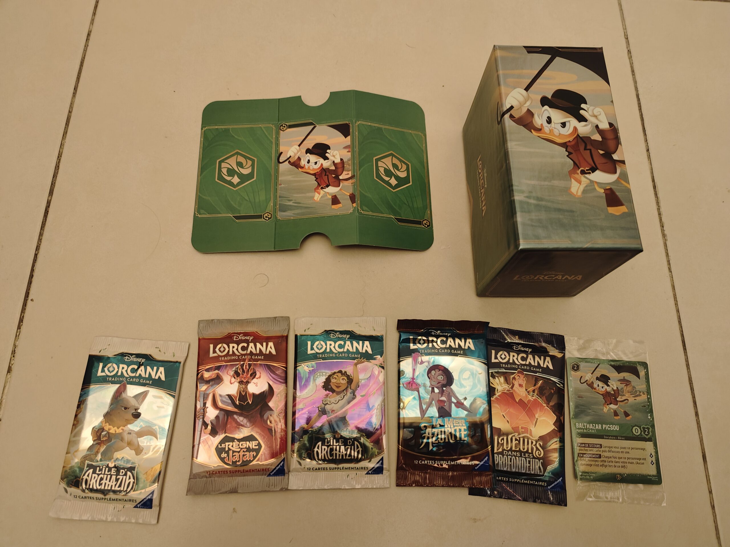 Cette petite boîte aux couleurs du meilleur personnage Disney qui soit présente un lot de 5 boosters d’éditions passées. Il présente aussi trois intercalaires dont un Picsou. Enfin, on y retrouve aussi une carte promo brillante Balthazar Picsou – Agent du C.H.U.T.