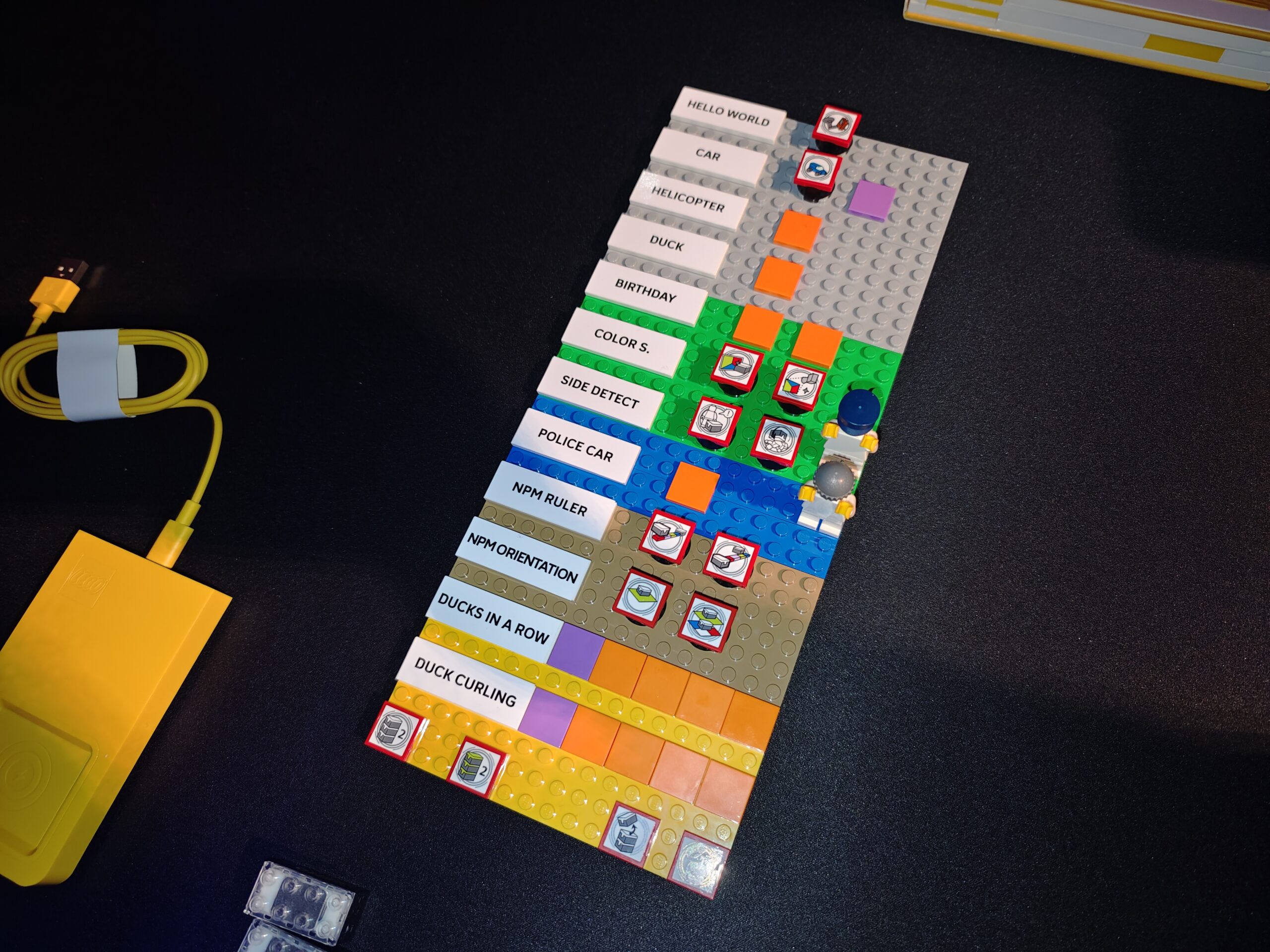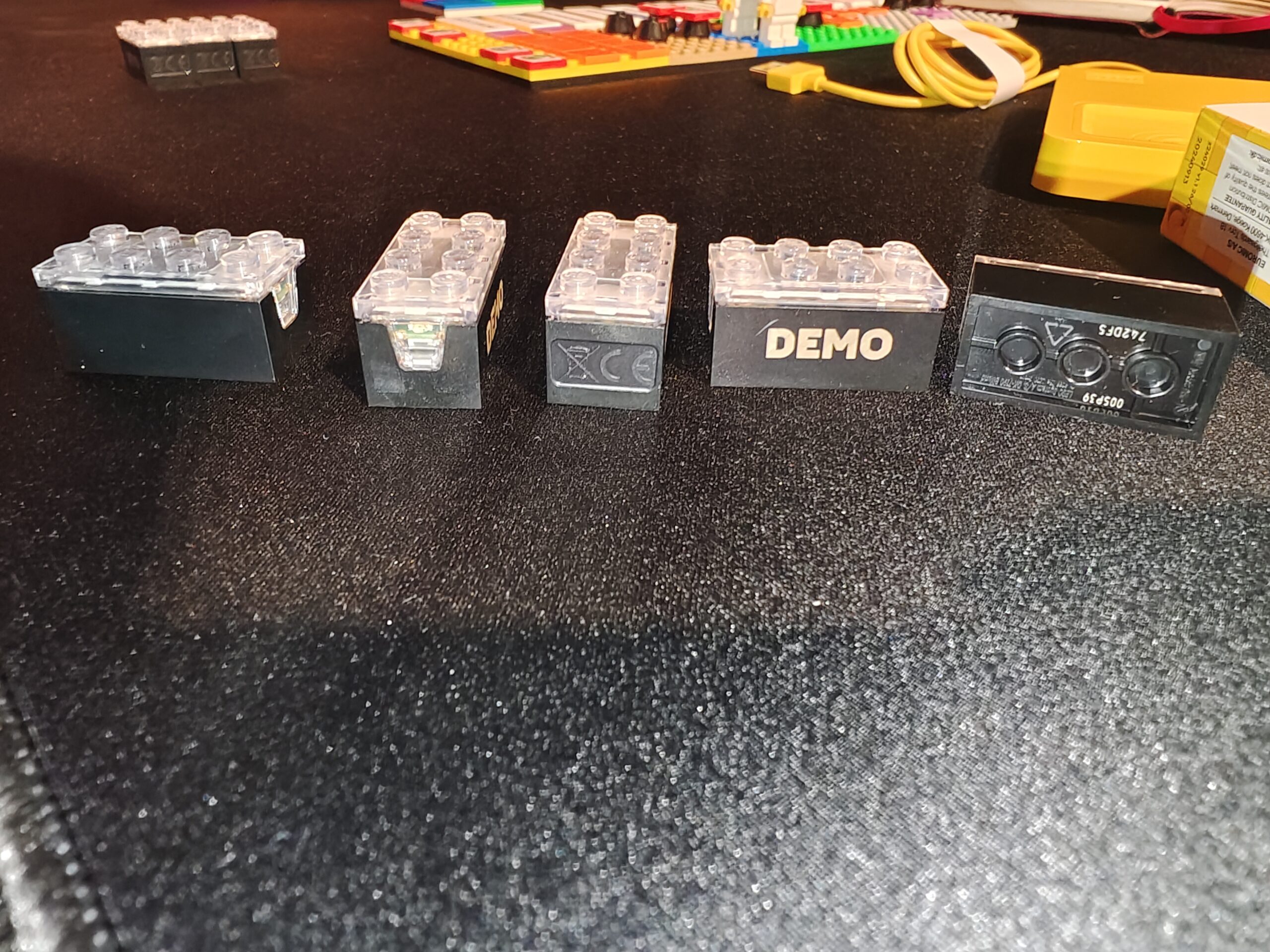 Comme vous pouvz le voir ci-dessous, la smart brique dispose de nombreuses fonctionnalités. On peut citer les capteurs, accéléromètres, gyroscope, détecteur de lumière, capteur sonore, mini haut-parleur piloté par un synthétiseur intégré, et bien plus encore. D’après mes discussions avec les équipes de la marque, ils ont développé des centaines de tags. Le module de démonstration ci-dessous permet de présenter une fonctionnalité à la fois.