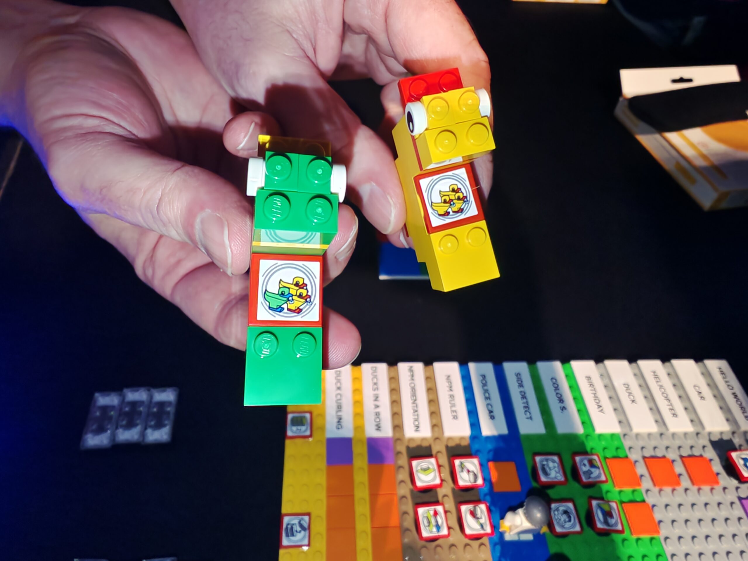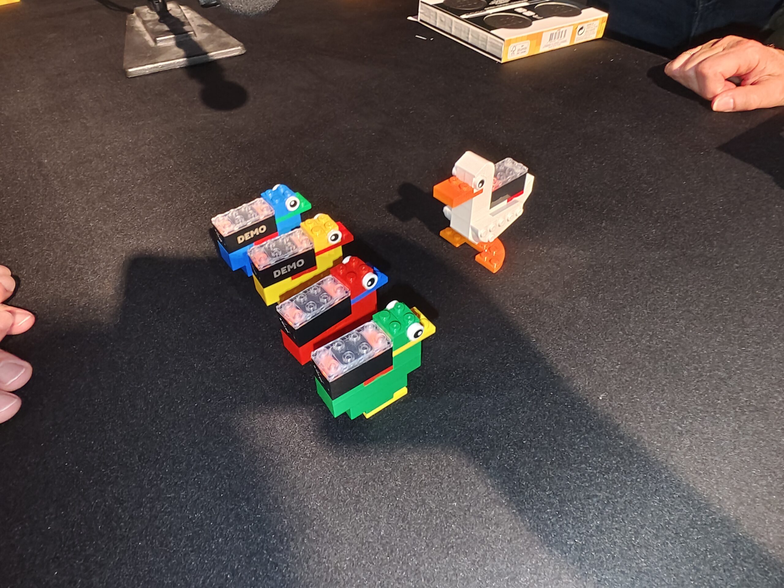 Il y a aussi beaucoup d’interactions avec les smart minifigurines. Tous les sons sont émis par la brique. Idem pour la lumière. La brique dispose par exemple d’un capteur de couleur qui permet de s’éclairer de la couleur de la tuile ciblée. Son accéléromètre permet aussi de savoir si la brique est à l’endroit ou à l’envers. En fonction des scénarios cela va déclencher divers patterns audiovisuels. La brique se recharge comme une montre connectée, via un système sans-fil.