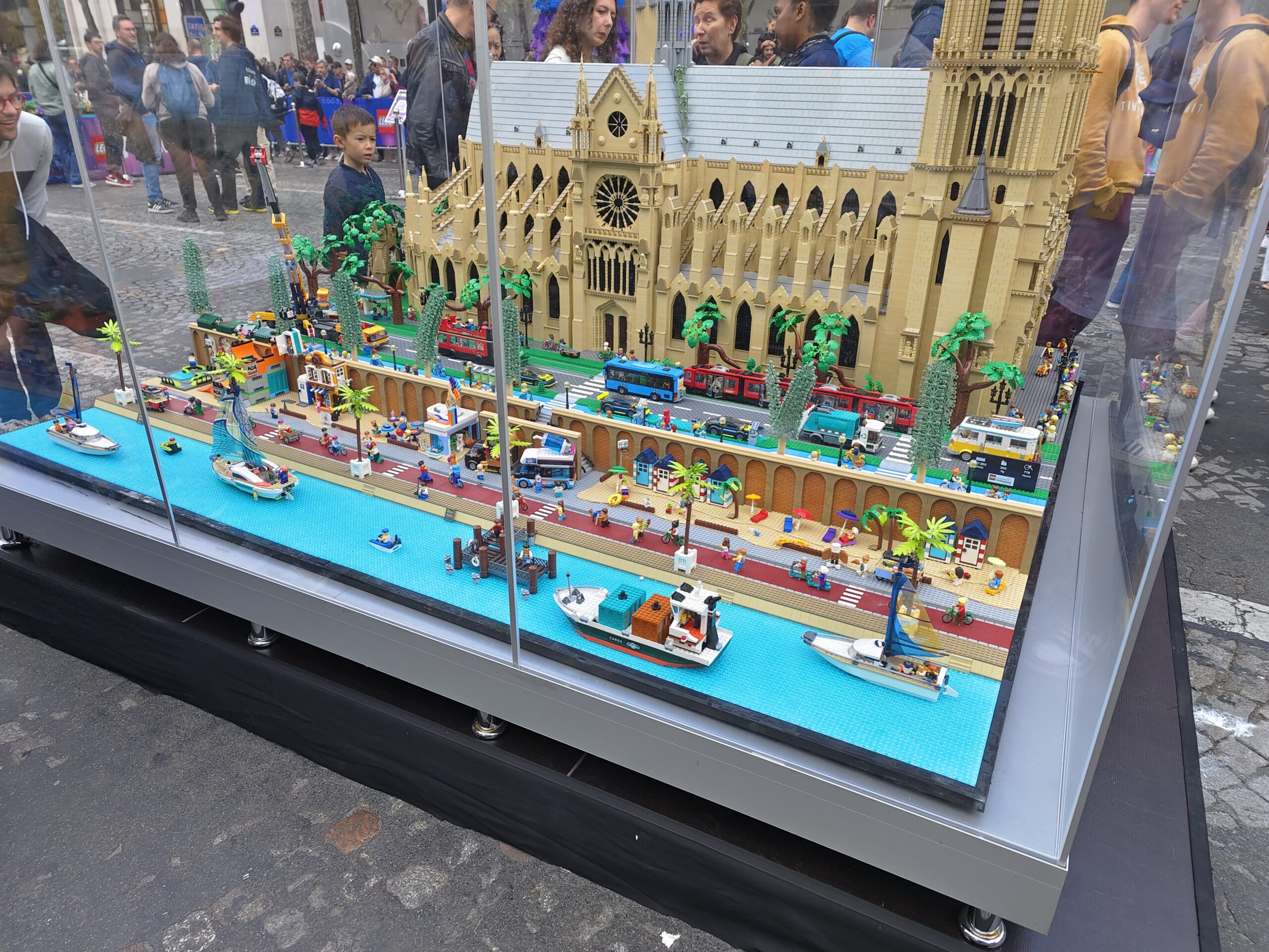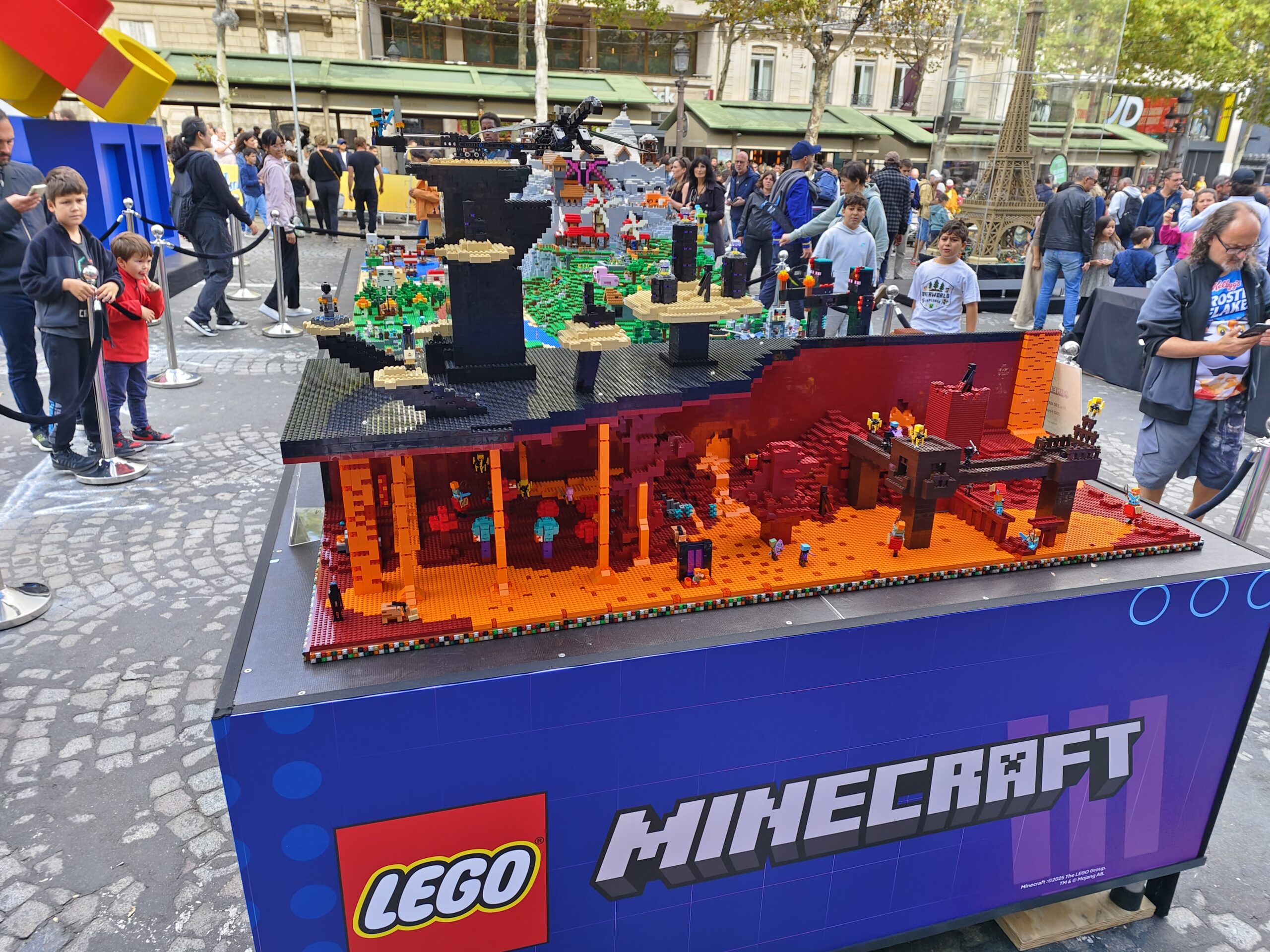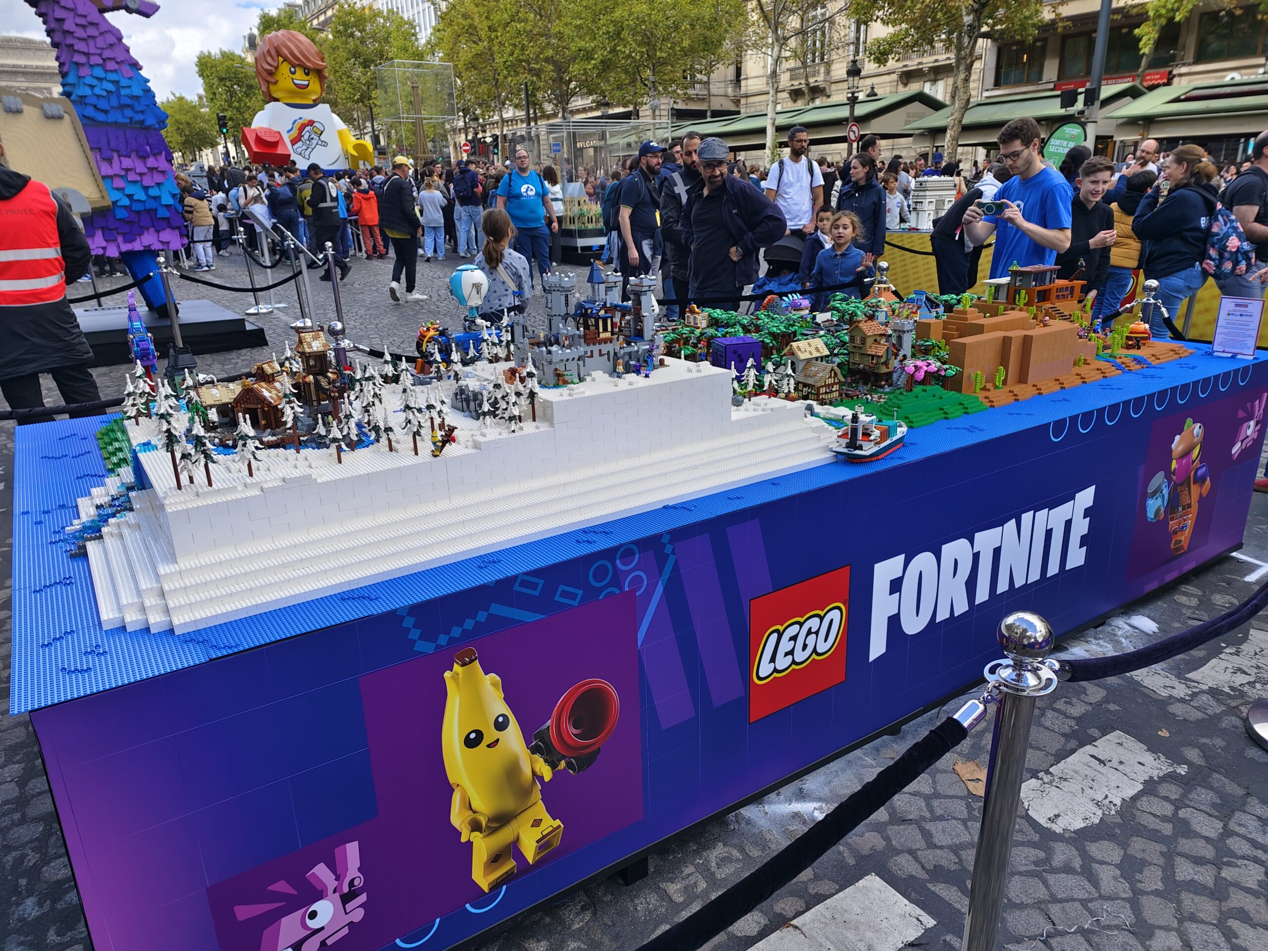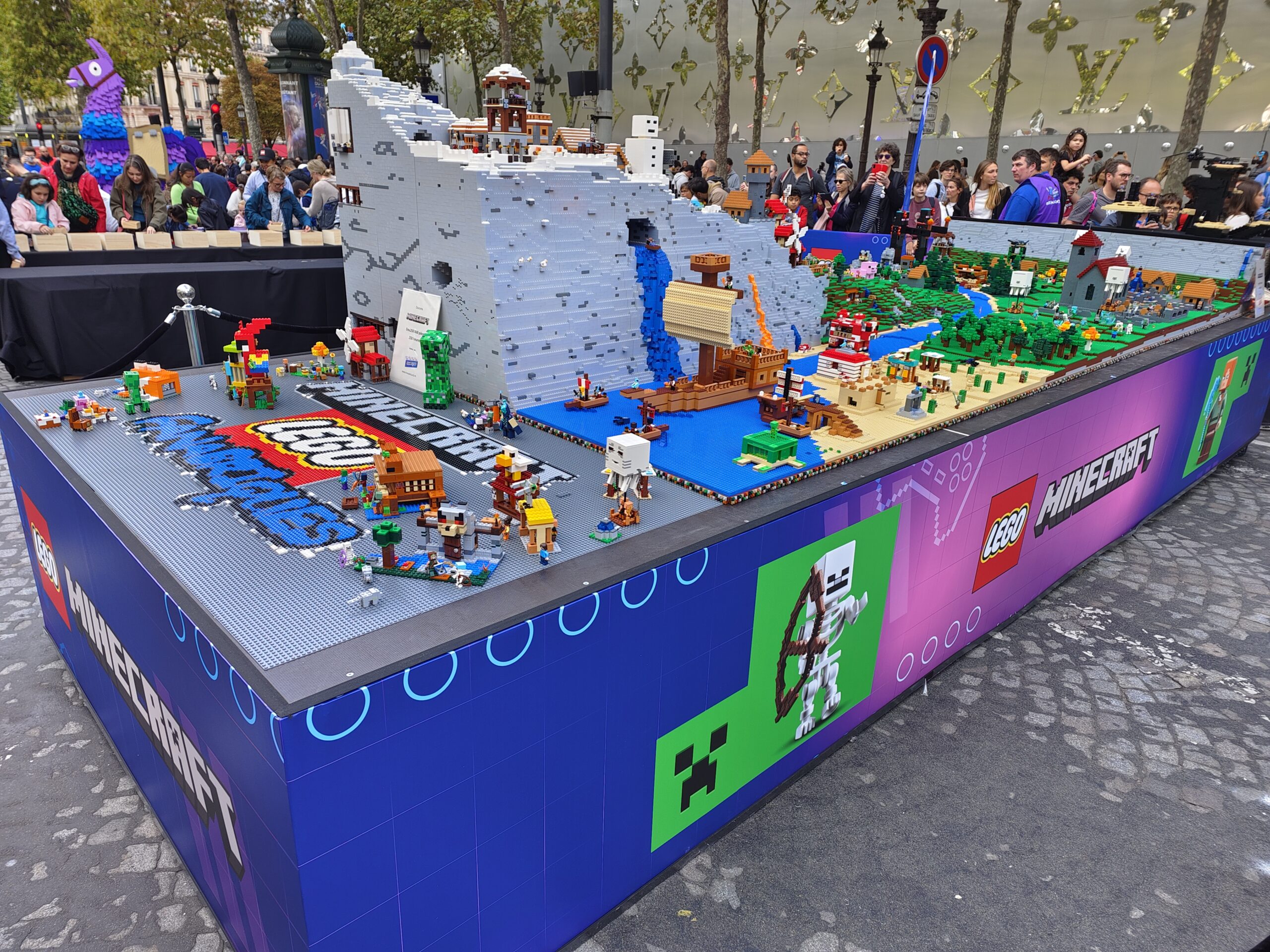 A côté de la zone réservée aux joueurs, une zone publique permettait de découvrir des constructions géantes autour de multiples univers : Paris, Notre-Dame, la Tour Eiffel, Minecraft et Fortnite. Je vous laisse apercevoir tout cela dans les images ci-dessous. Les oeuvres massives comprenaient entre 60 000 et 300 000 briques LEGO.