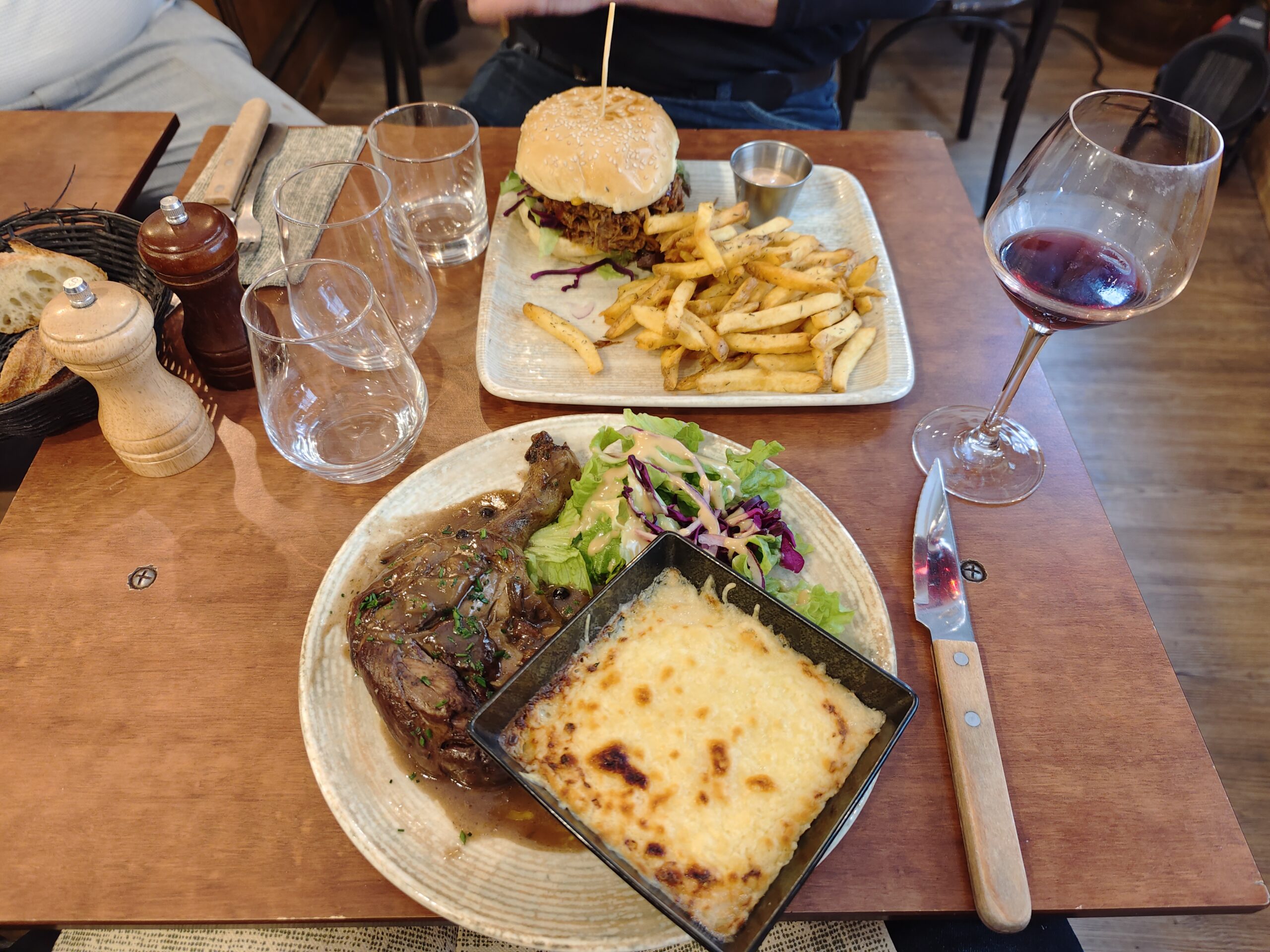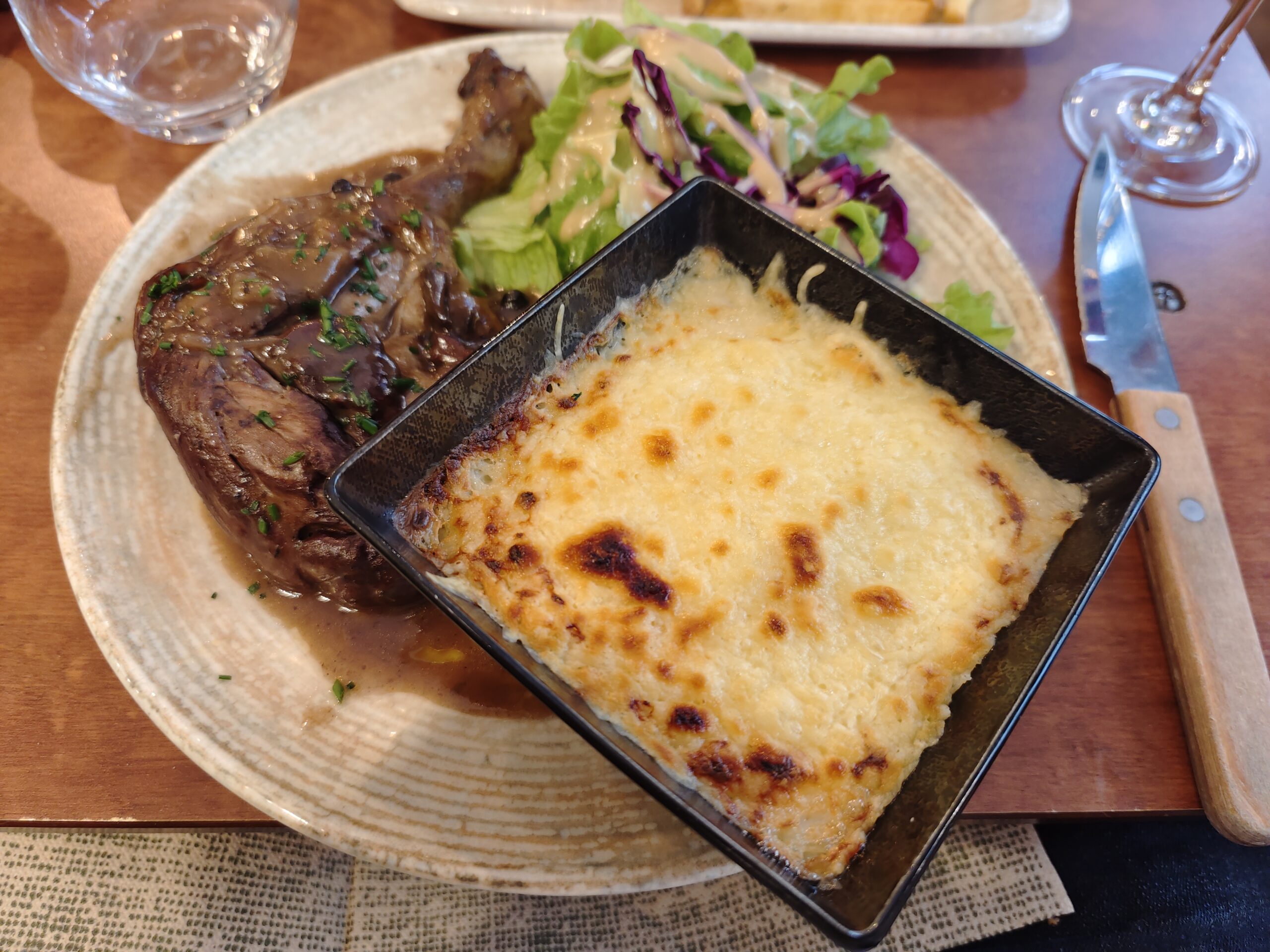 Après cela, mes papilles se sont portées sur la nouveauté de la maison : la cuisse de canard bourguignonne (20.90€). Attention, elle s’accompagne d’un gratin de chou fleur. Pour ma part j’aime cela, mais je peux comprendre que ça soit une proposition d’accompagnement moins populaire. On retrouve une viande fondante qui se décroche de l’os sans aucun effort. C’est une assiette où vous en aurez pour votre argent. On reprend l’héritage du boeuf bourguignon pour adapter ce mode de cuisson à la cuisse de canard. Le résultat est très clairement à la hauteur. C’est savoureux et en tant que toulousain d’origine, ça me rend toujours heureux de manger du canard.