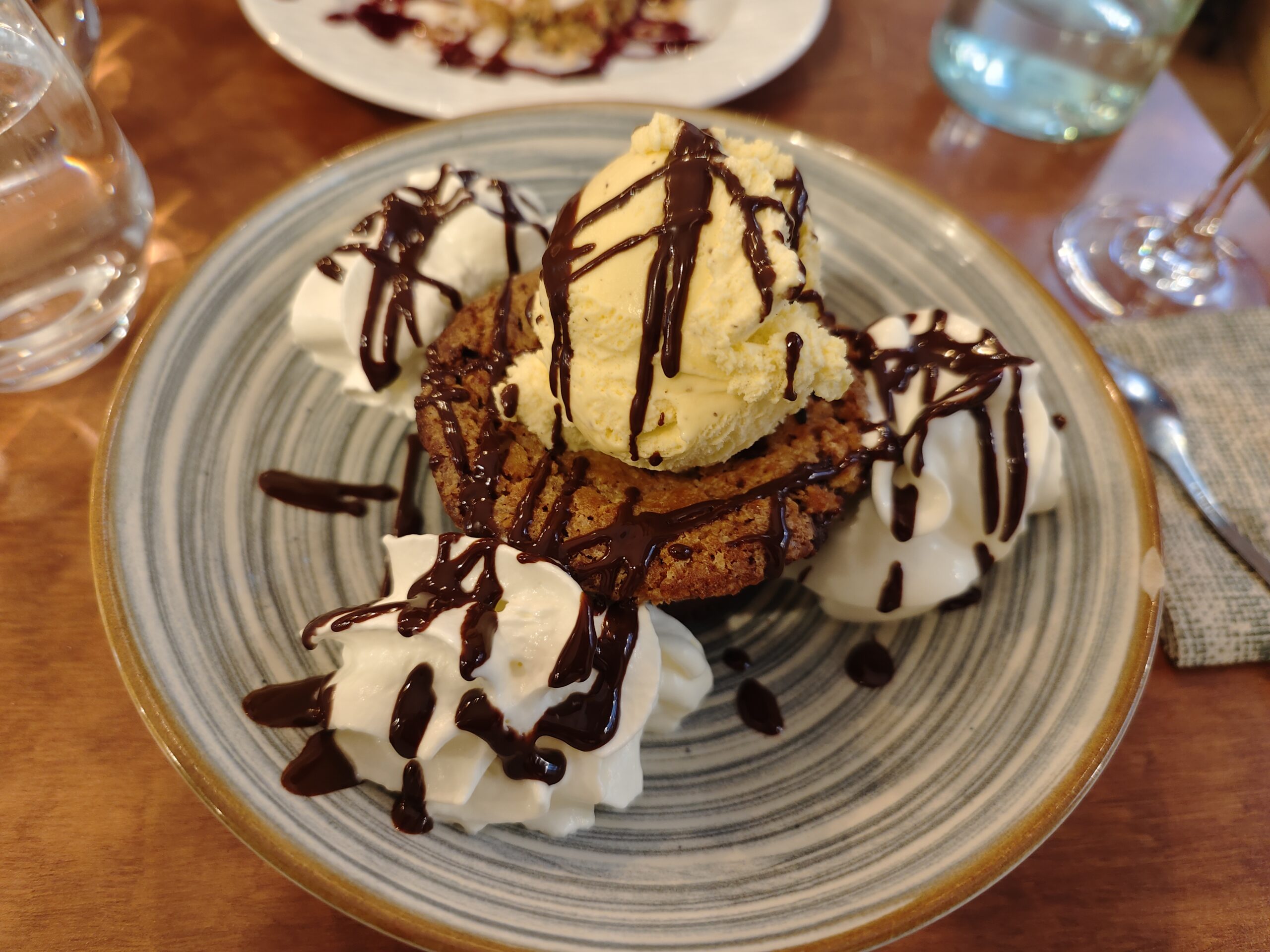 Avec un ventre déjà bien calé, j’ai quand même eu le courage de finir sur une note sucrée avec le browkie et sa glace vanille (10.90€). Un mélange chaud froid qui fonctionne toujours avec une base très gourmande. Etant donné que le produit était, il me semble, un peu réchauffé, on avait une offre vraiment fondante au coeur du brownie.