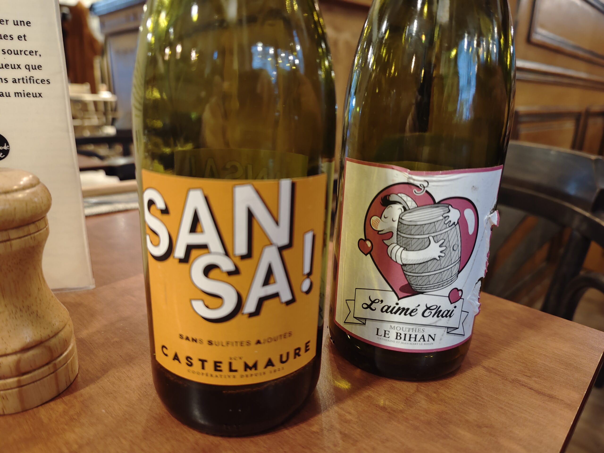 Etant donné que l’adresse propose aussi plusieurs bouteilles de vin, n’hésitez pas à demander conseil aux tenanciers. Voici ce que j’ai pu boire pour ma part avec une préférence pour l’Aimé Chai de mon côté, facile à boire.
