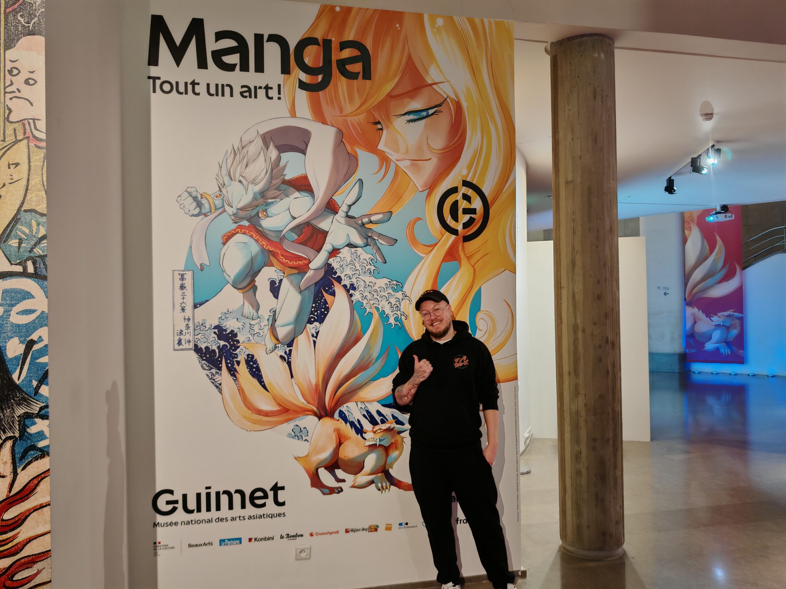 On retrouve le mangaka français Reno Lemaire derrière la réalisation de l’affiche de l’exposition.