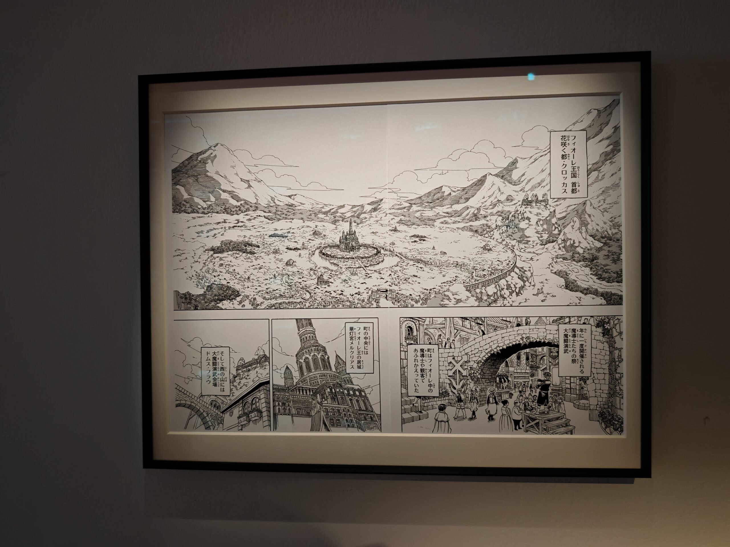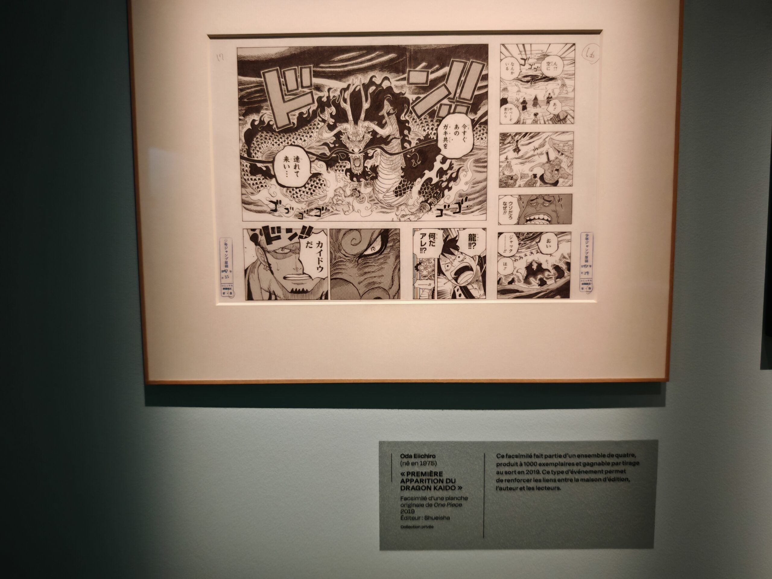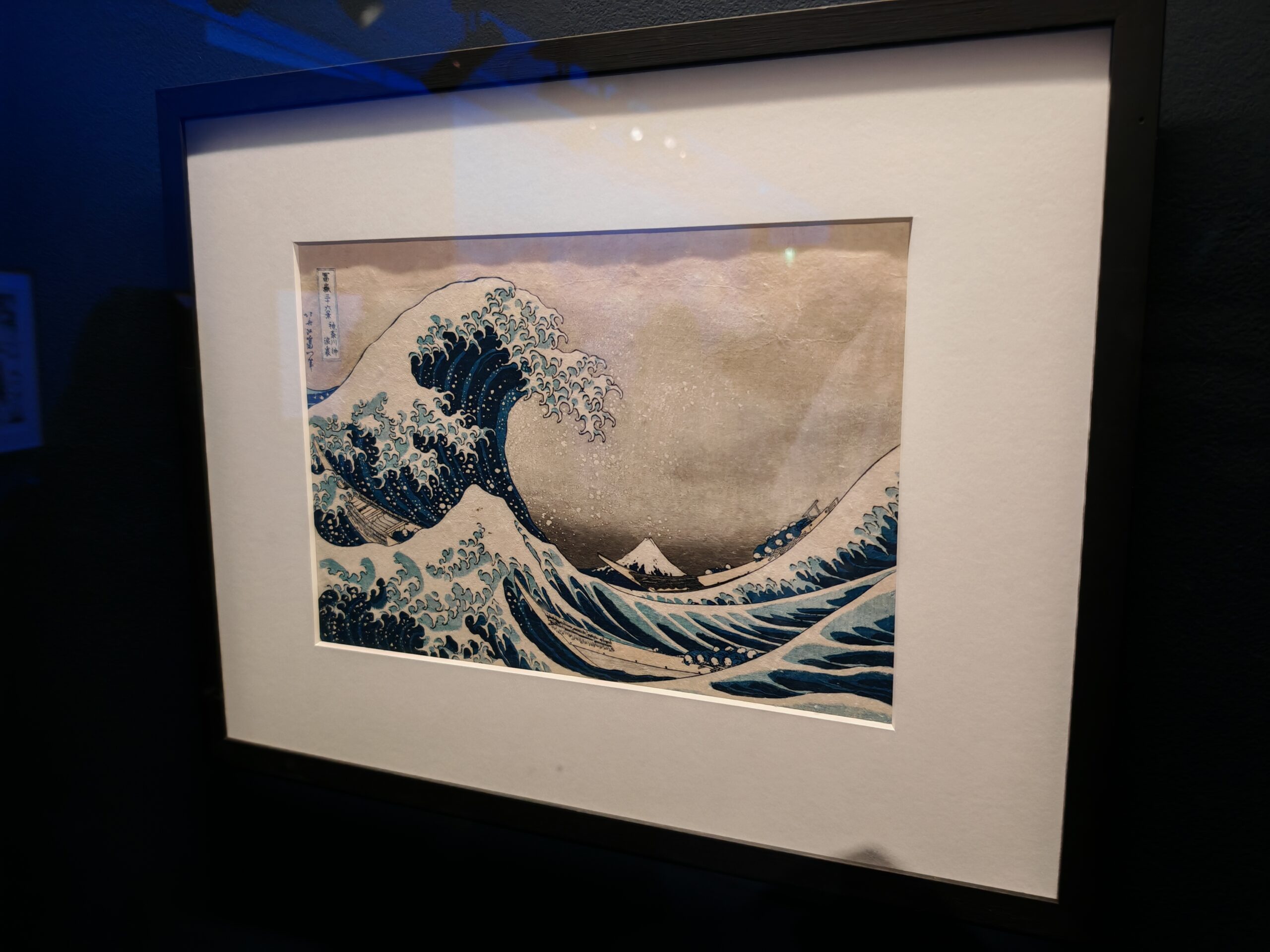 Une salle est dédiée à la mythique estampe Sous la grande vague au large de Kanagawa de Kanagawa d’Hokusai. A ses côtés, on retrouve diverses pages de BD autour de l’univers de la vague. Au centre de la pièce, on profite d’une sublime robe aux couleurs de la mythique oeuvre d’art.