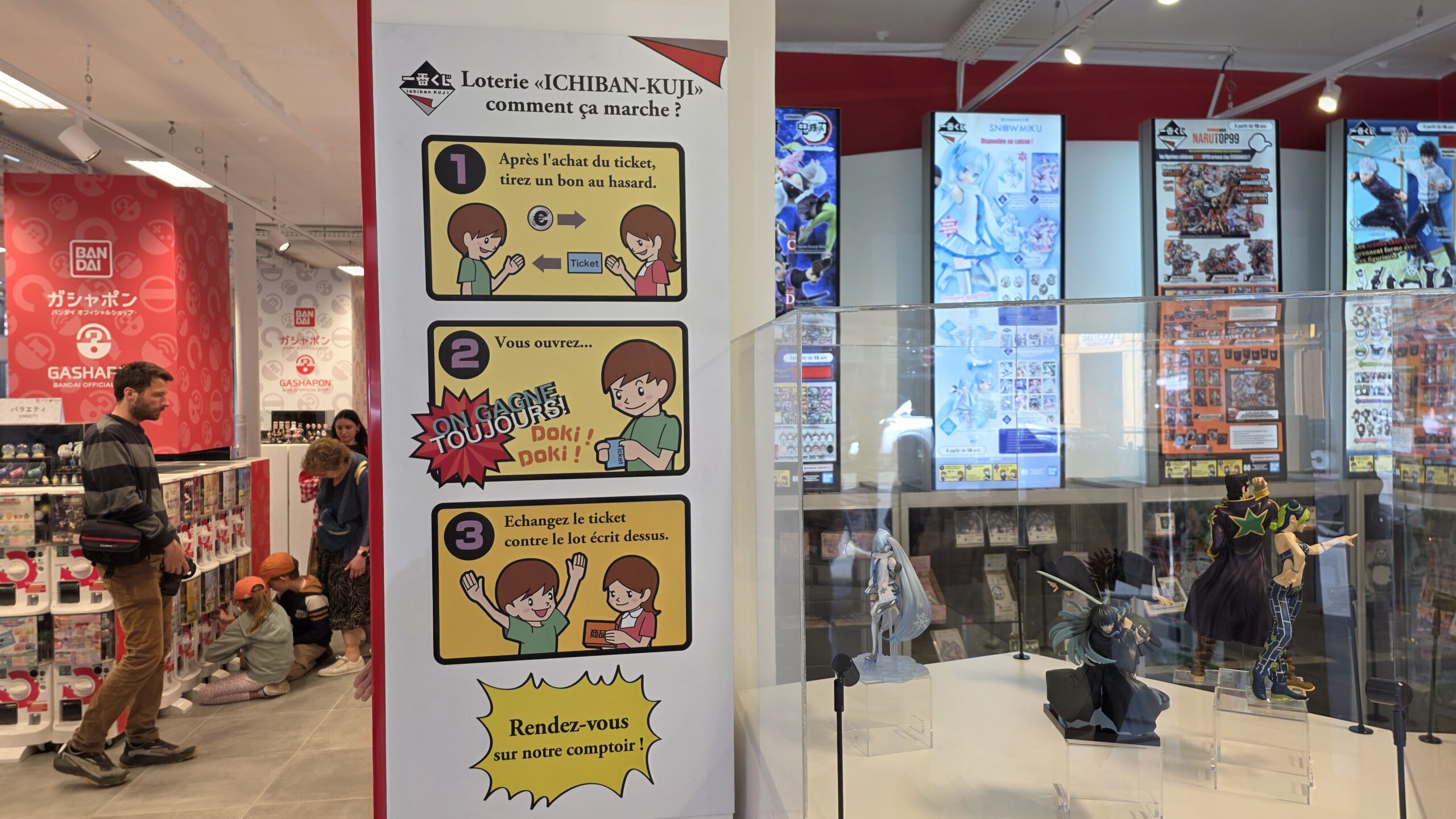 Les amoureux de lots mystères peuvent aussi se pencher du côté des loteries Ichibankuji. Pour un prix de 15€ le ticket ou 12€ par lot de 3, tentez de remporter des lots plus ou moins précieux. De plus, si vous êtes le dernier acheteur, remportez un lot encore plus fabuleux. Ceux-ci sont très souvent des figurines comme vous pouvez le voir ci-dessous.
