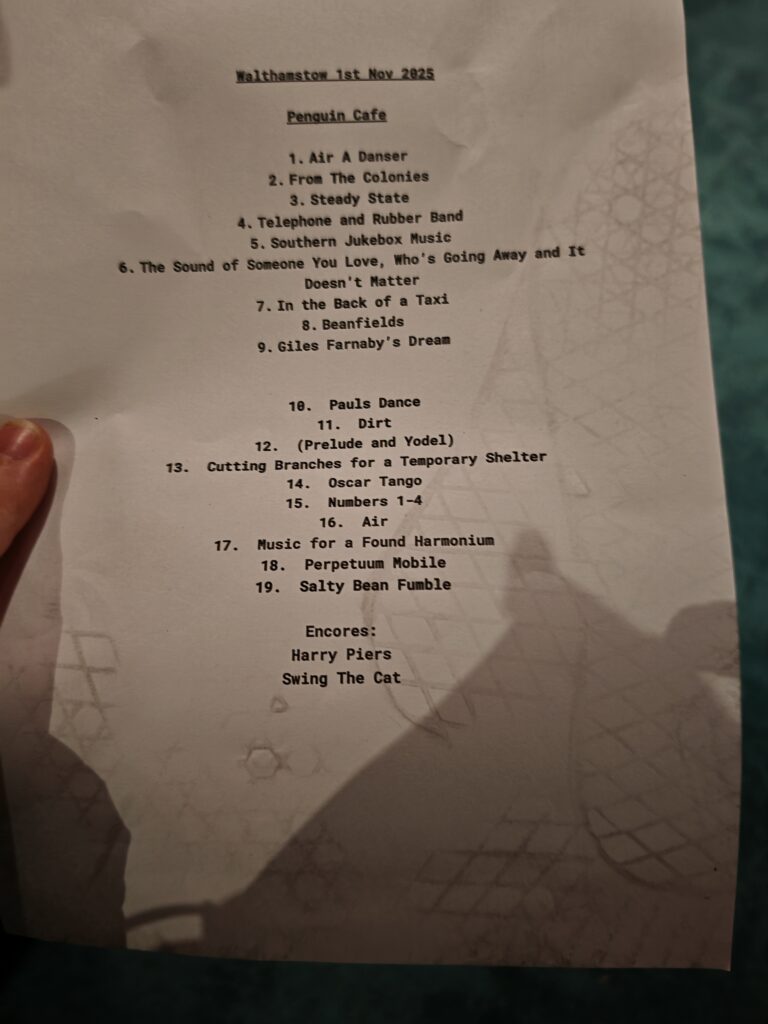 N’ayant jamais eu la chance de voir le groupe en France, je n’ai aucun regret d’avoir traversé la Manche pour voir le Penguin Cafe sur ses terres d’origine. J’étais sur un petit nuage de bonheur.