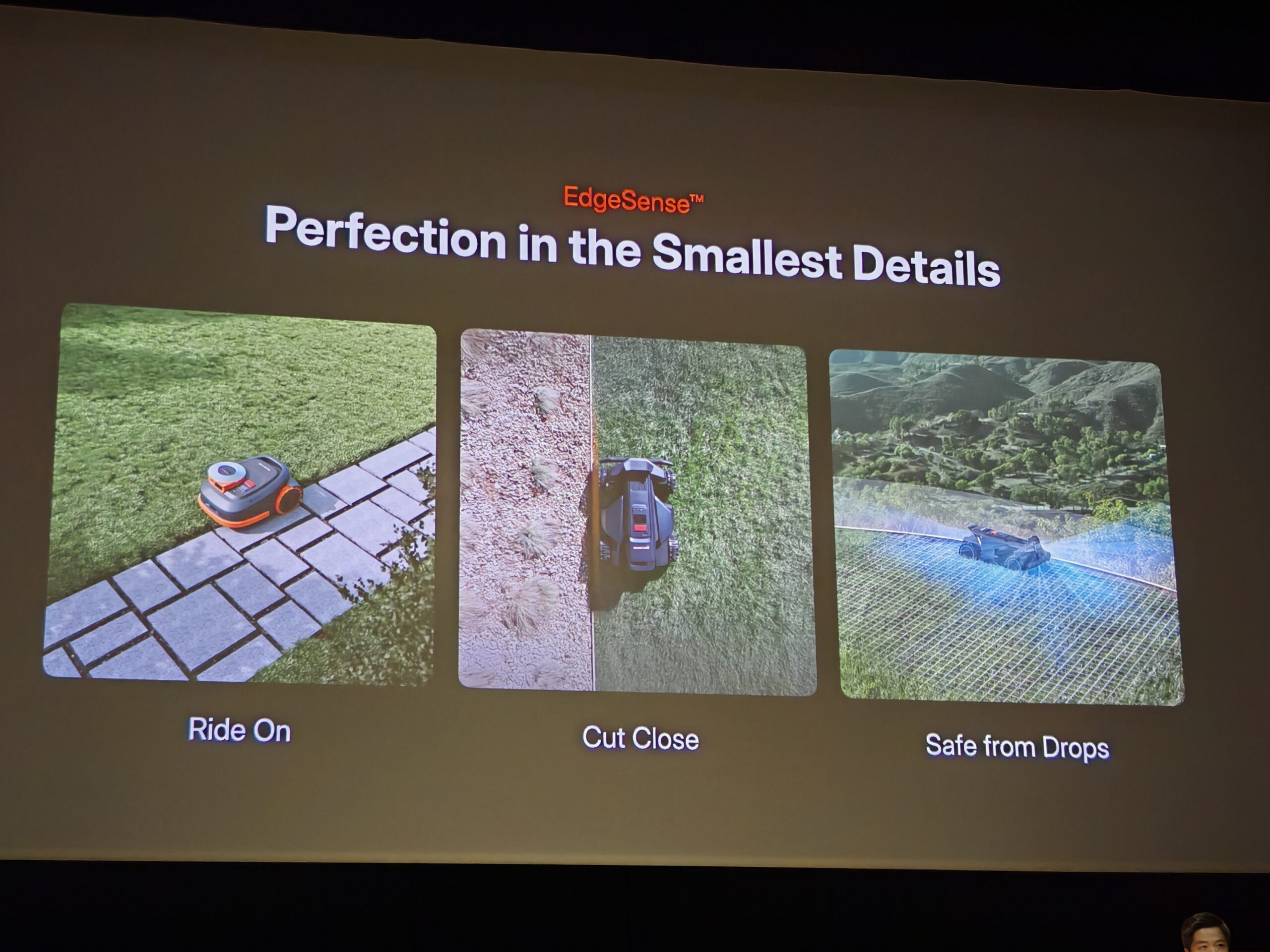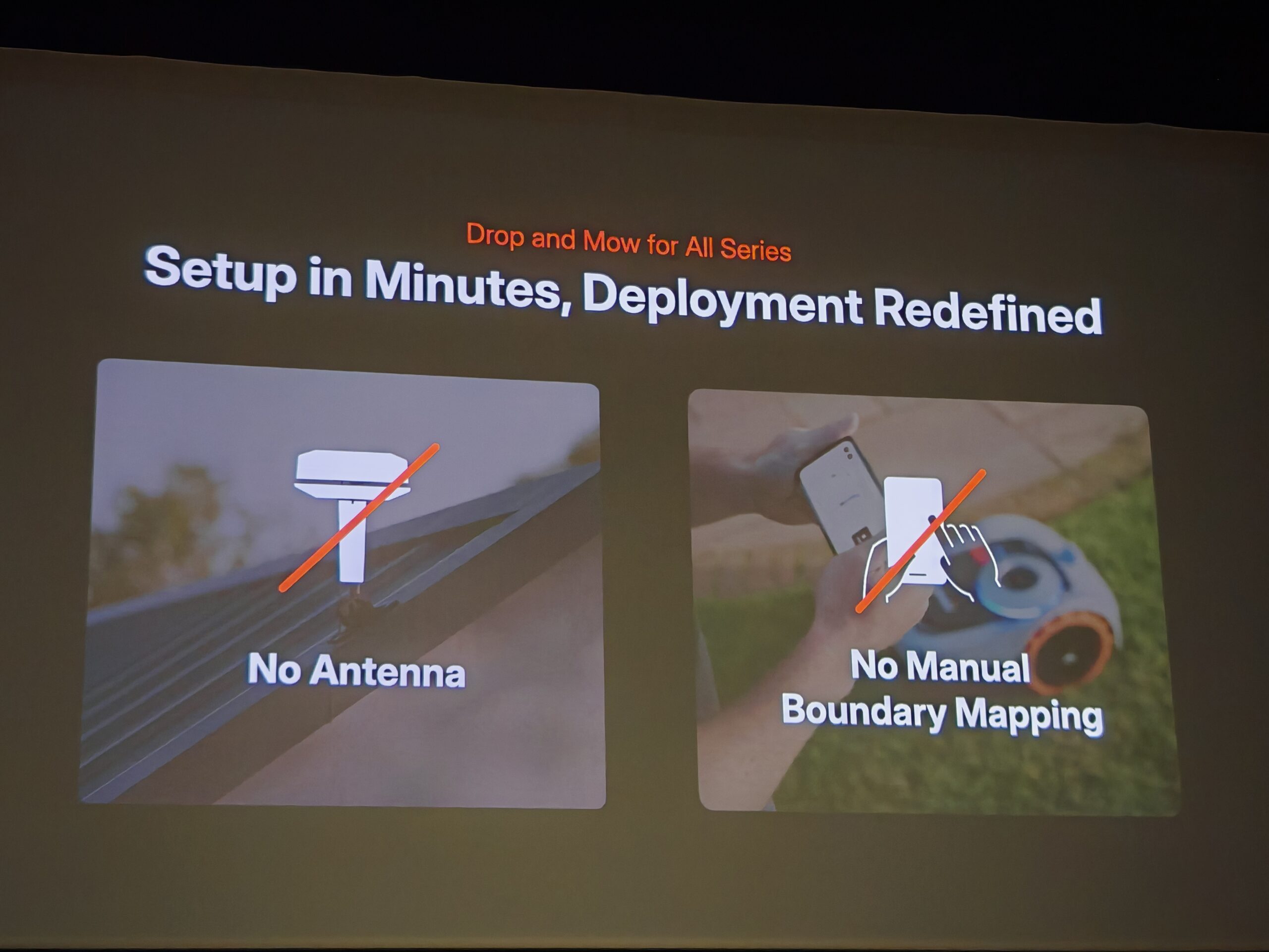 D’entrée de jeu, le PDG de la marque chinoise, George Ren, a annoncé que l’ensemble du lineup du jour n’aurait pas besoin d’antenne. Par le passé avec tous les robots tondeuses que j’ai testés, il y avait toujours une antenne reliée à la station de charge et qui devait être positionnée de manière optimale pour capter les satellites. Et ce n’était vraiment pas toujours facile.