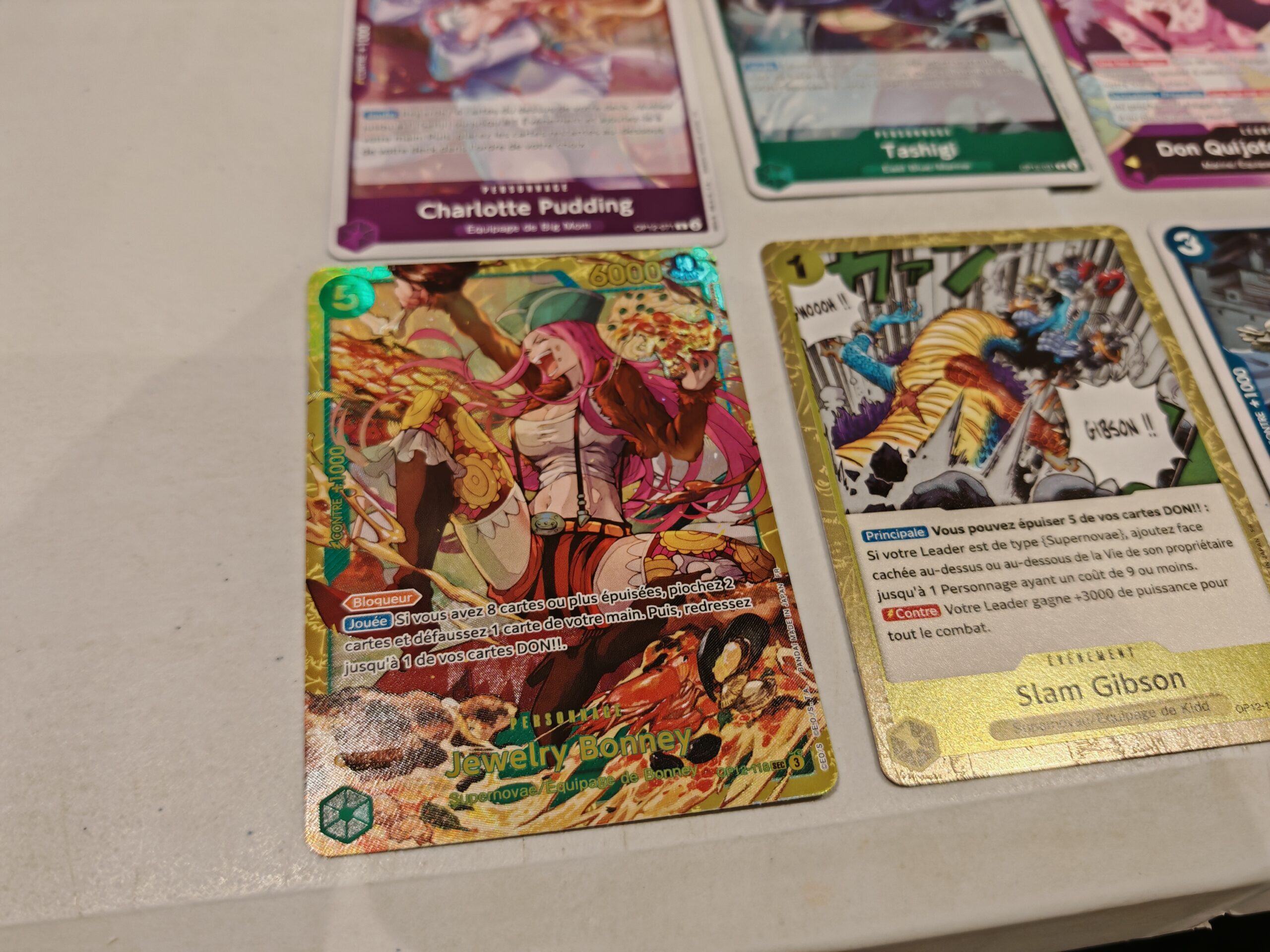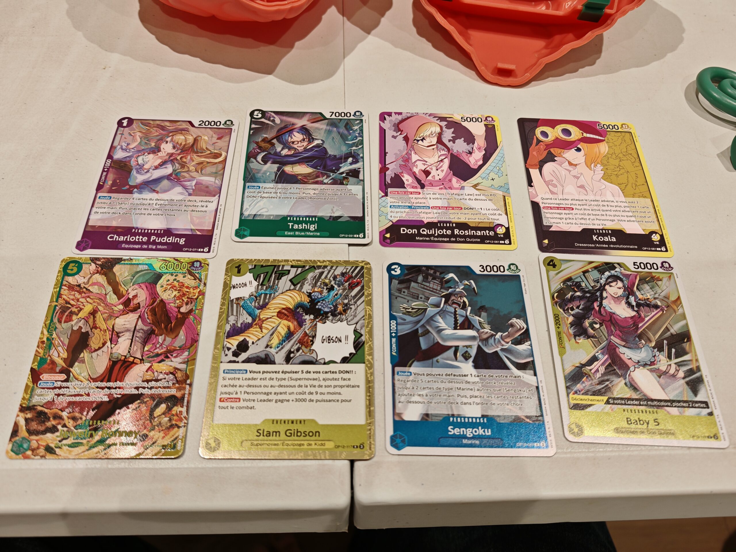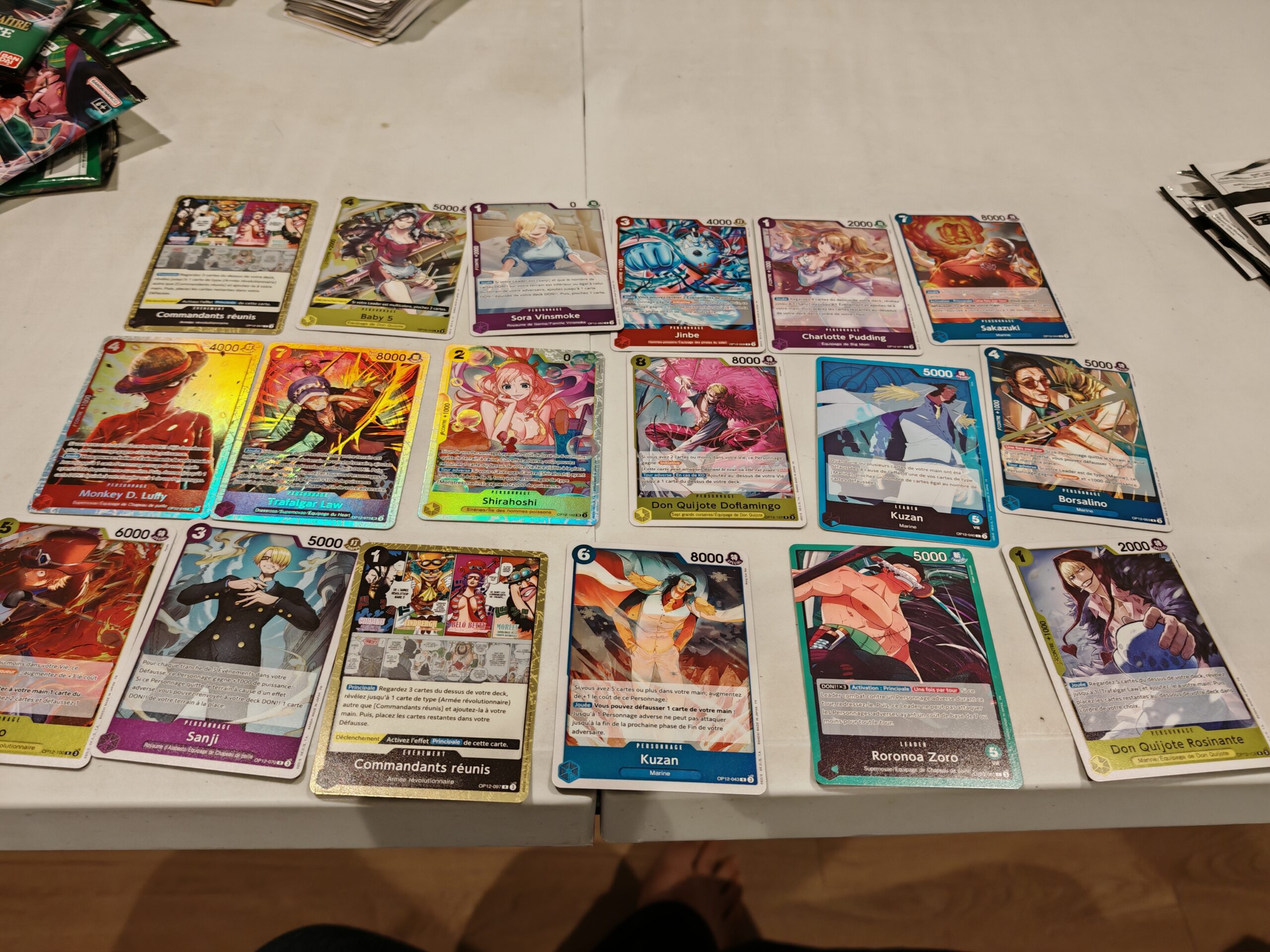 Du côté des cartes marquantes, on retrouve 3 super rare avec Luffy, Law et Shirahoshi. Chaque carte vaut cependant moins d’un euro sur Cardmarket.