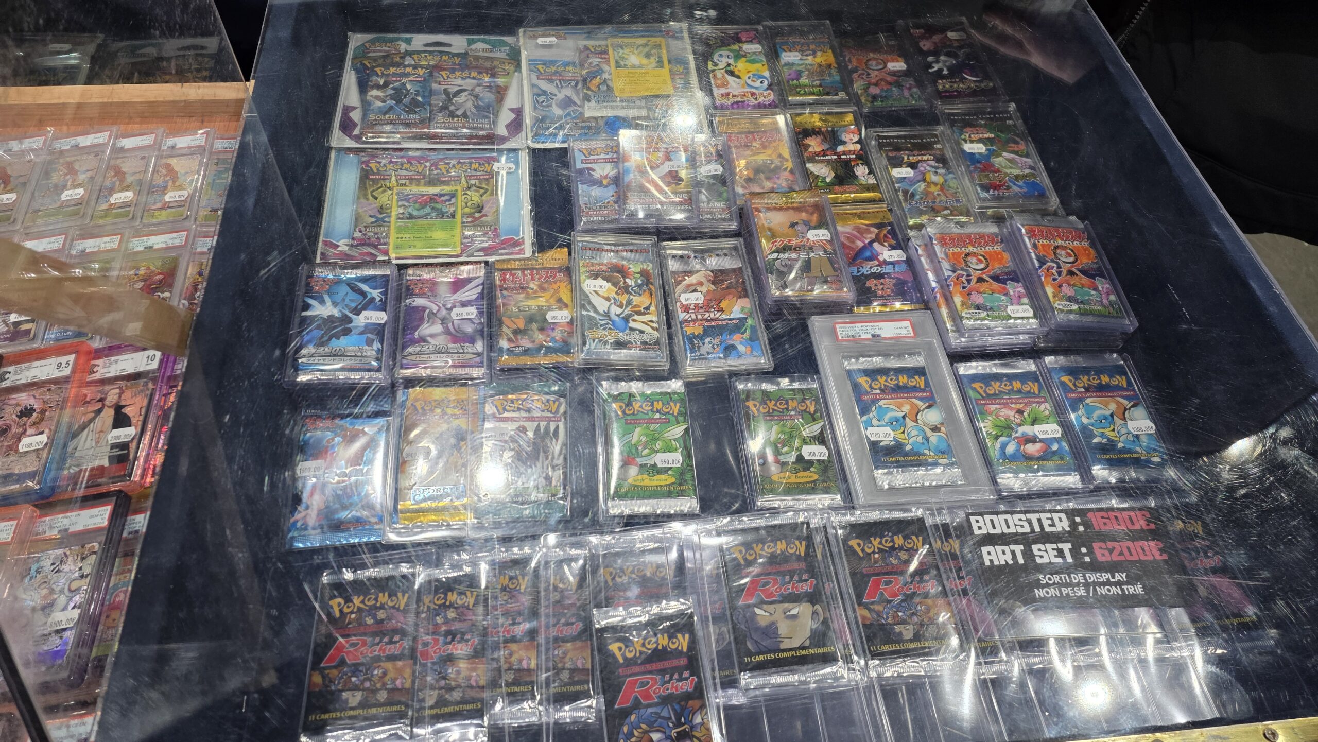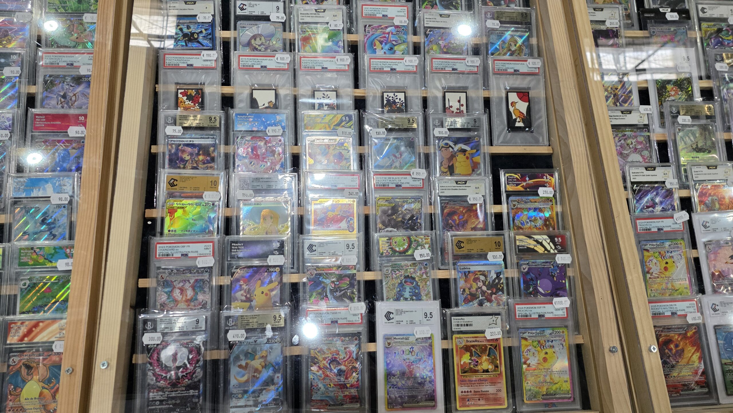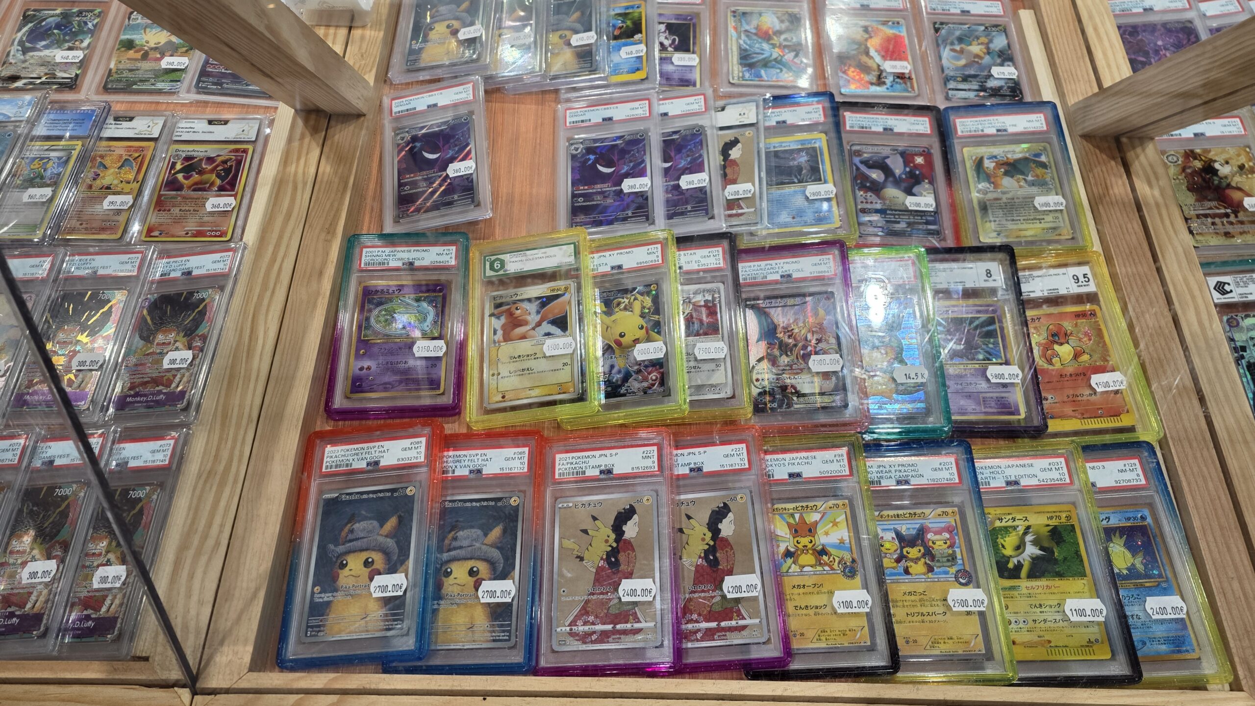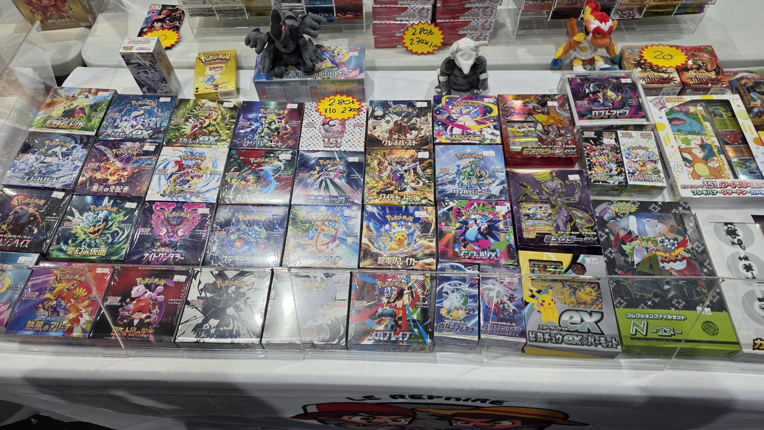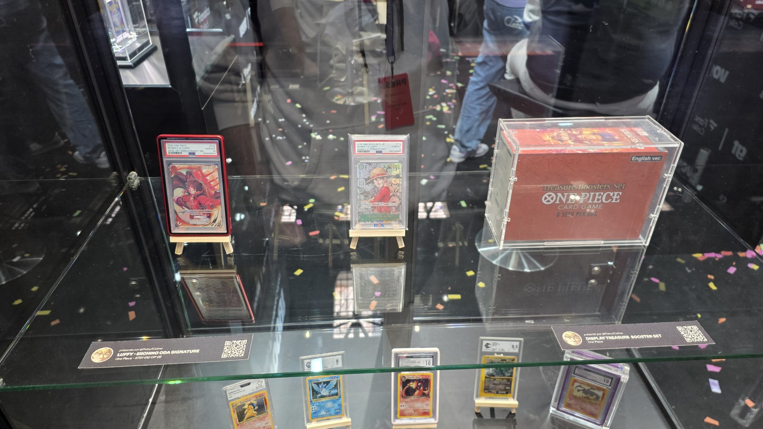 Le site annonce une centaine d’exposants mais l’écrasante majorité était des boutiques d’achat et vente de vos collections de cartes. Parmi les licences phares, Pokémon était sans grande surprise le grand leader. Mais les TCG One Piece, Magic et Lorcana n’étaient pas en reste. Je n’ai évidemment pas pris en photo chaque vitrine mais ci-dessous vous avez un bon aperçu de ce à quoi ressemblaient de nombreux stands.