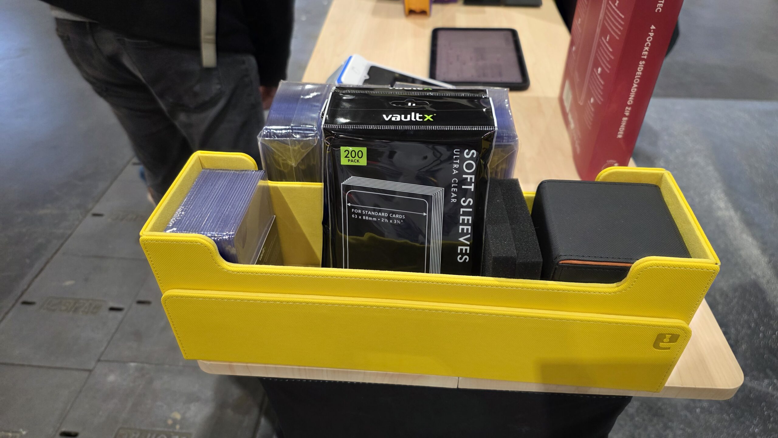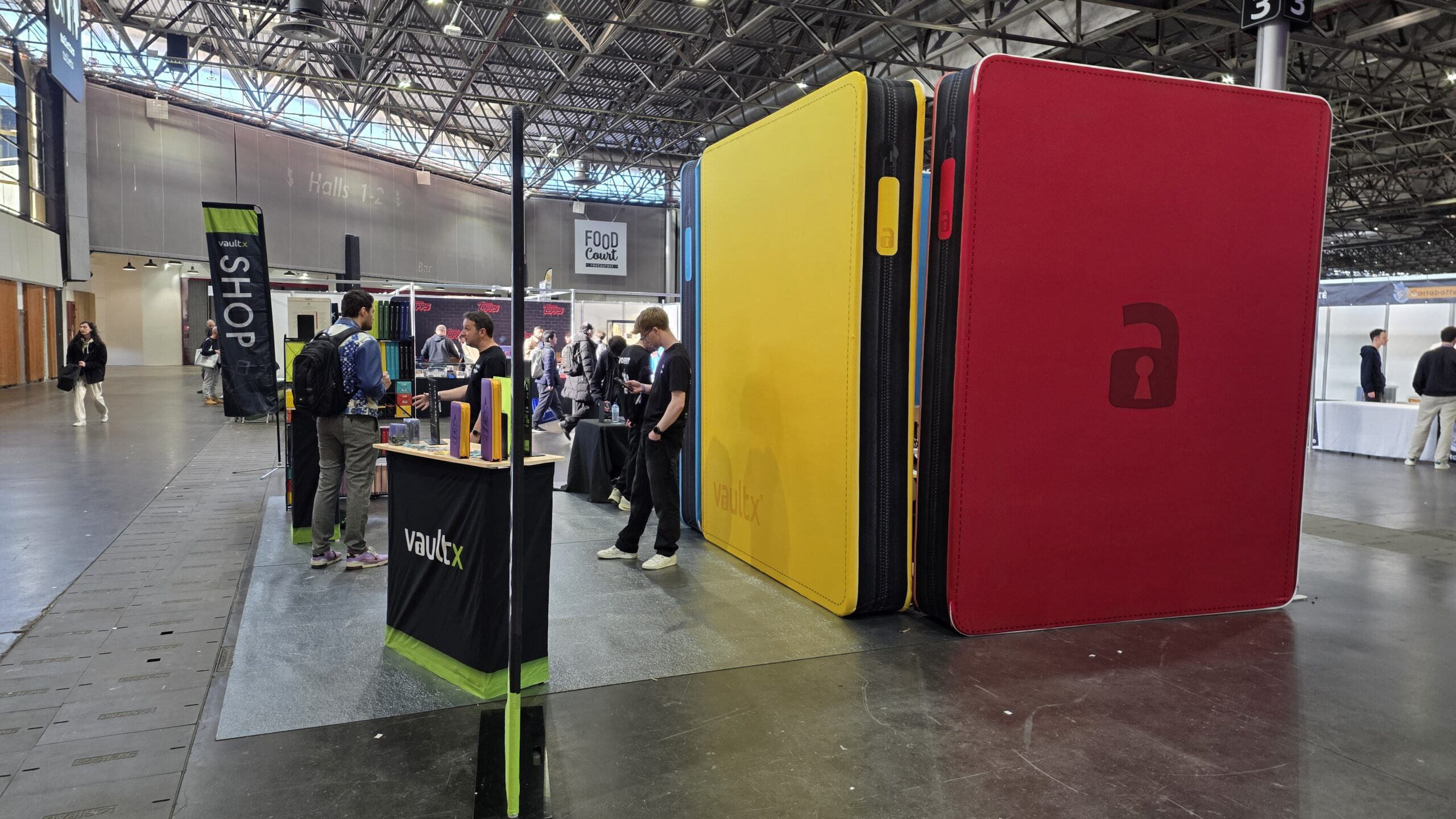 A noter que parmi les marques présentes, on retrouve aussi de nombreux accessoiristes qui permettent de protéger vos bouts de cartons préférés. J’ai ainsi eu plaisir de retrouver VaultX que j’ai déjà croisé par le passé. Coup de coeur pour la grande boîte de rangement pouvant contenir jusqu’à 1 000 cartes (36.99€ mais profitez de 10% de réduction avec mon code ghrenassia ou en cliquant simplement sur le lien, le code sera appliqué automatiquement). J’ai aussi aimé les deckboxes pouvant contenir jusqu’à 200 cartes (15.30€ avec mon code promo). Leur stand était en tout cas bien stylé avec les classeurs géants de 4m.