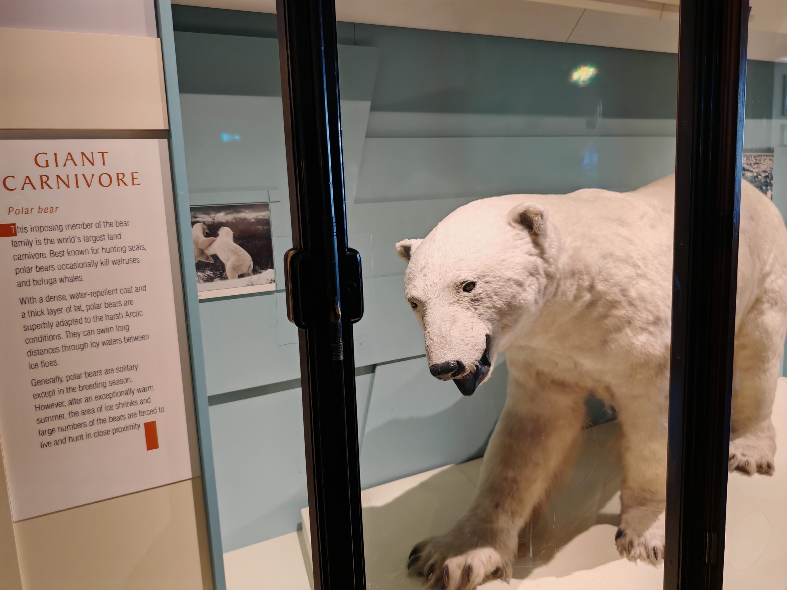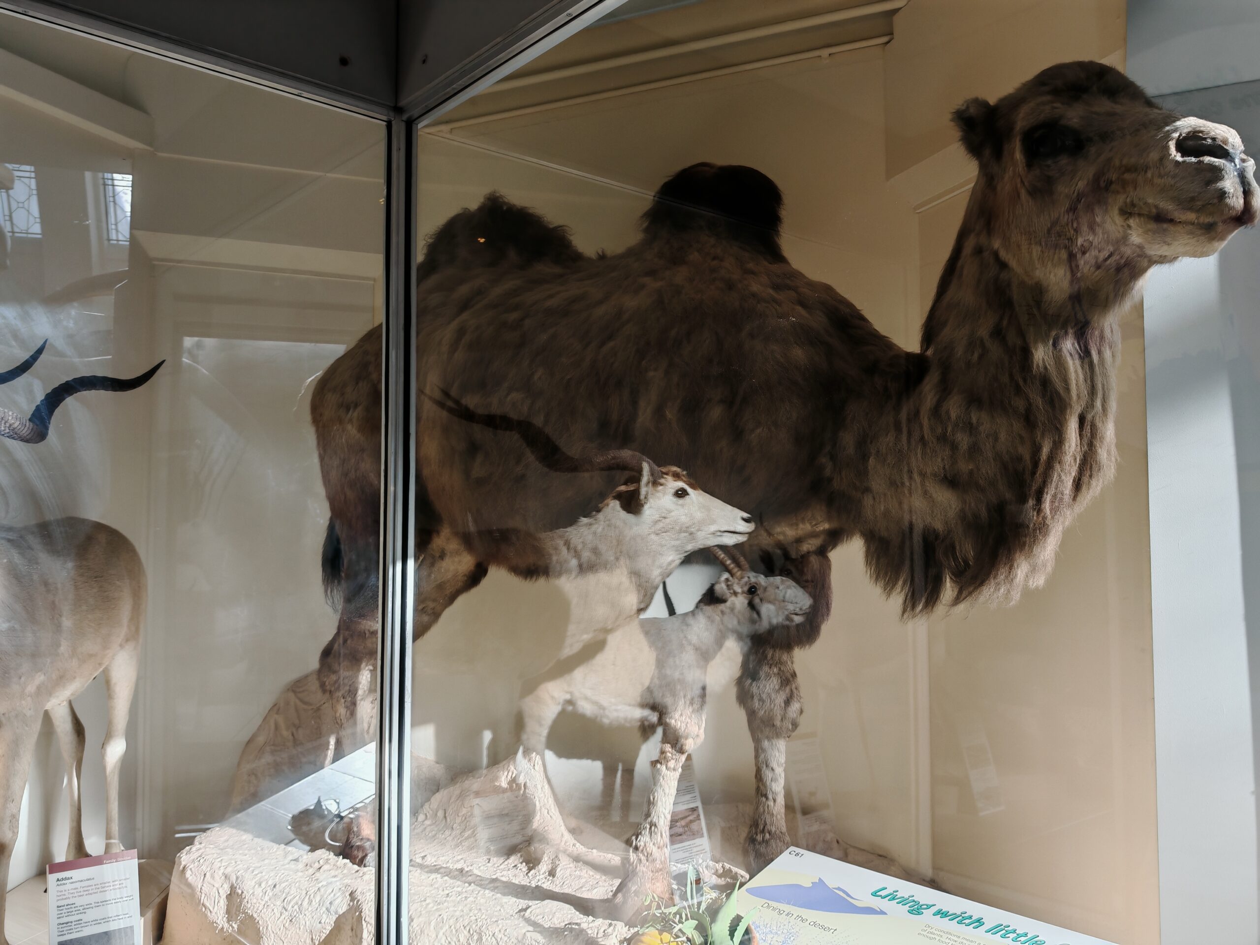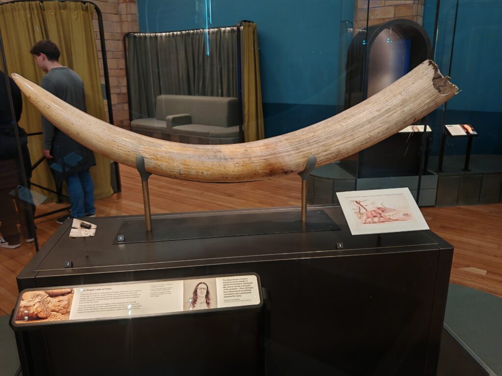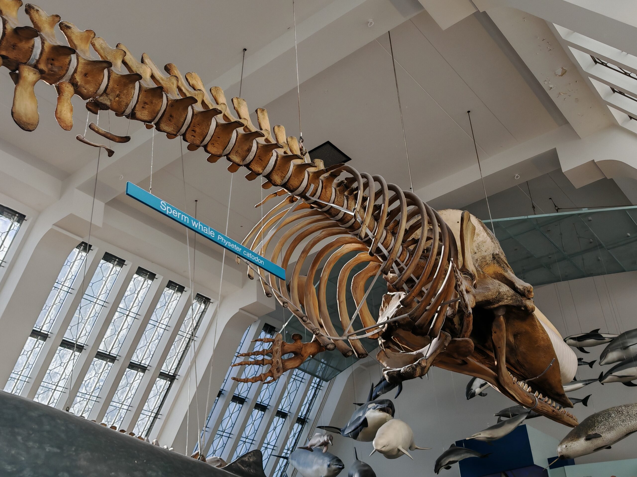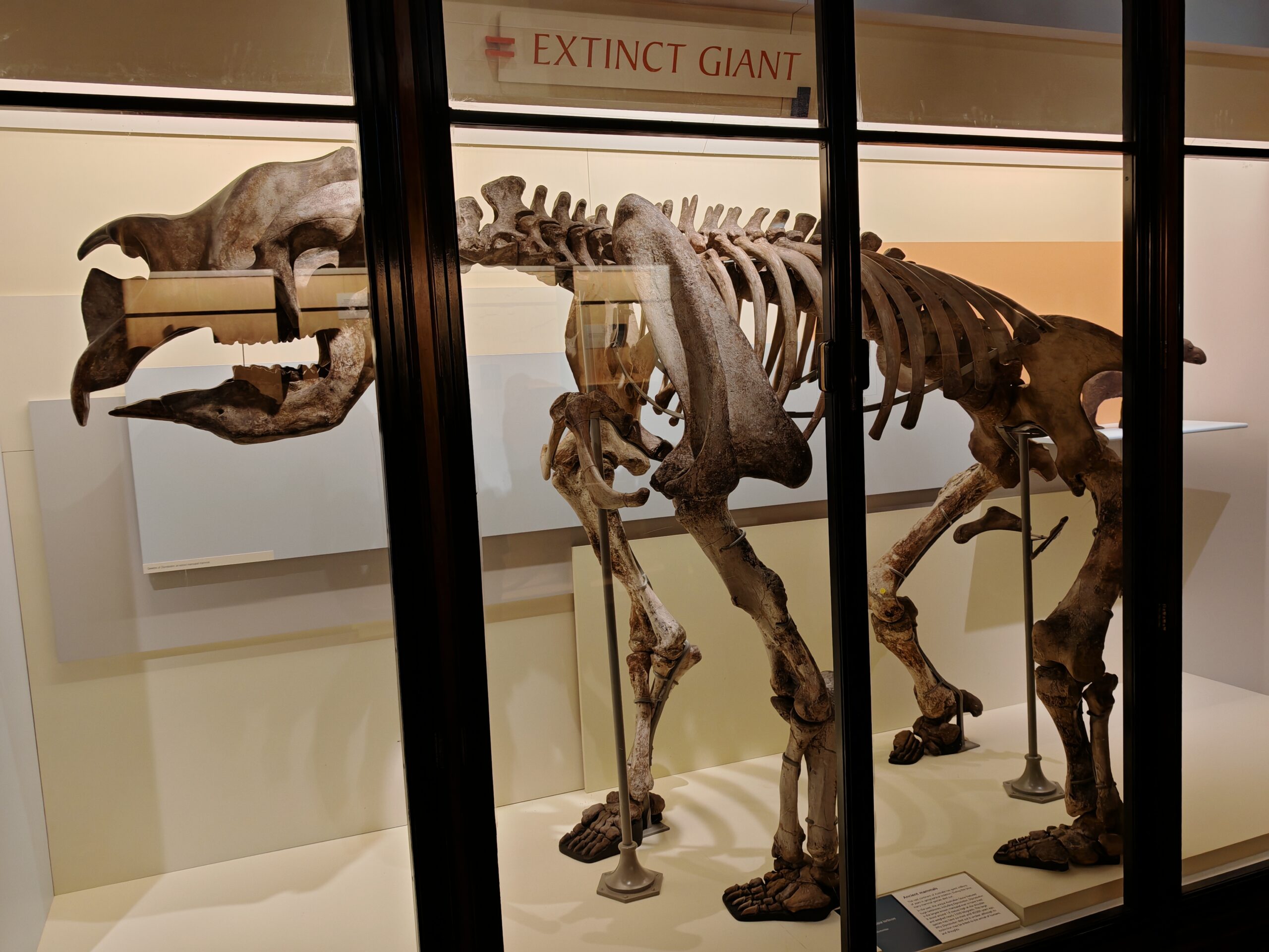 A peine entré, vous retrouvez un squelette d’une taille exceptionnelle au plafond et qui va vous couper le souffle. Plusieurs autres squelettes de girafes, mammouths et autres animaux sont présents dans les vitrines alentours.