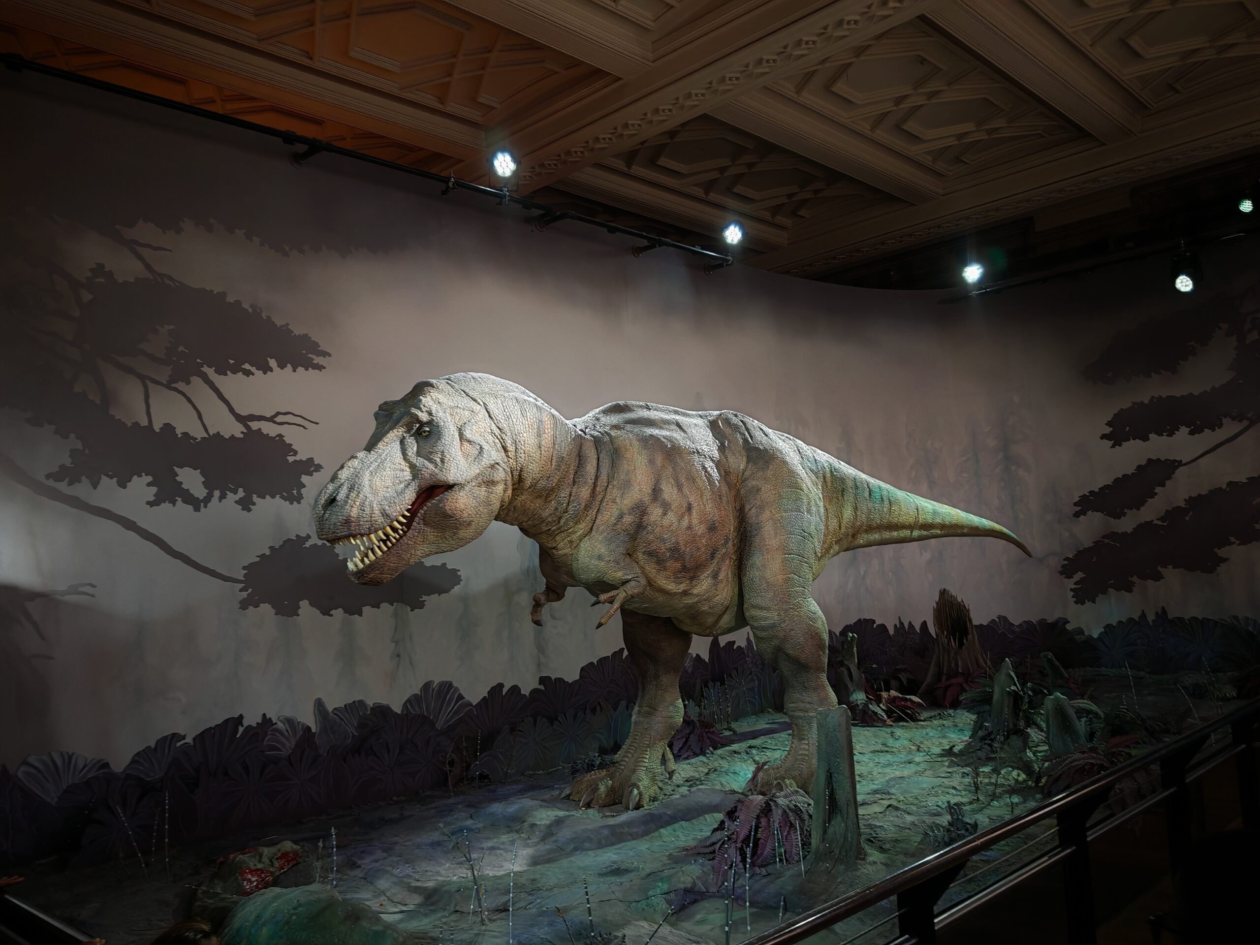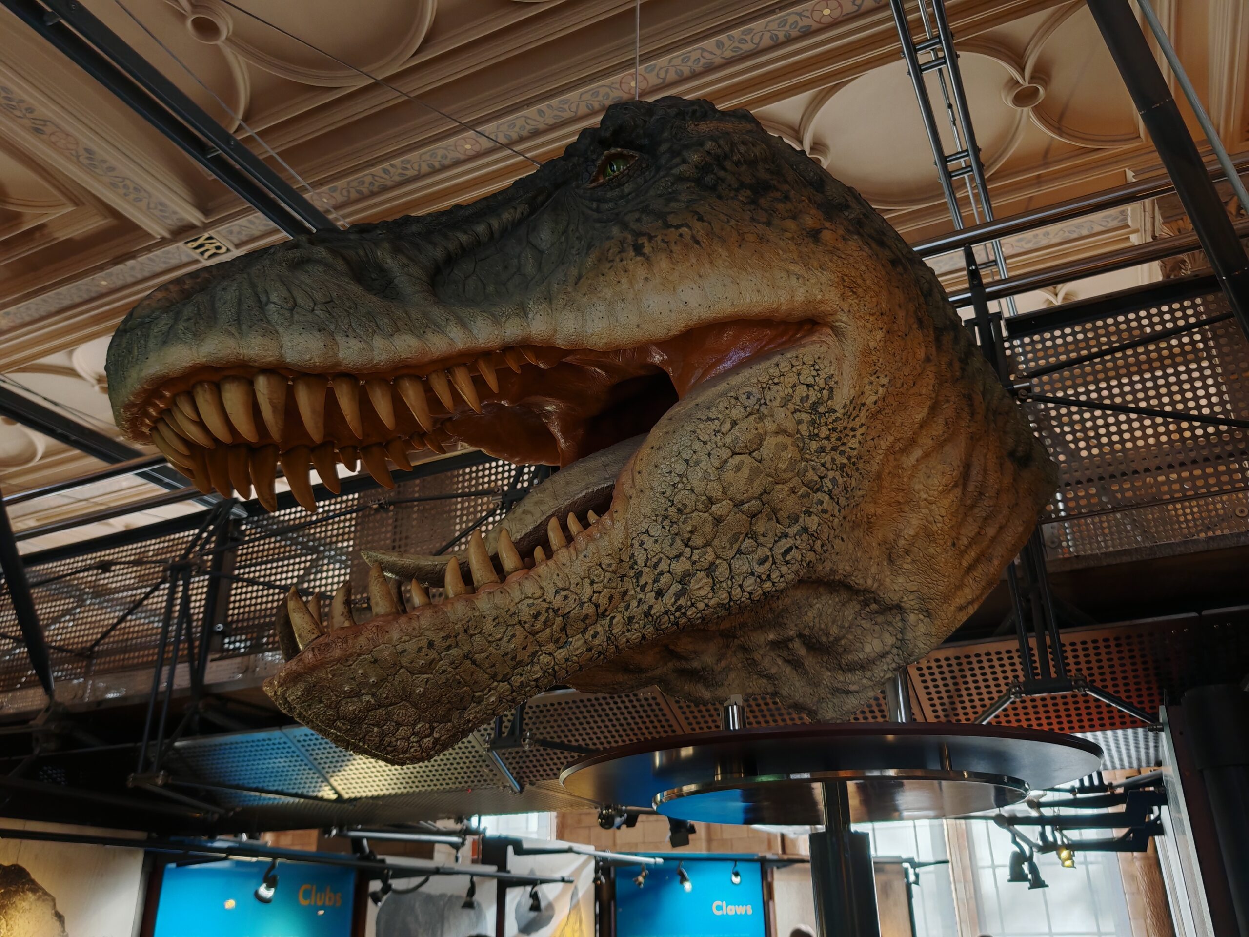 Une petite alcove (accessible uniquement si on le souhaite pour éviter les crises de panique des gamins) présente un animatronique de T-Rex.