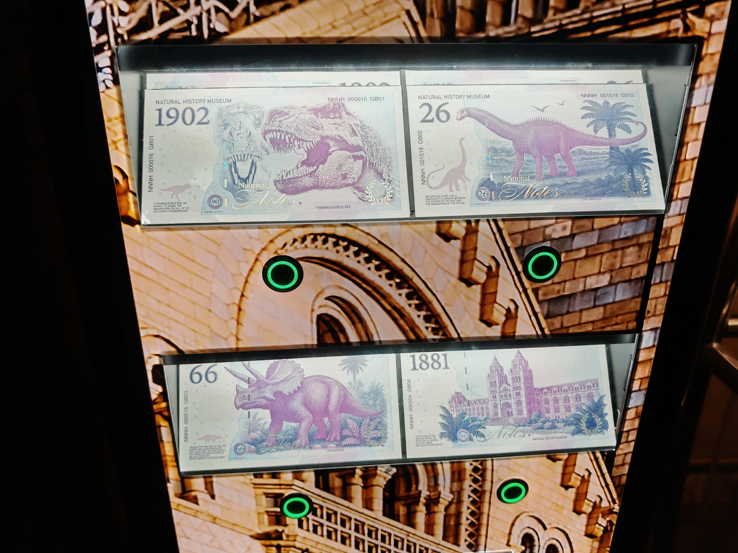 Mention spéciale au distributeur à souvenirs qui propose des billets avec dinosaures. J’étais à deux doigts de craquer. Peut-être une prochaine fois.