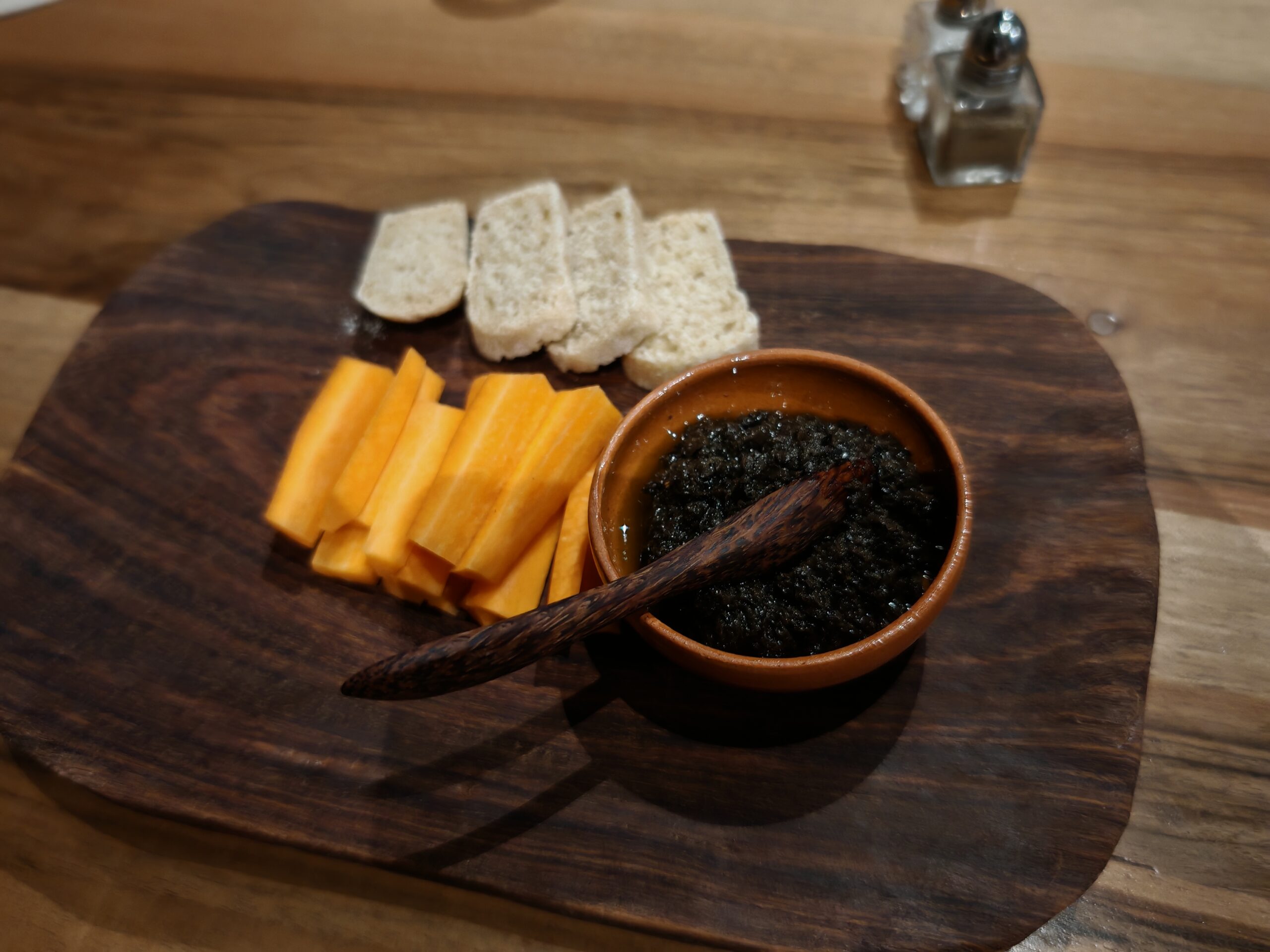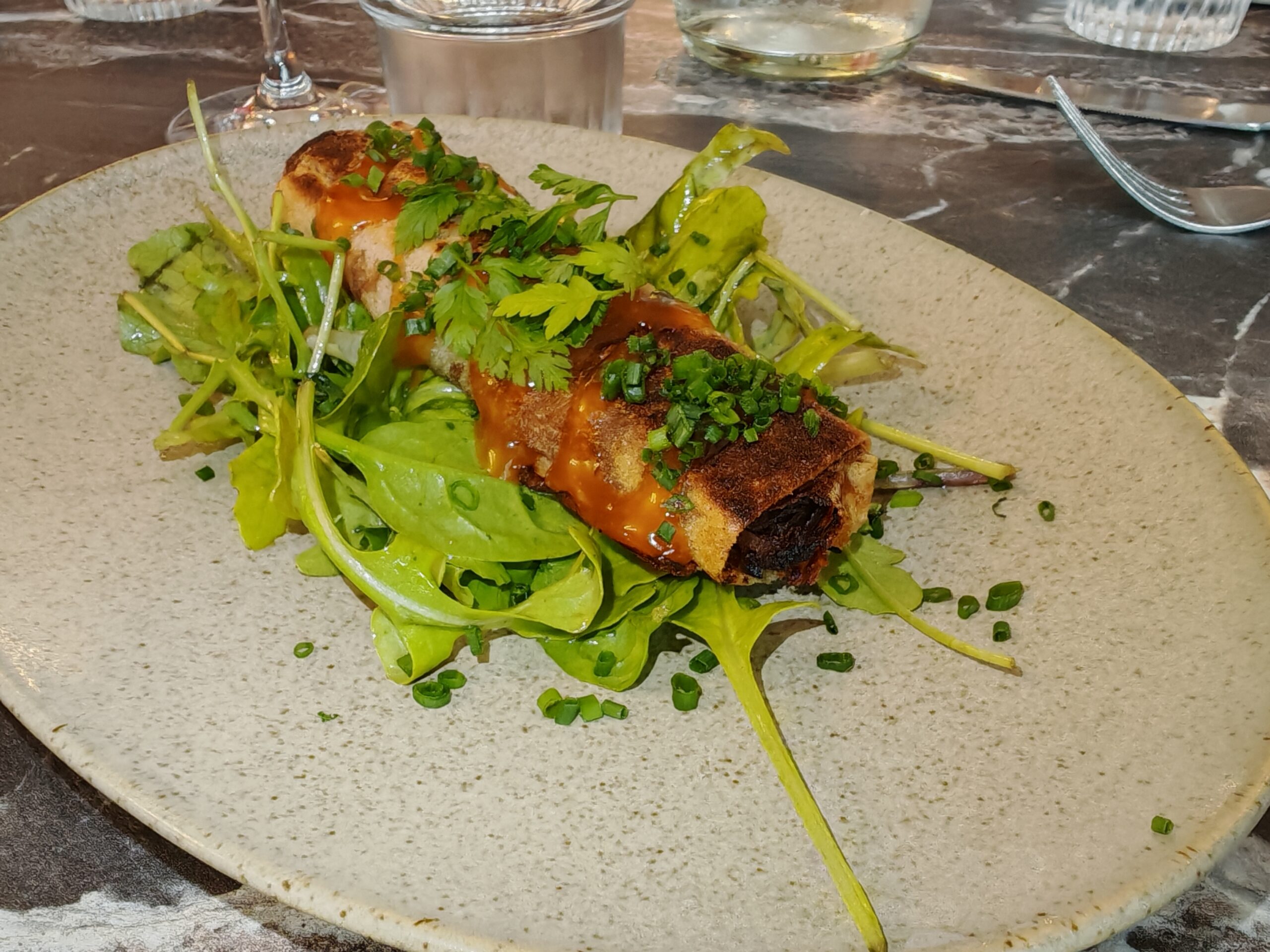 - Salade de betterave tiède, noix, féta, vinaigrette à l’estragon : multiples textures avec des chips de betterave, du fondant et de la fraîcheur. C’était riche en saveurs et petit coup de coeur pour les noix. Une entrée remarquable.