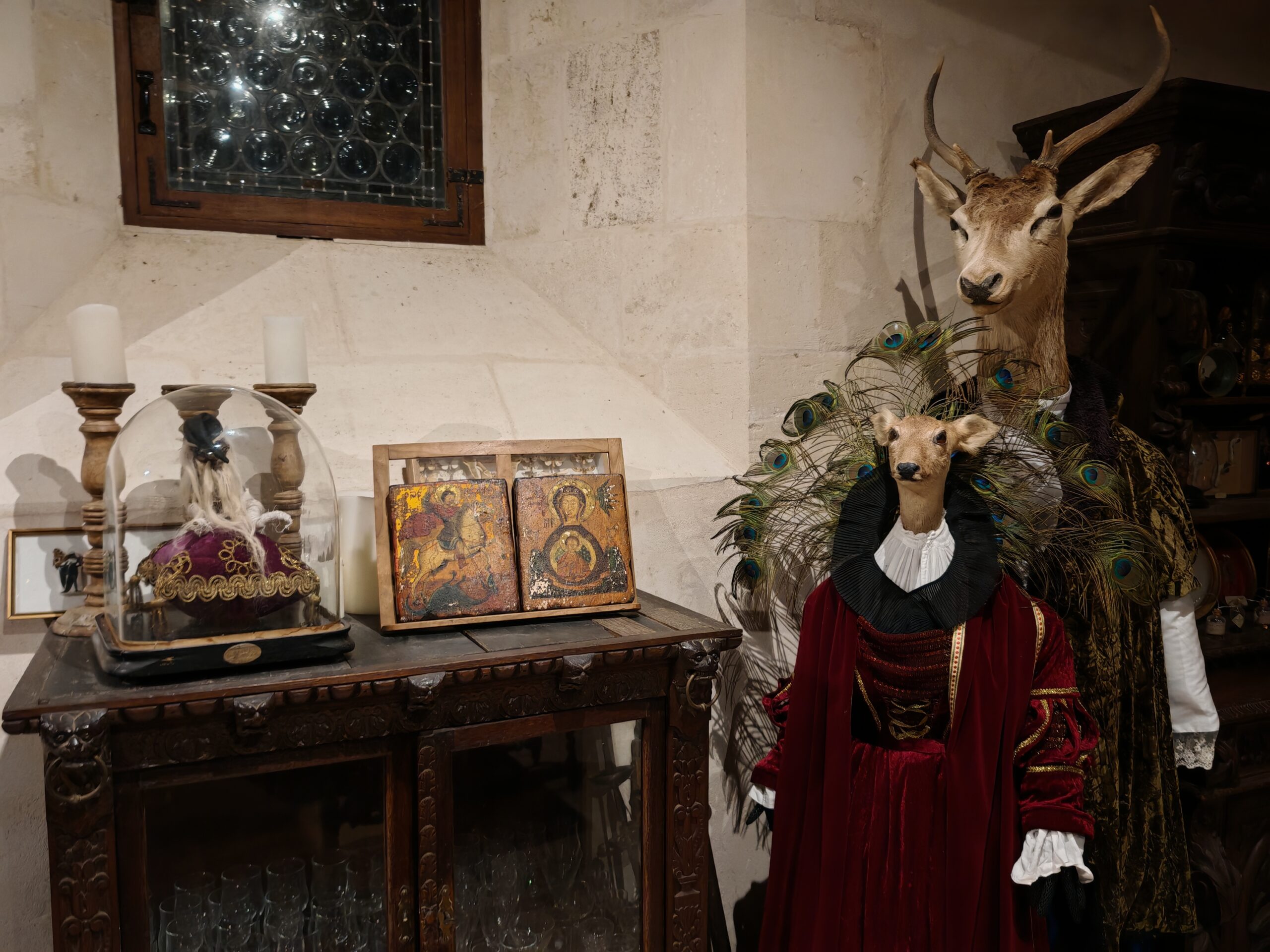 Enfin et surtout, impossible de ne pas mentionner l’aspect cabinet de curiosités du Château de Bois Charmant avec toute la décoration de la salle à manger. Les images parlent d’elles-mêmes.