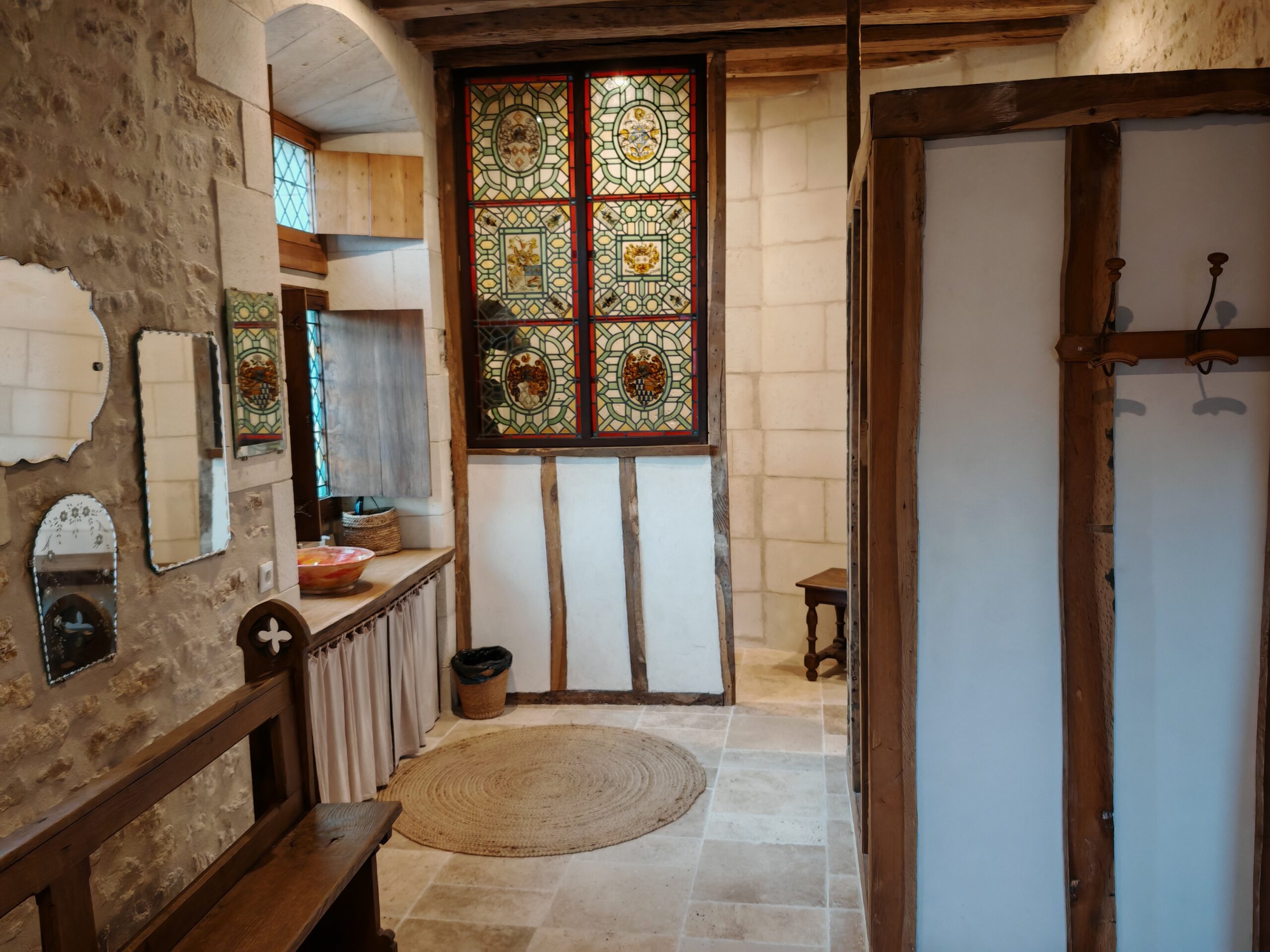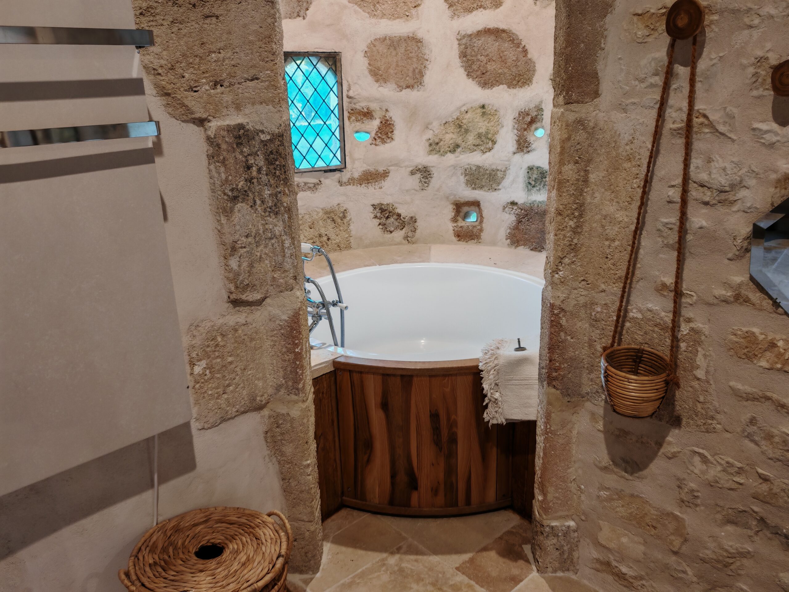 Intitulées oiseaux, cerf, ours et licorne, les 4 chambres offrent à leurs clients une literie de qualité mais surtout une décoration au top. Pour ma part, j’ai logé dans la chambre de l’ours dont la partie dortoir est déjà largement plus grande que mon studio parisien. La salle de bain est d’une taille tout aussi généreuse avec en son sein une grande baignoire circulaire, une douche et un sanitaire. On retrouve même un vitrail dans cette pièce.