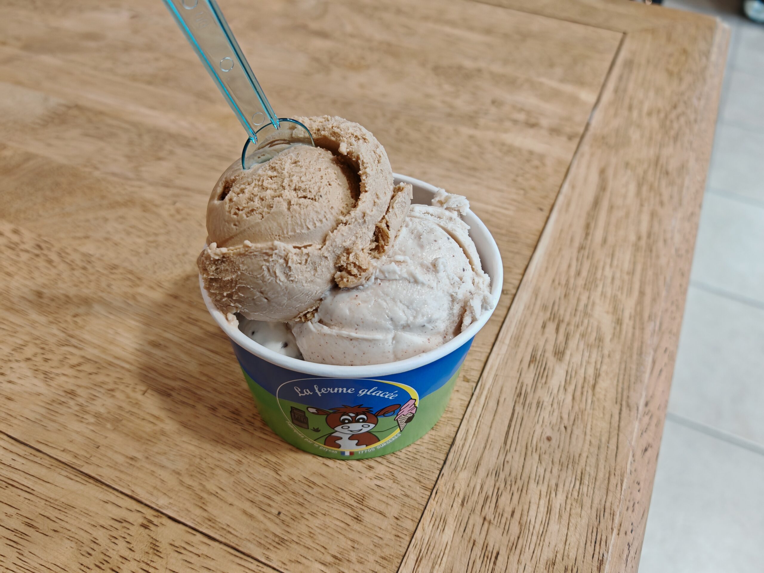 Dernière douceur sucrée avant de grimper dans le train avec La Ferme Glacée qui transforme chaque jour le lait des vaches locales de Sylvain Lalot.