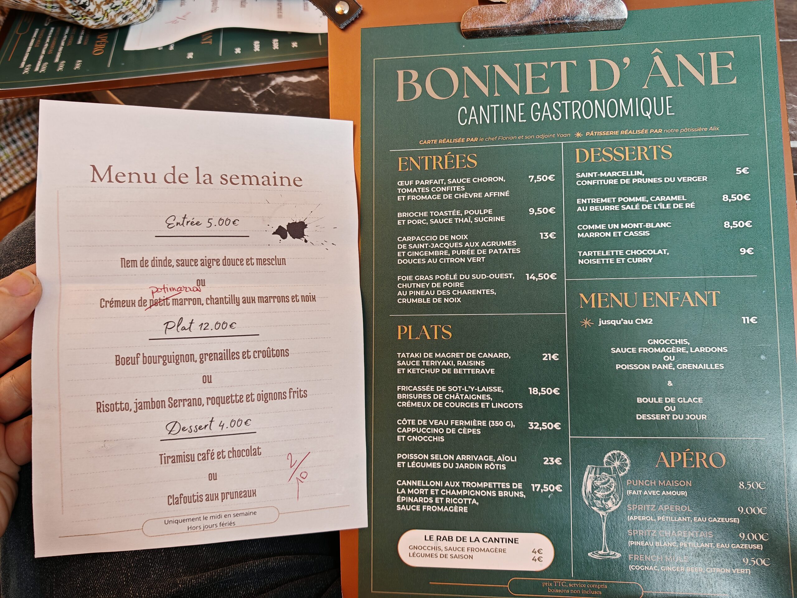 Au coeur de la ville de Surgères, en face de l’immense muraille du château local, se trouve la cantine gastronomique du Bonnet d’Âne.